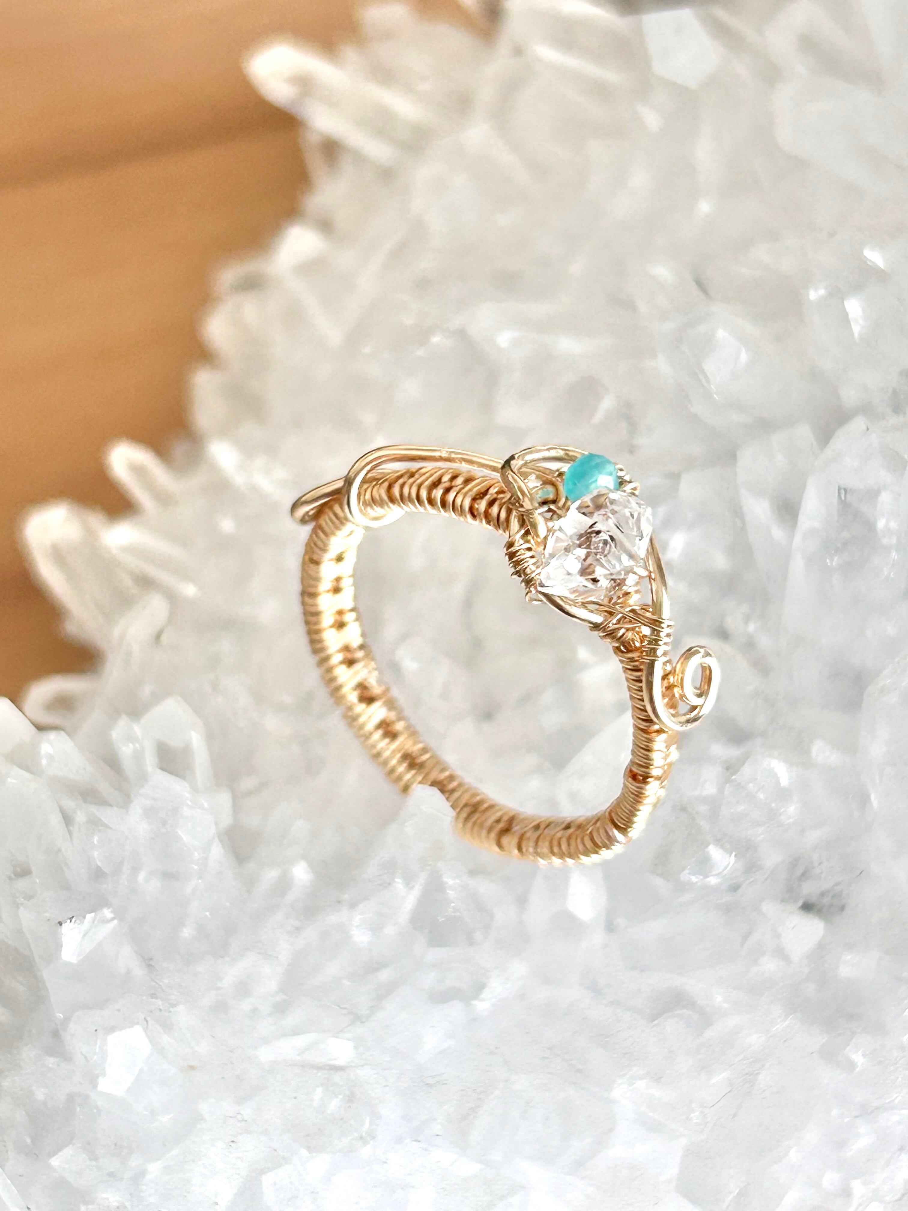 ハーキマーダイヤモンドとアパタイトを用いたリングとなります