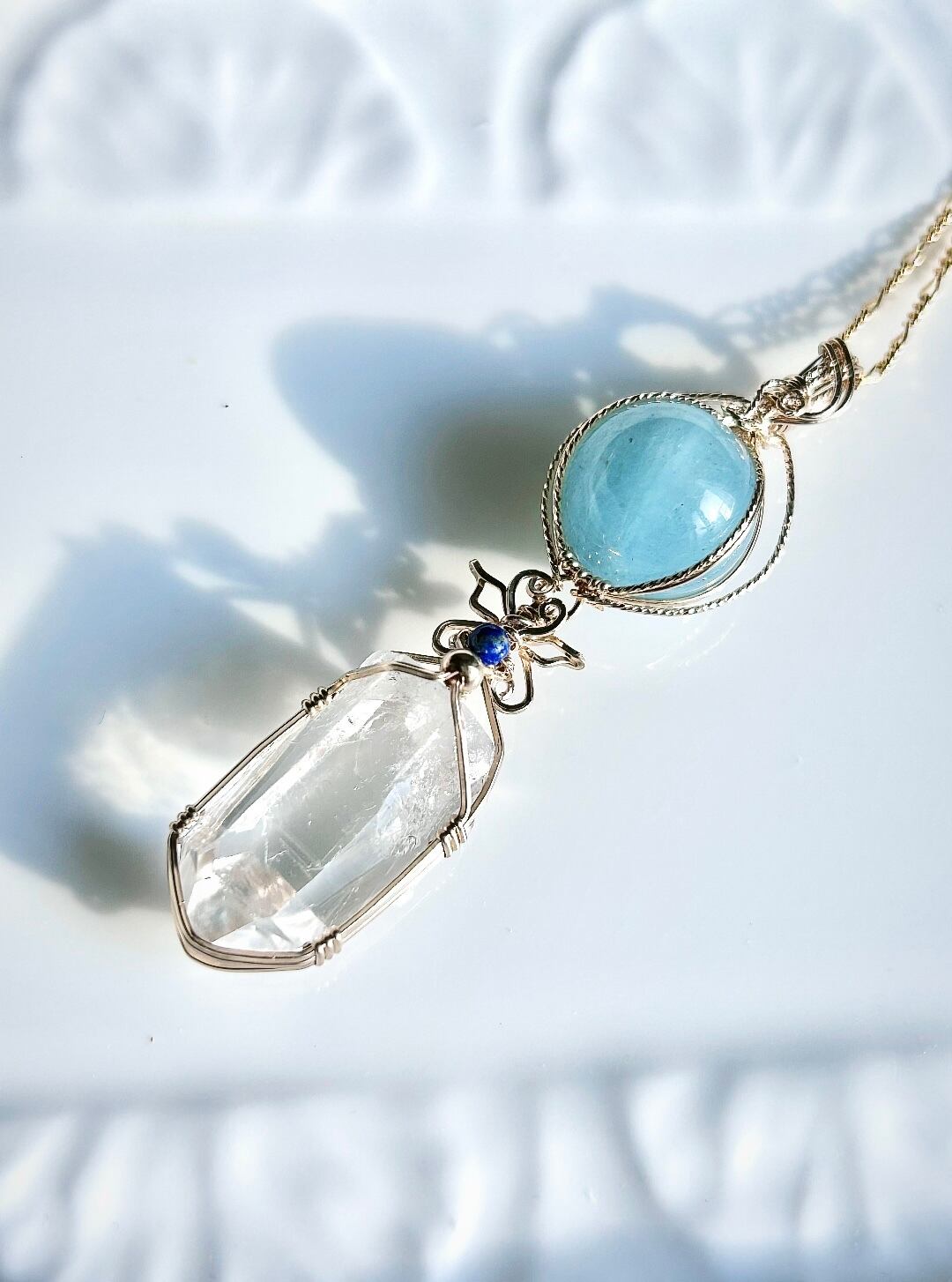 アクアマリン・スターブラリークォーツペンダントトップ 14kgf