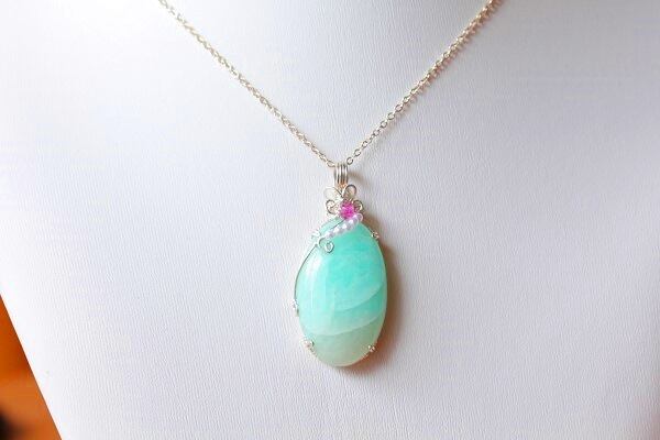 さわやかなブルーのグラデーションアマゾナイトをsilverワイヤーで紡ぎました