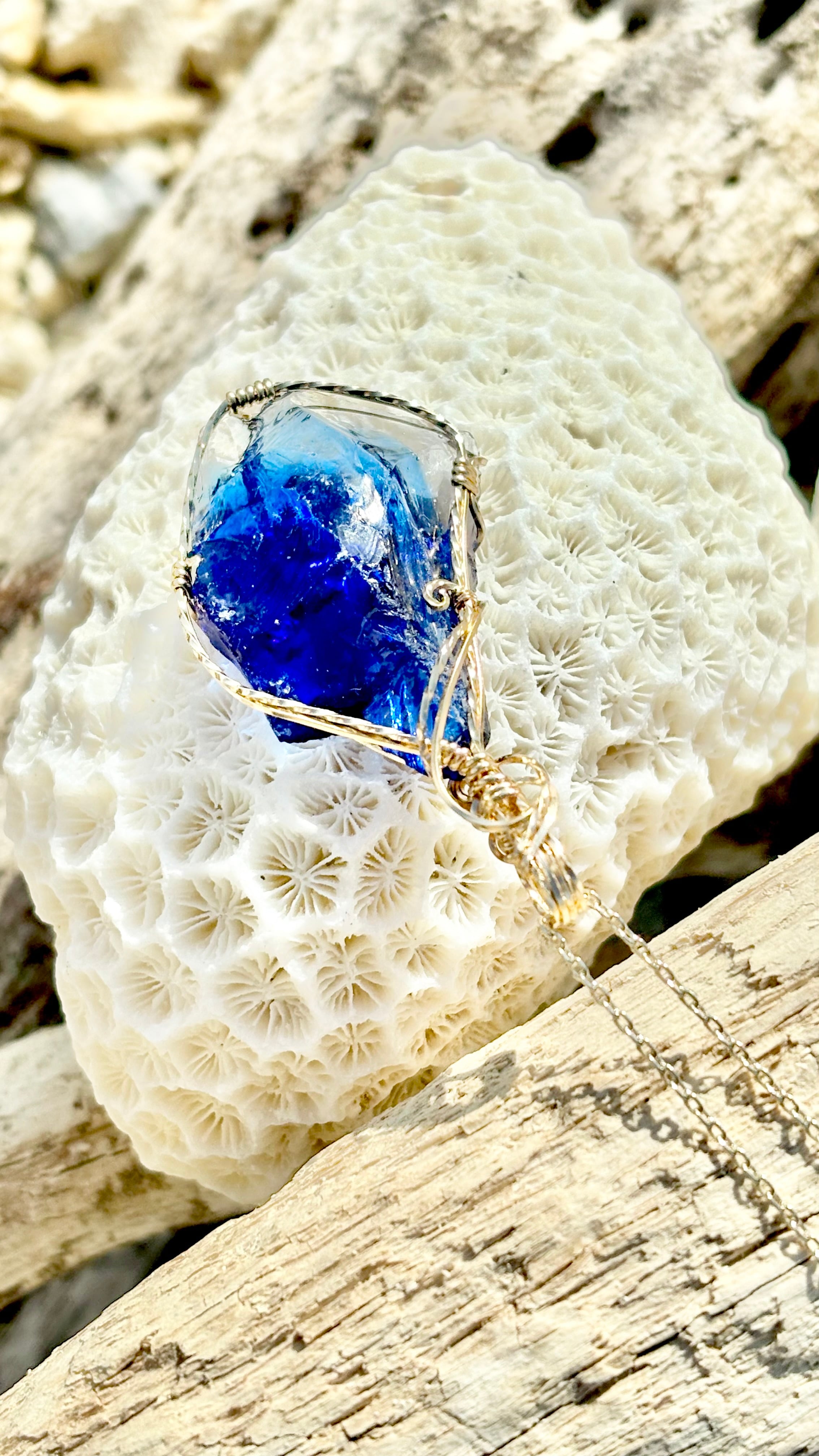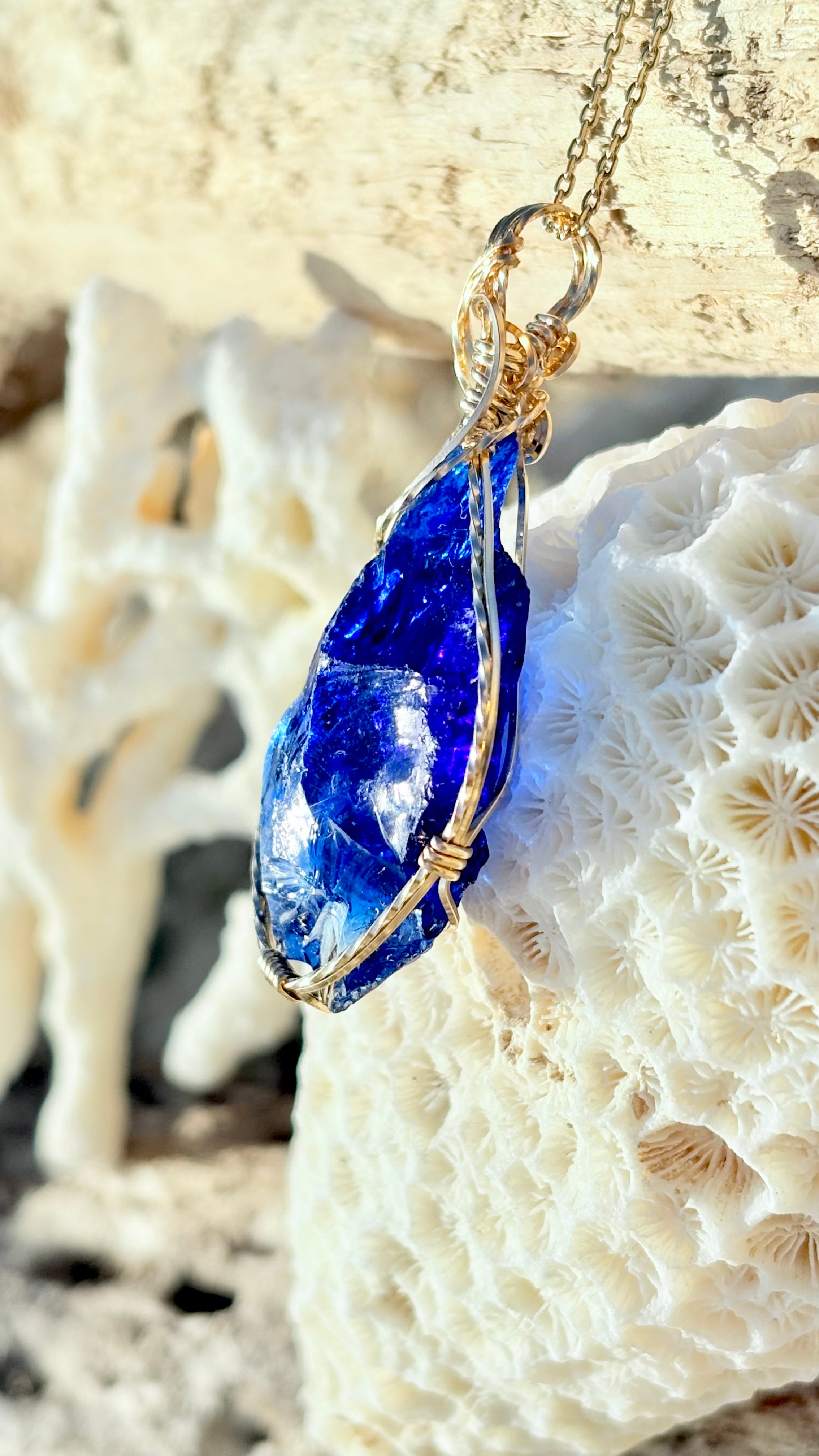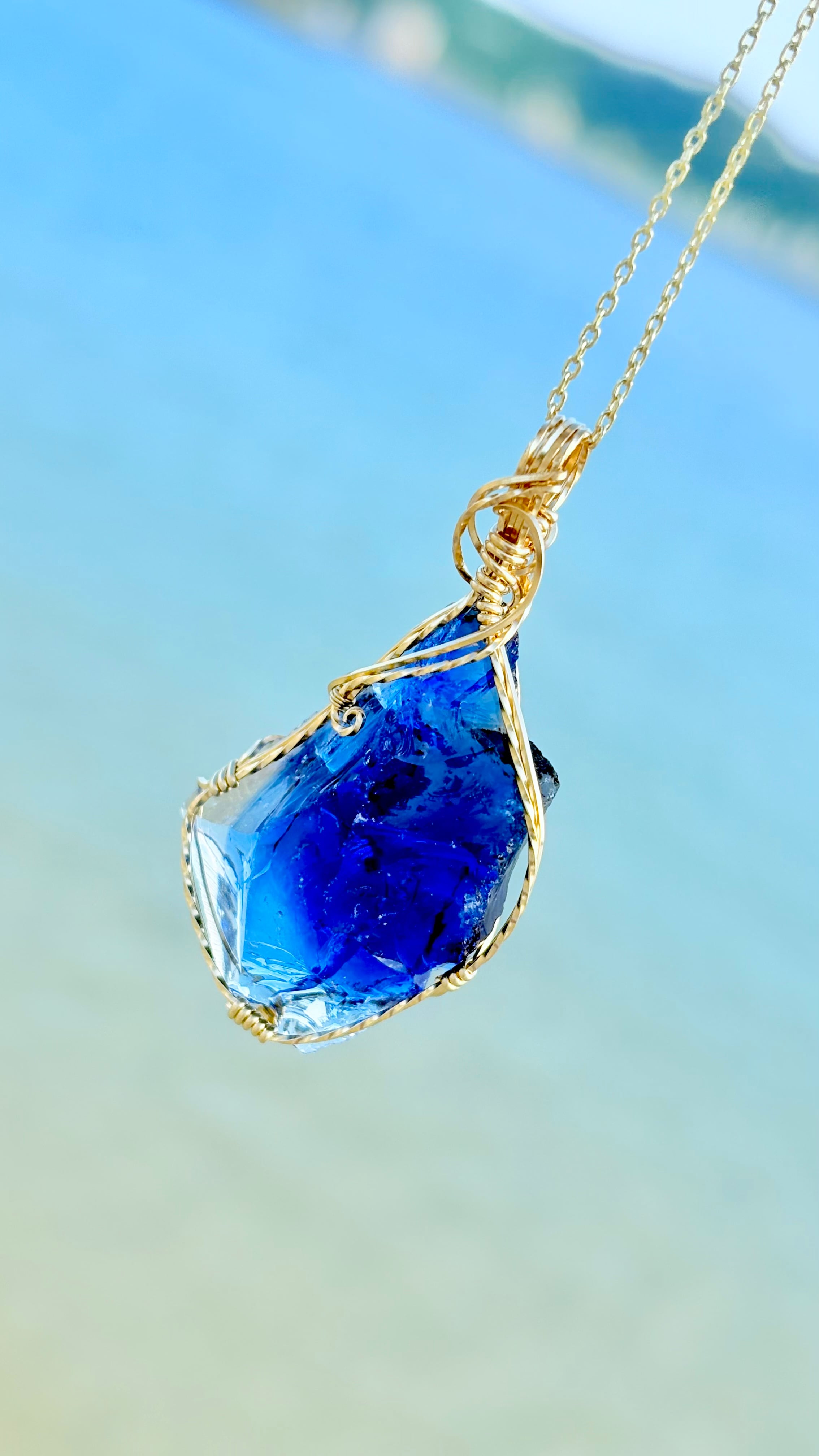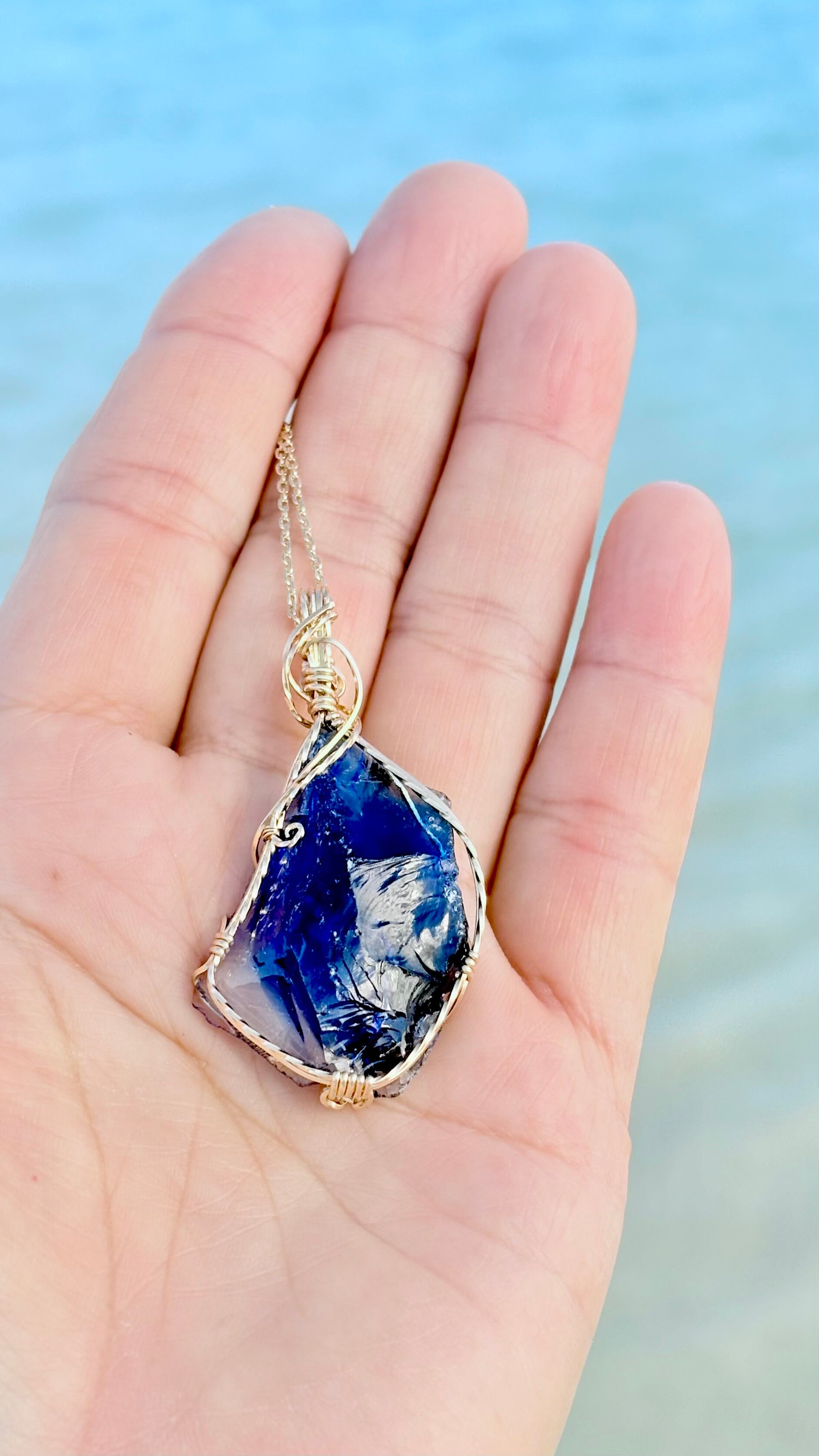 アンダラクリスタル:バイカラー♡コズミックアイス&エレスチャルサファイアペンダントトップ 14kgf