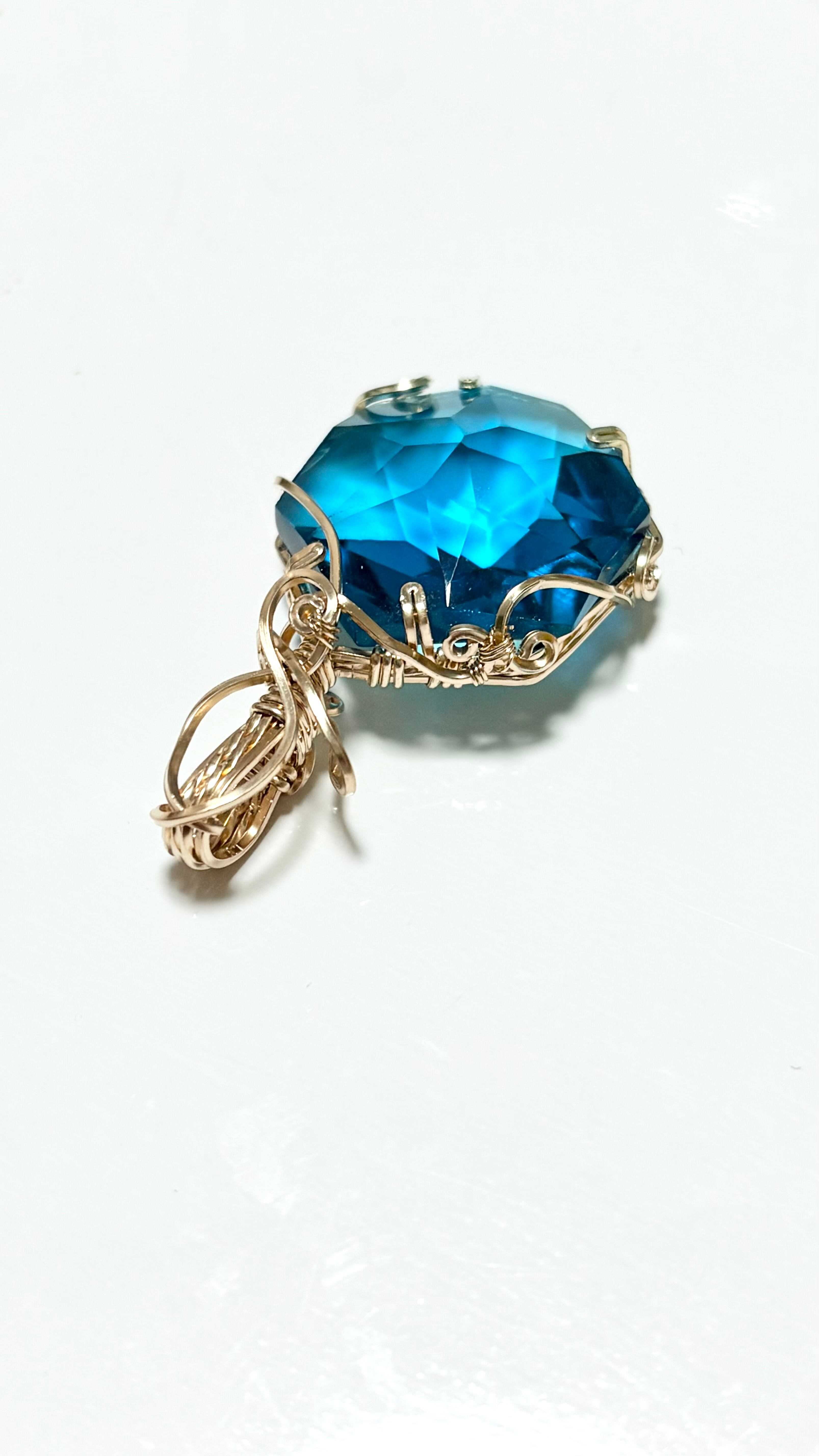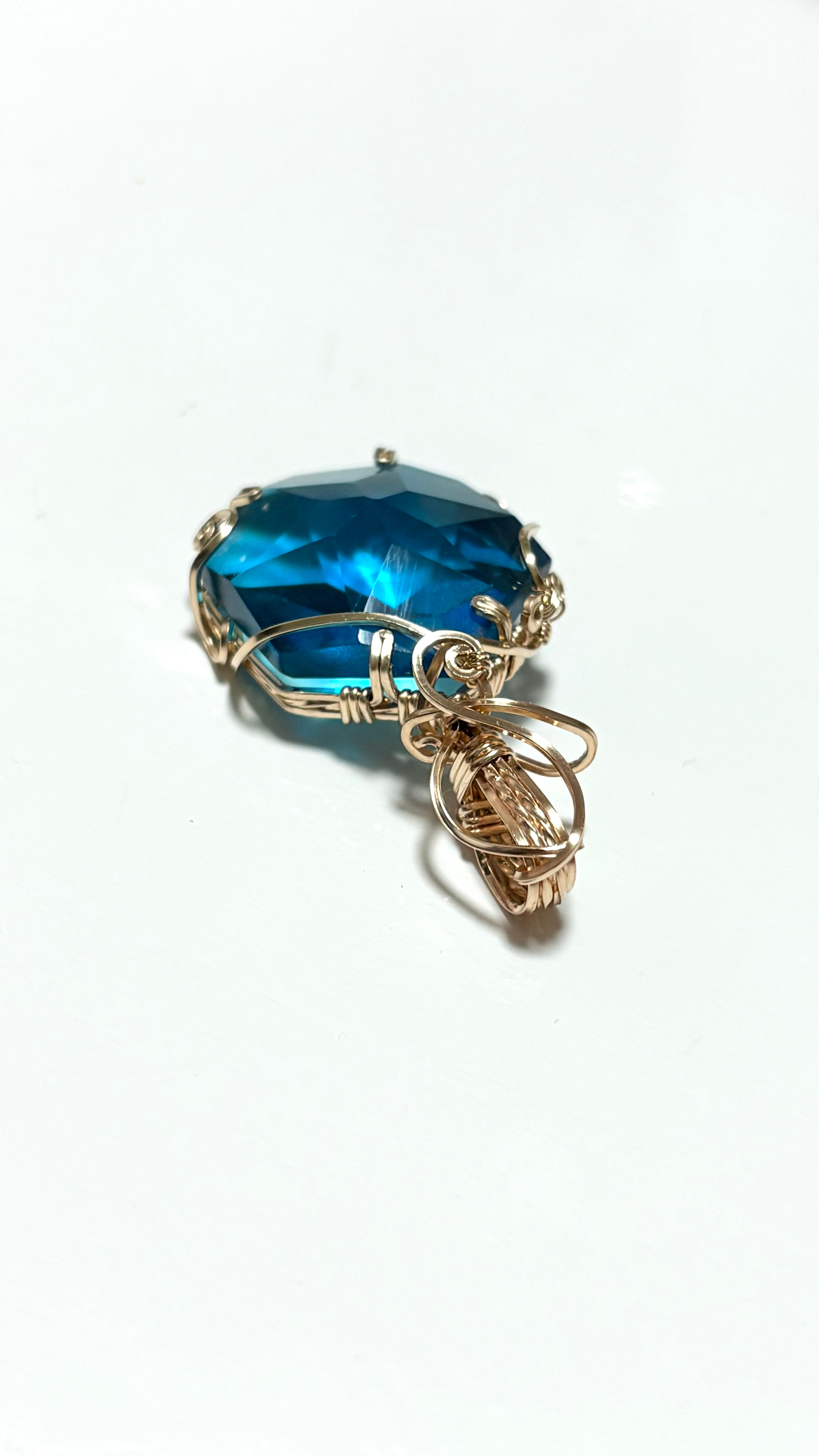 このワイヤージュエリーの曲線は、神話の時代から続く時の流れを表現し、中央のクリスタルは「記憶の泉」の最深部を映し出します