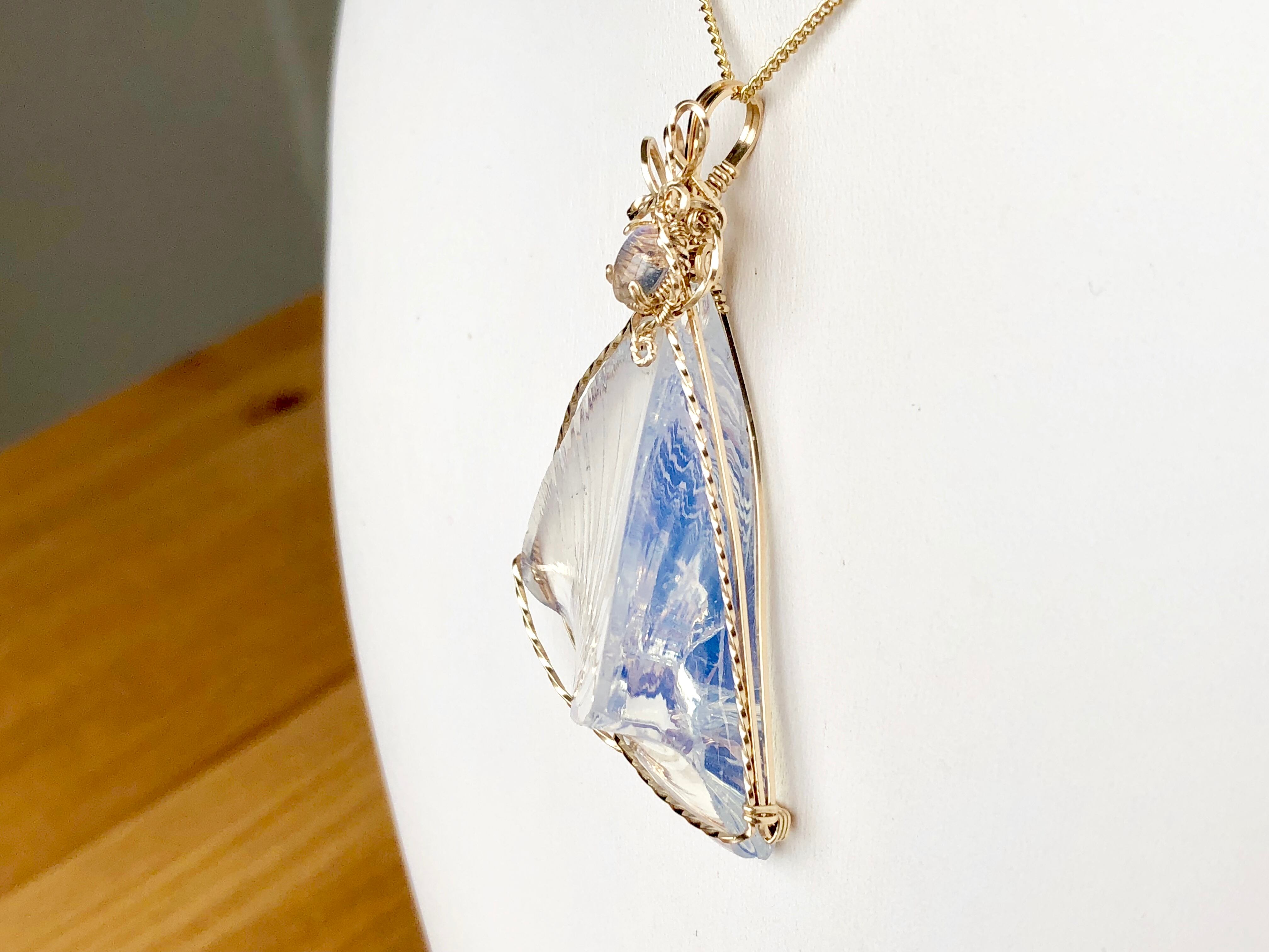 こちらは神秘なBlueの光を放つレインボームーンストーンを、サポートストーンに用いて満月の日に誕生しました