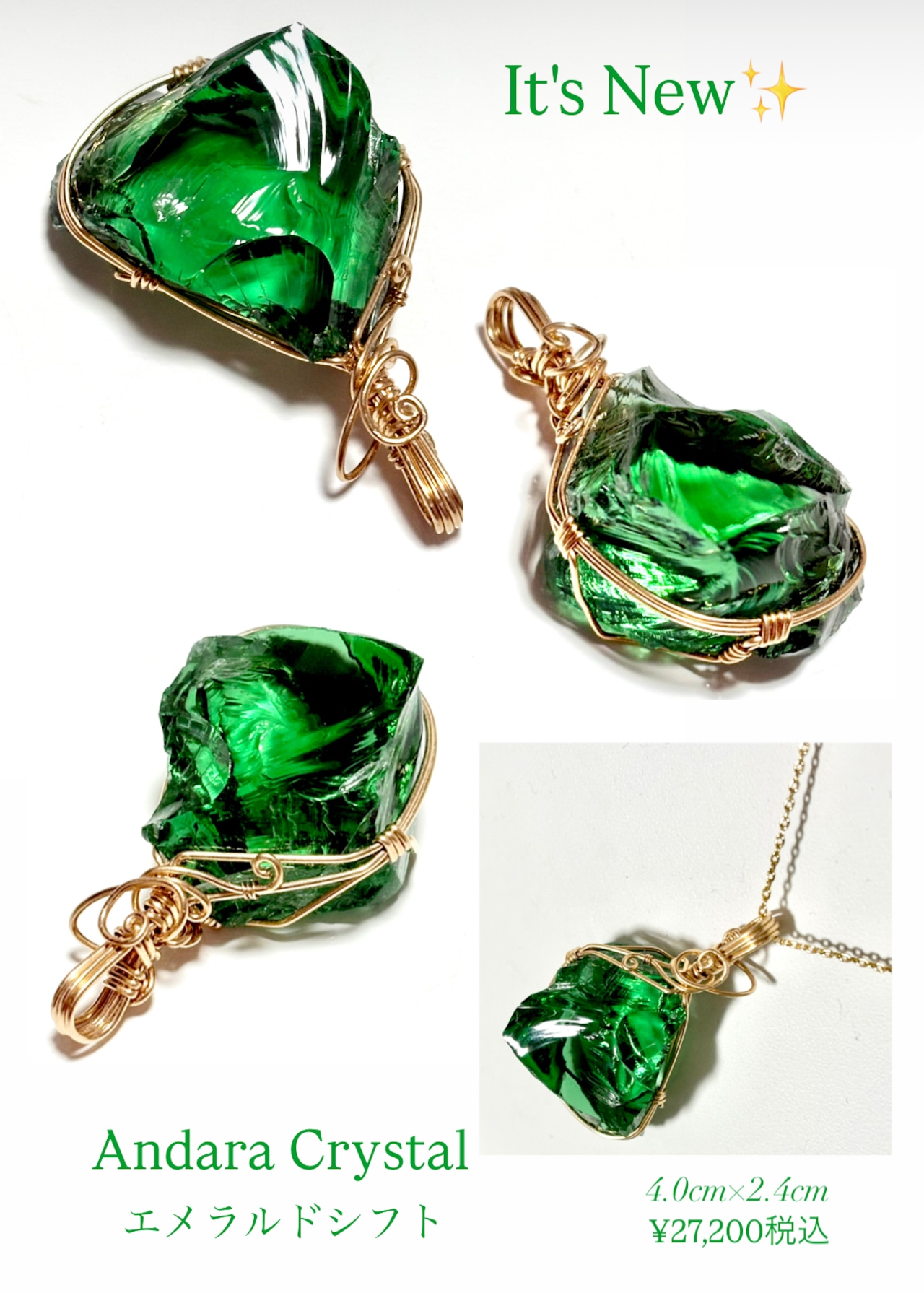 3/31迄周年祭♡アンダラクリスタル:エメラルドシフト14kgfペンダントトップ