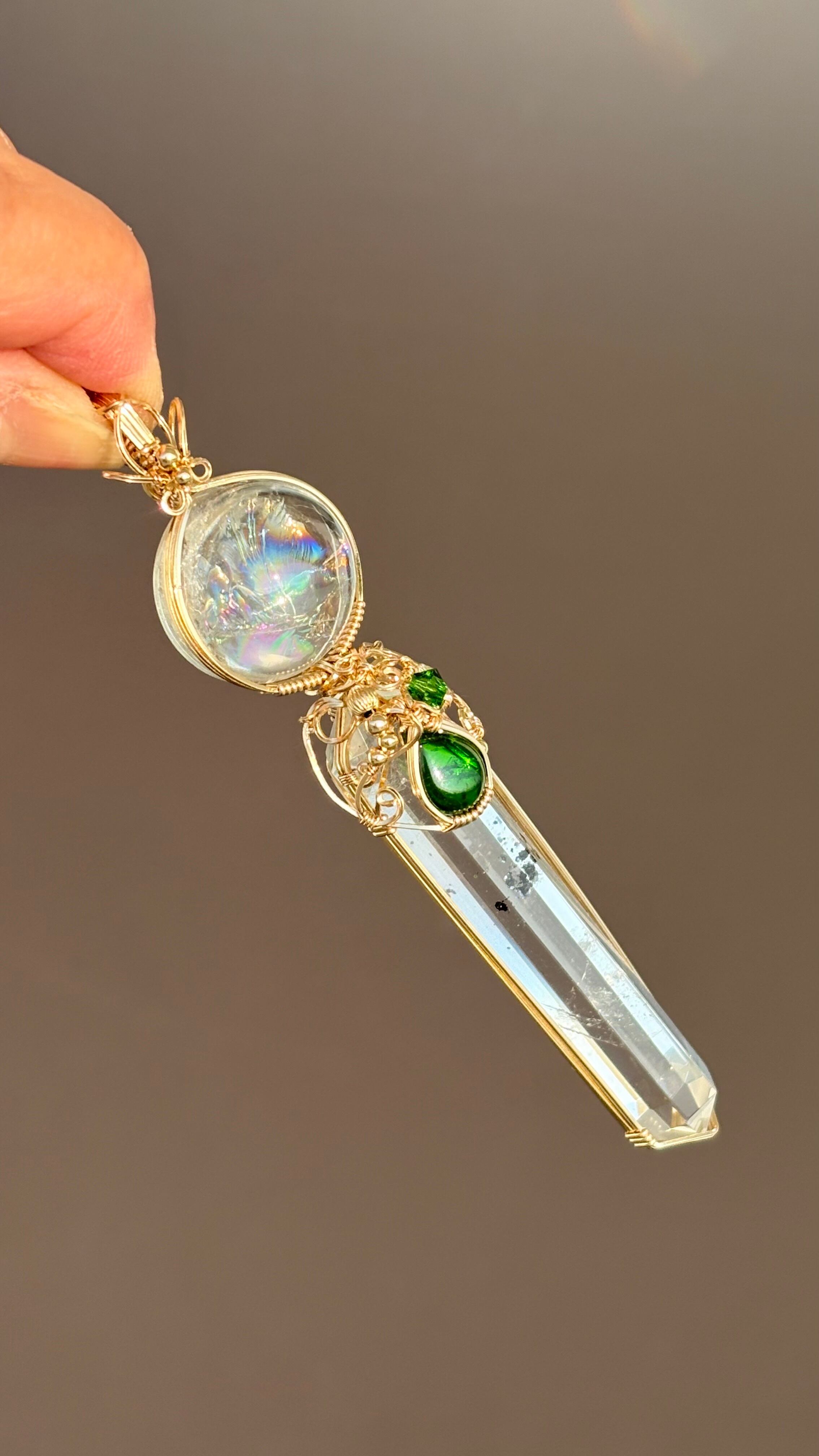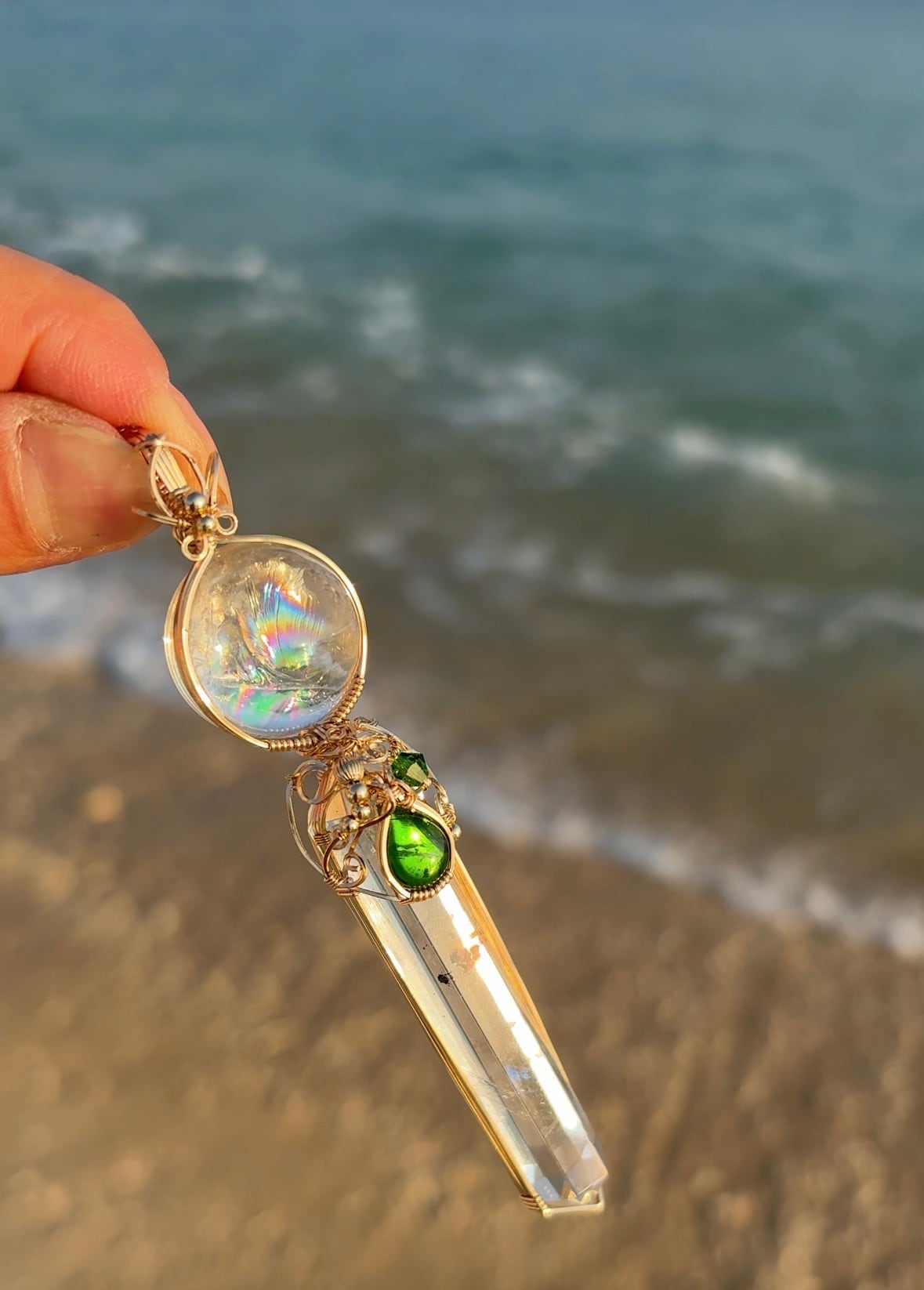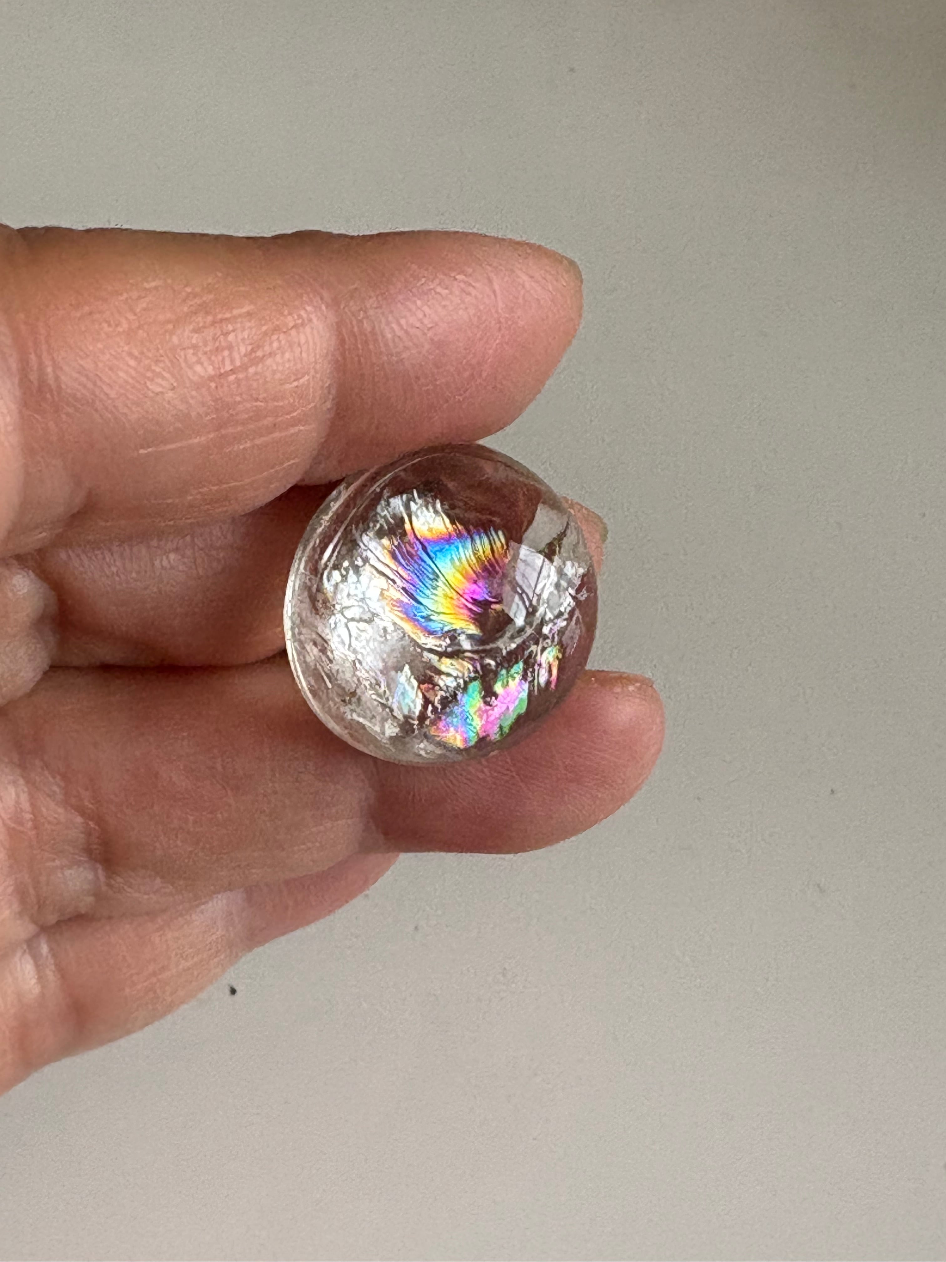 光を反射し、七色に輝くこの作品が、持ち主様の未来を明るく照らす「お守り」として寄り添います