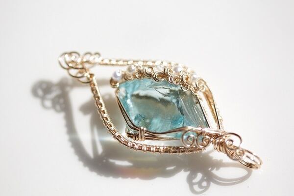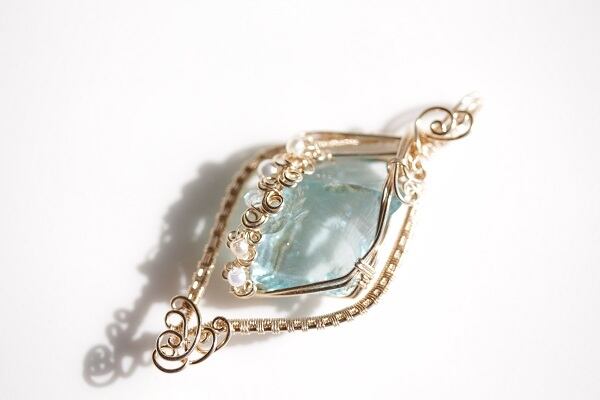 プチペンダントトップにしようと思ったのですが、波の雫が光にあたりキラキラする光をお届けするというイメージがありましたので、今回は大きめのトップに致しました