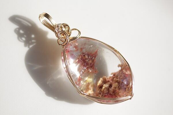 グリーンのガーデンクオーツが多い中で、赤いものは数が少なく今回のクオーツは、大きな虹を持っています。
