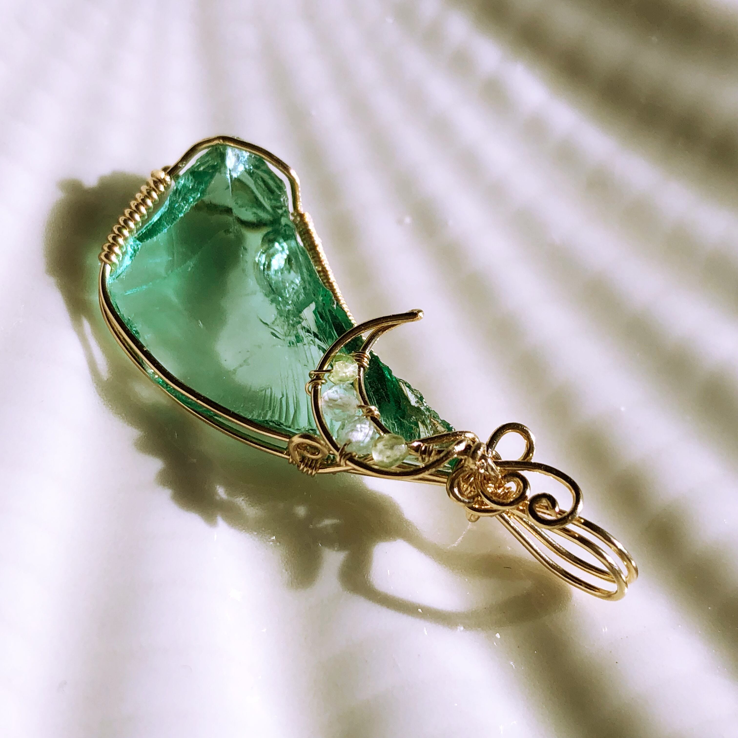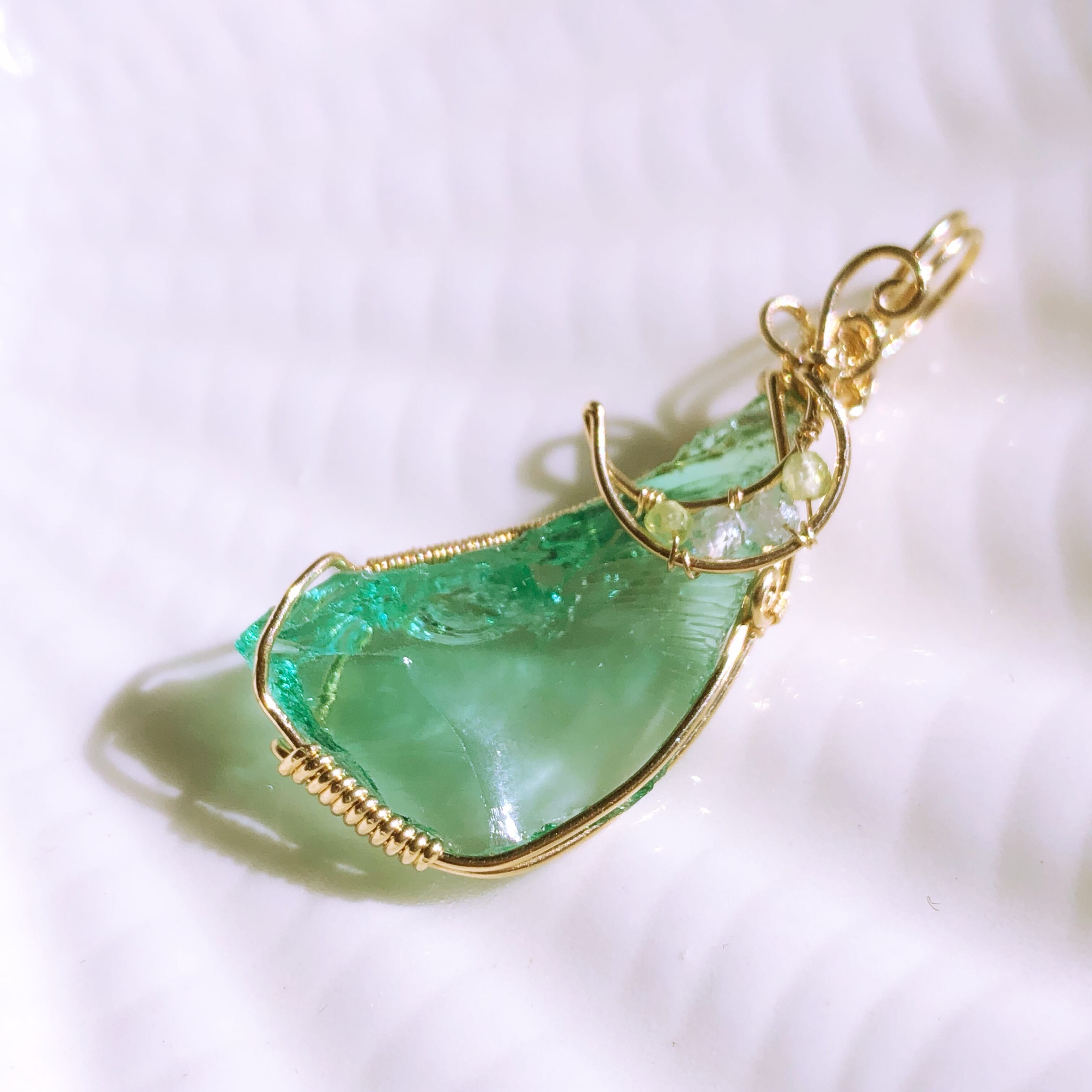 小さなサイズの、ミントのアンダラクリスタルが入荷いたしましたので、miniペンダントトップをお創り致しました♡