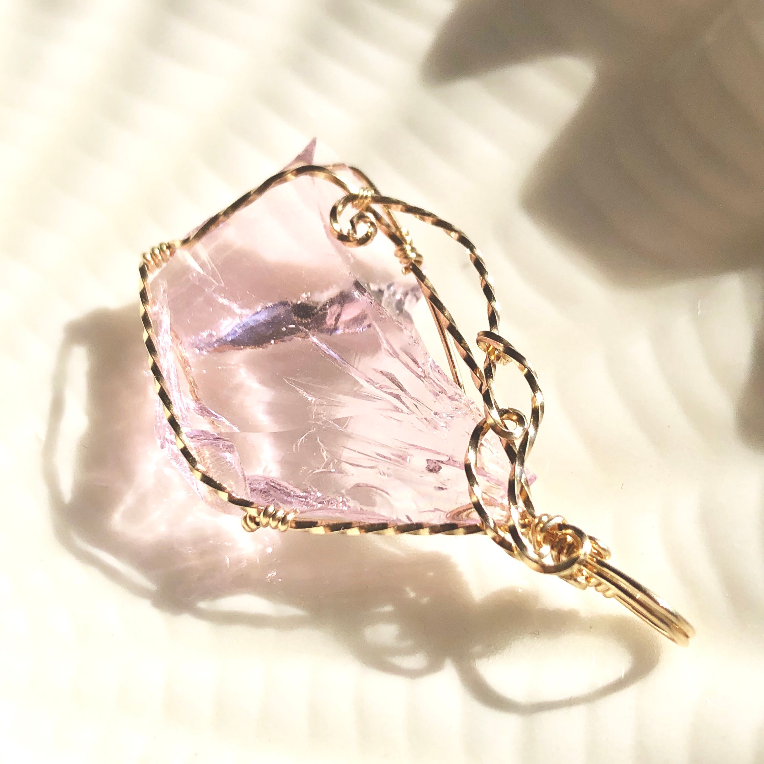 白いセーターなどの上に身につけて頂くと、その胸元のピンクアンダラクリスタルに、惹きつけられるのではないでしょうか♡