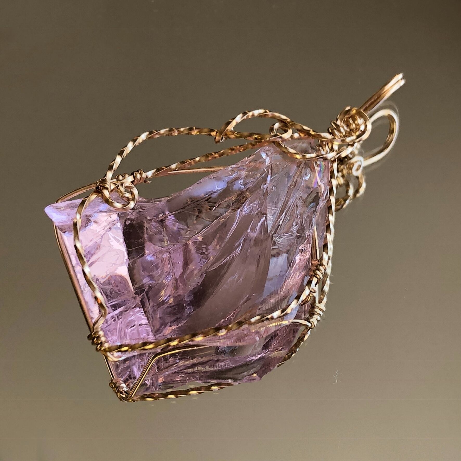 さらにこのピンクアンダラクリスタルは、表と裏・サイドにも美しく輝く虹をもっています