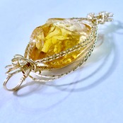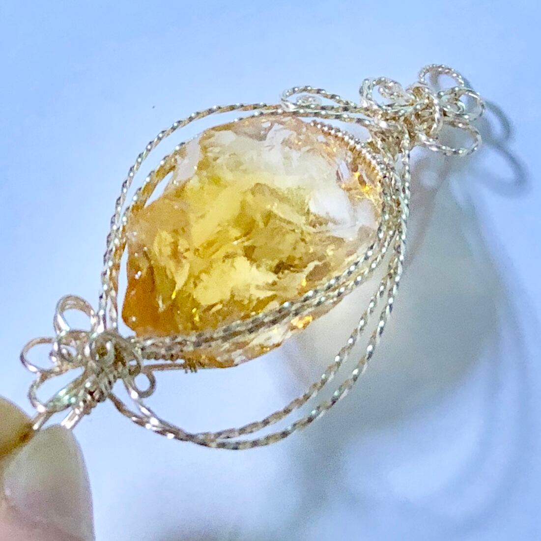 色味も濃く黄味の強いシトリンですので、ゴールドワイヤーとも相性がよく、ワイヤーもより線にしていますので、光の反射がキラキラと綺麗です