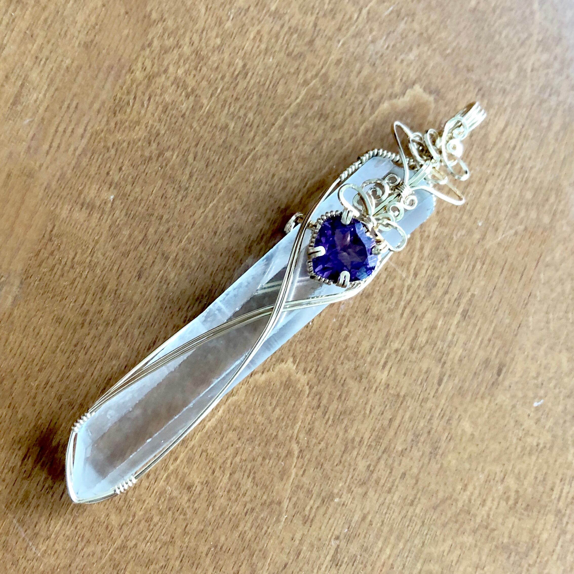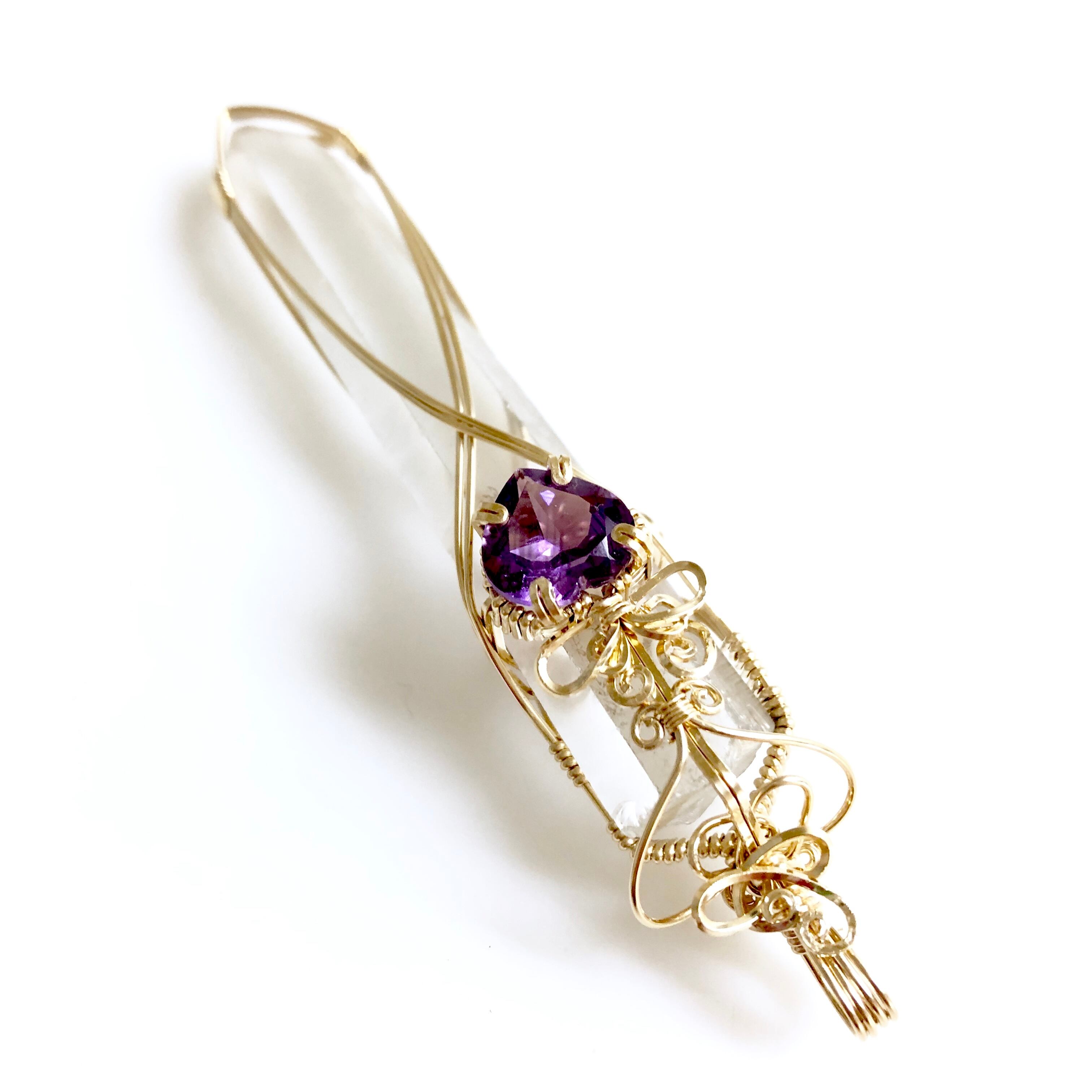 天然石:シンギングクリスタル&アメジストハートシェイプカット 14kgf 送料無料♪