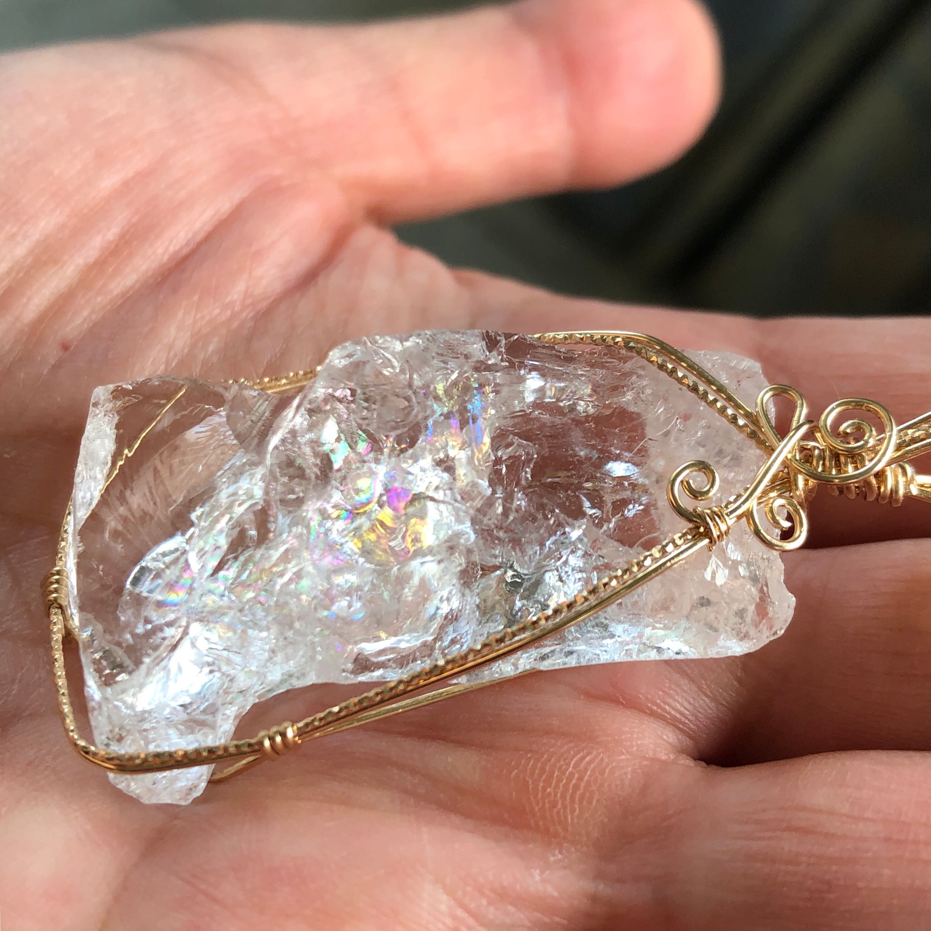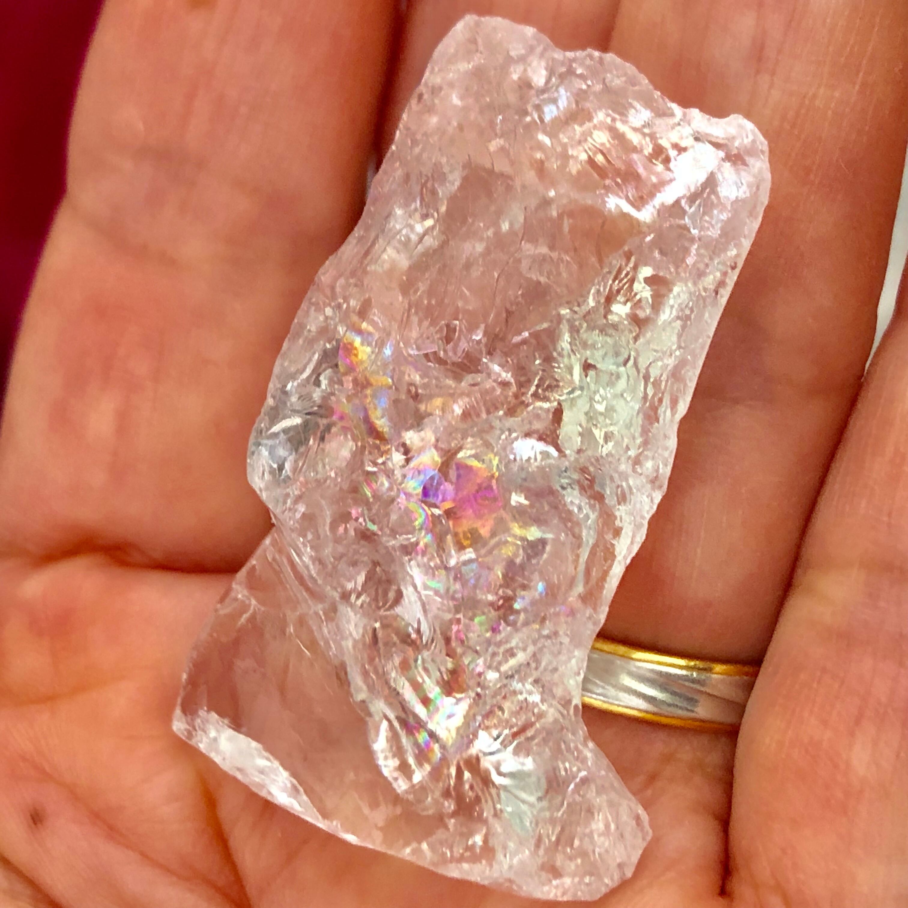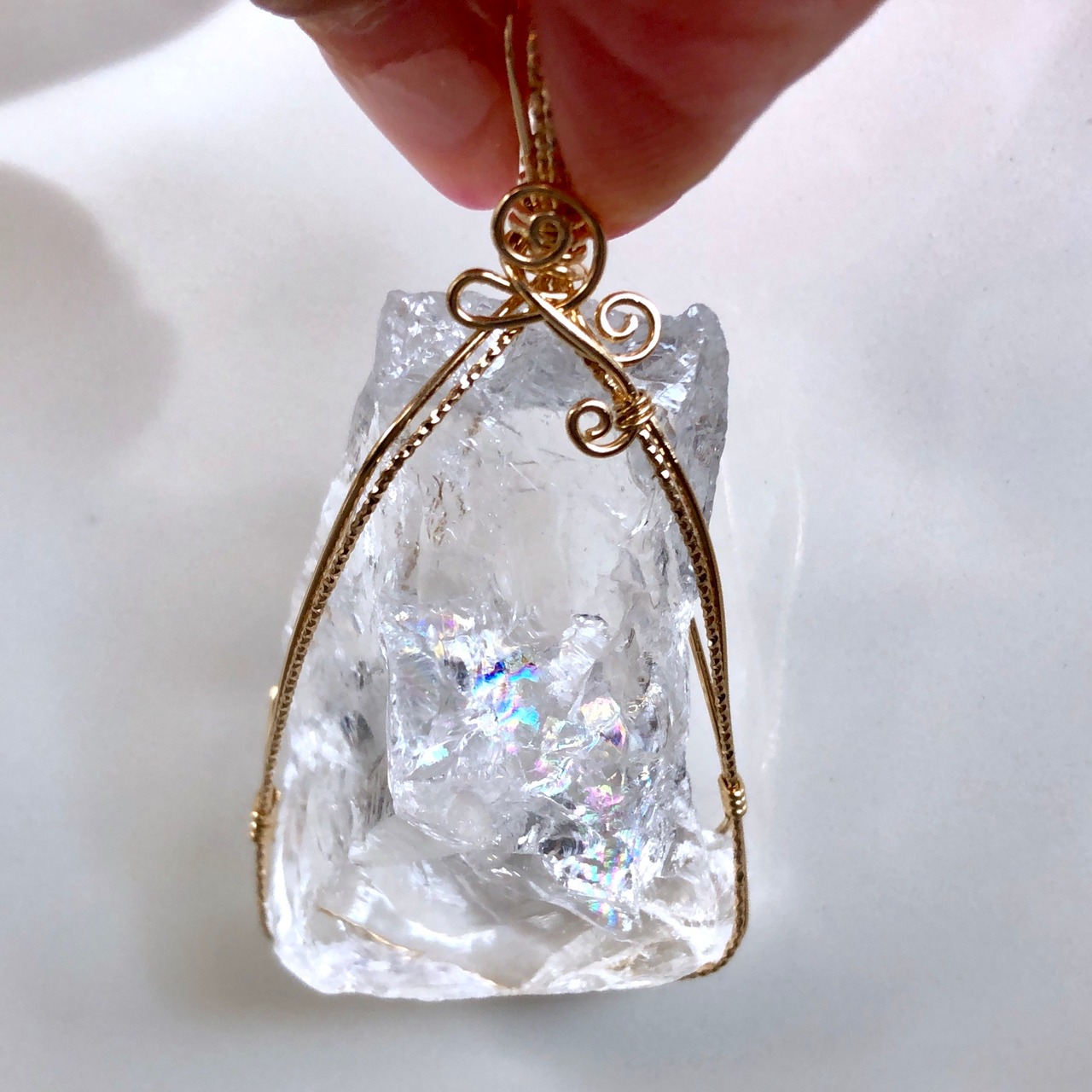 大きな塊の水晶をパカンッと割って誕生した、沢山のレインボーを持つラフロッククリスタルです
