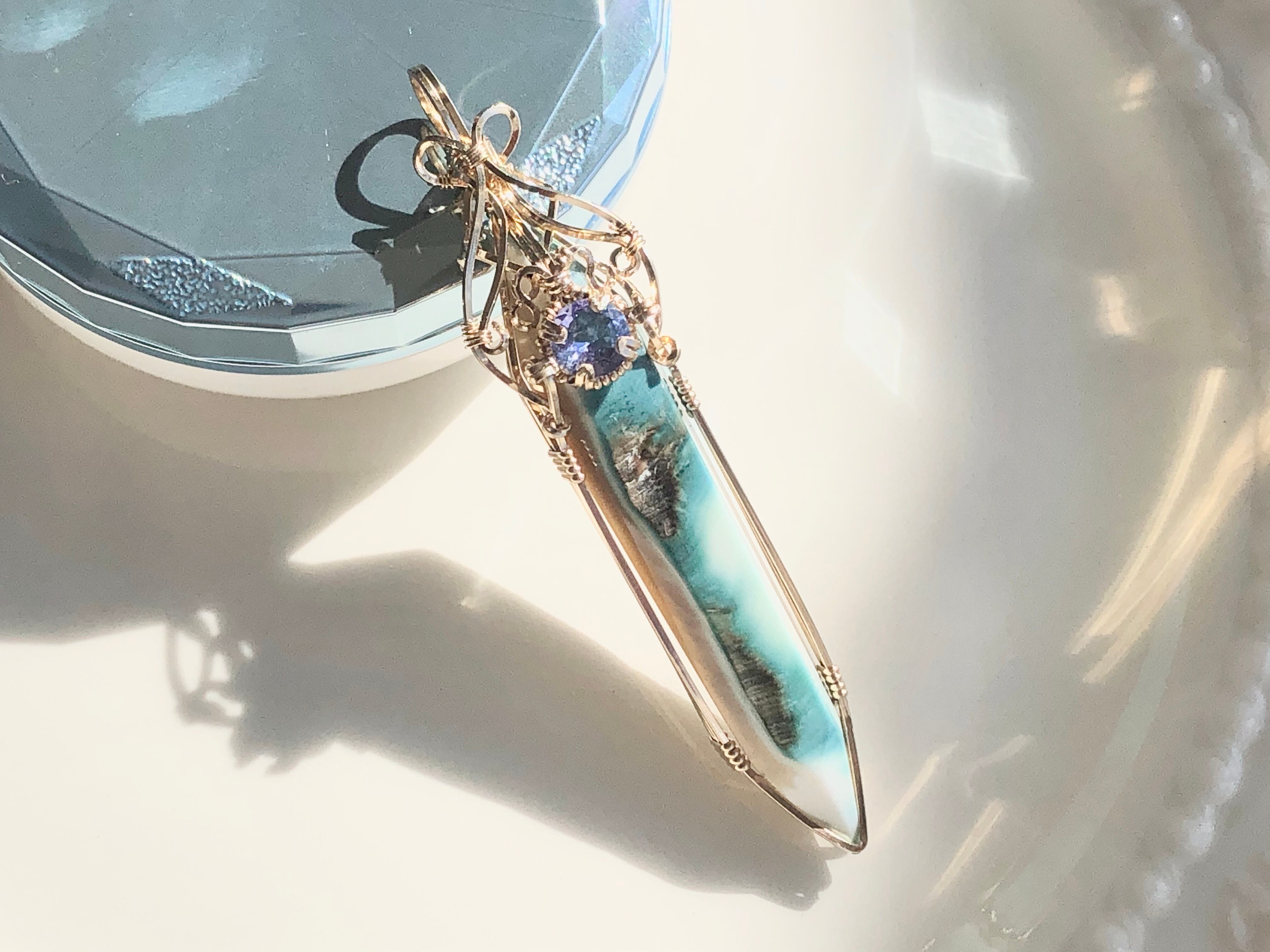 サポートストーンには、これもまた一目惚れしたカットの美しい、宝石質のタンザナイト貴石