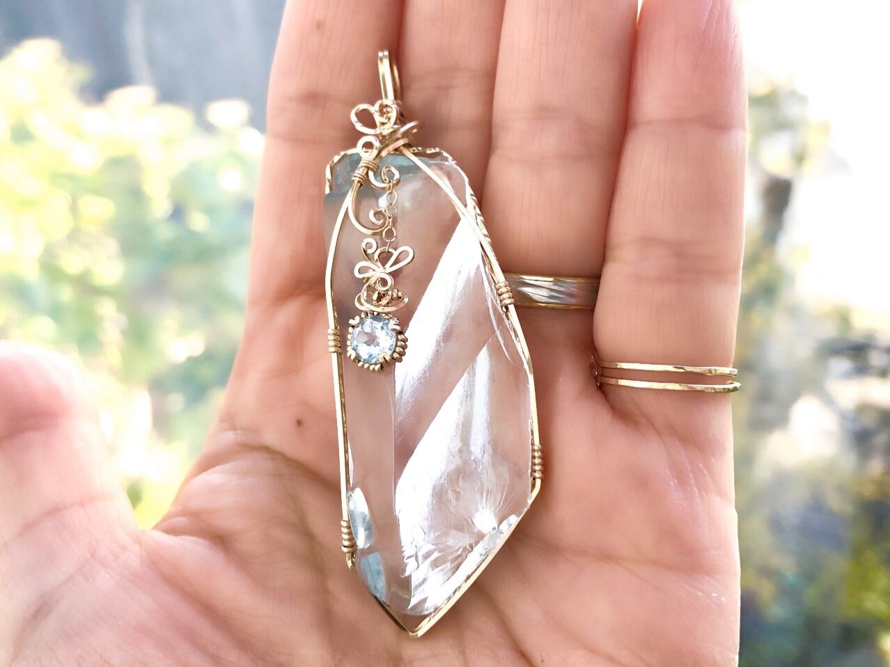 サポートストーンにはカットの美しいブルートパーズを用い、ゆらゆらとスウィングします♡