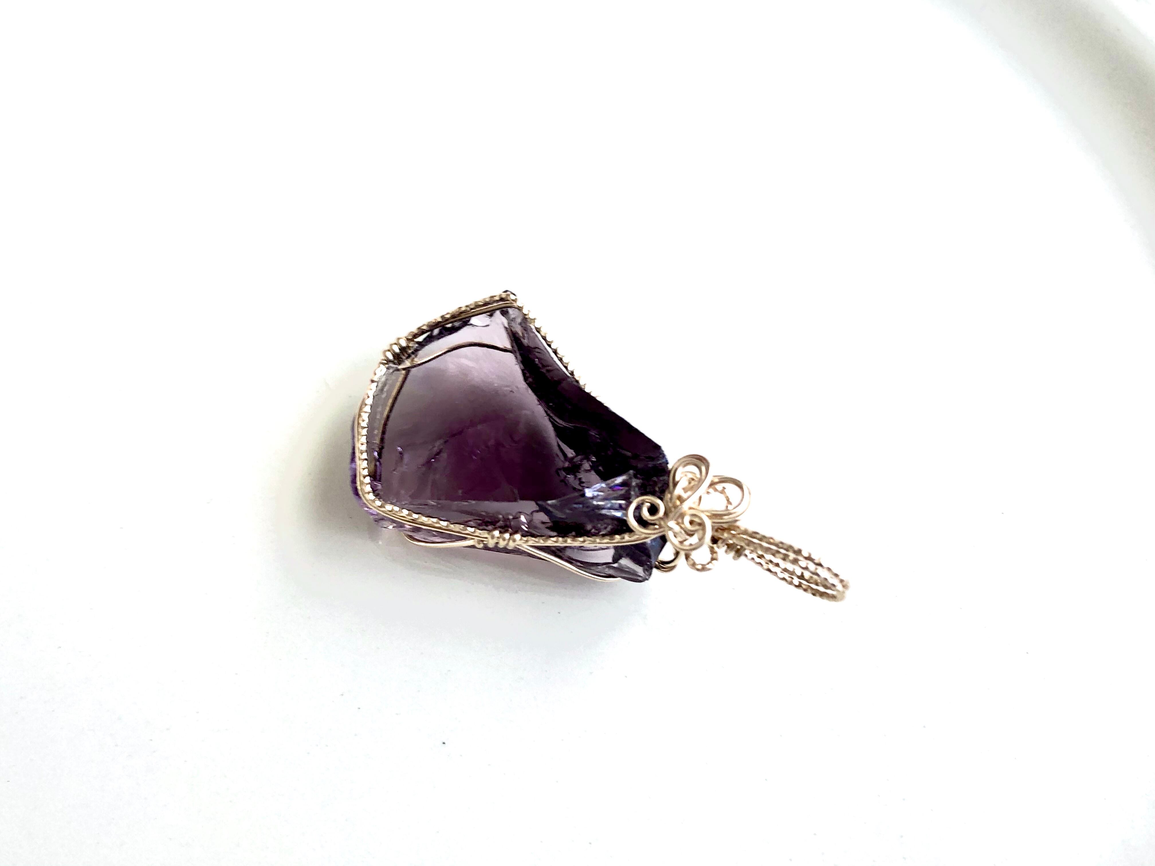 トライアングルのフォルムも、表面が平で鏡面なところもとても魅力的なバイオレットゾブリンアメジストです