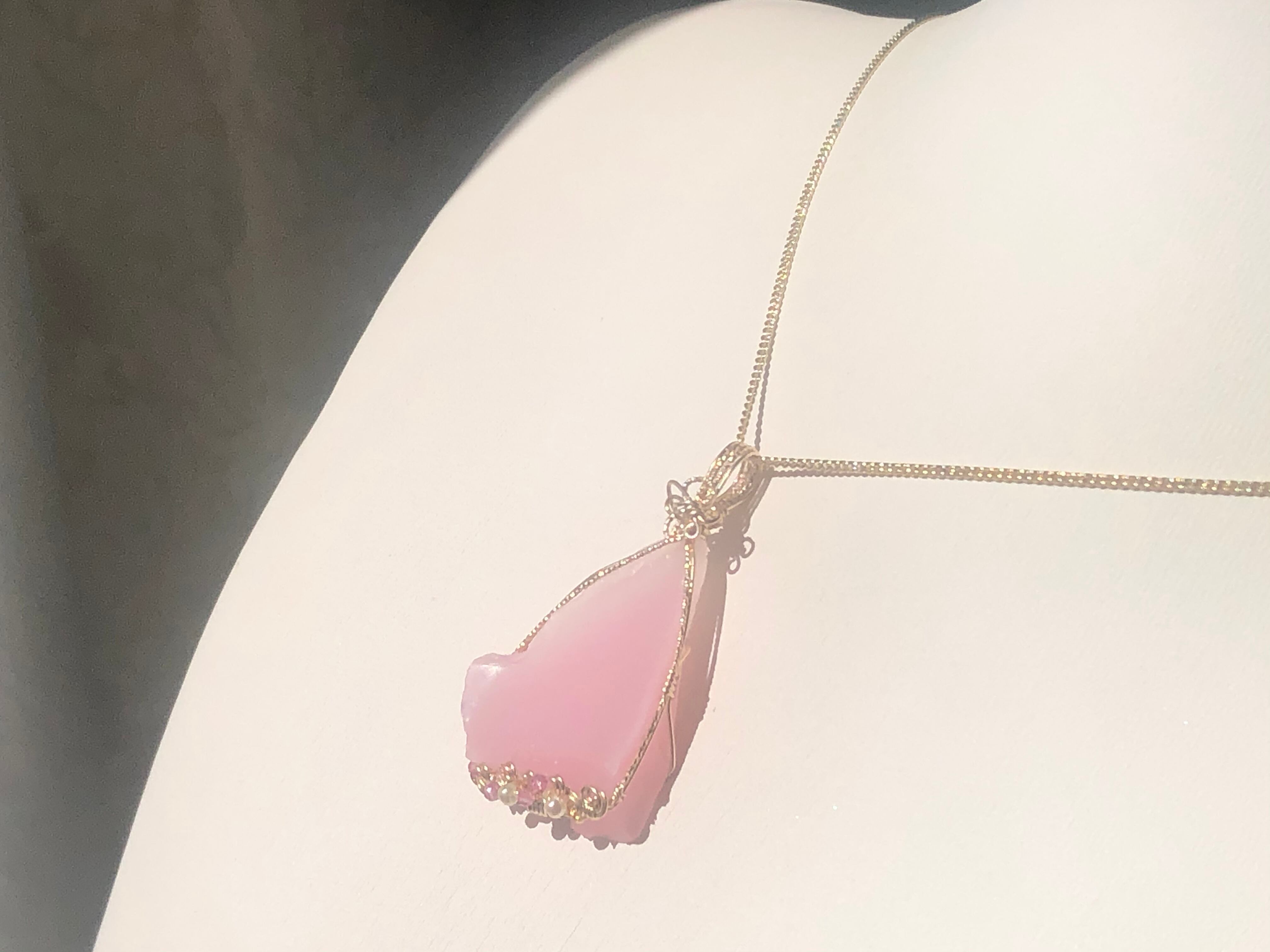 装飾はピンクトルマリンとクリスタルパール