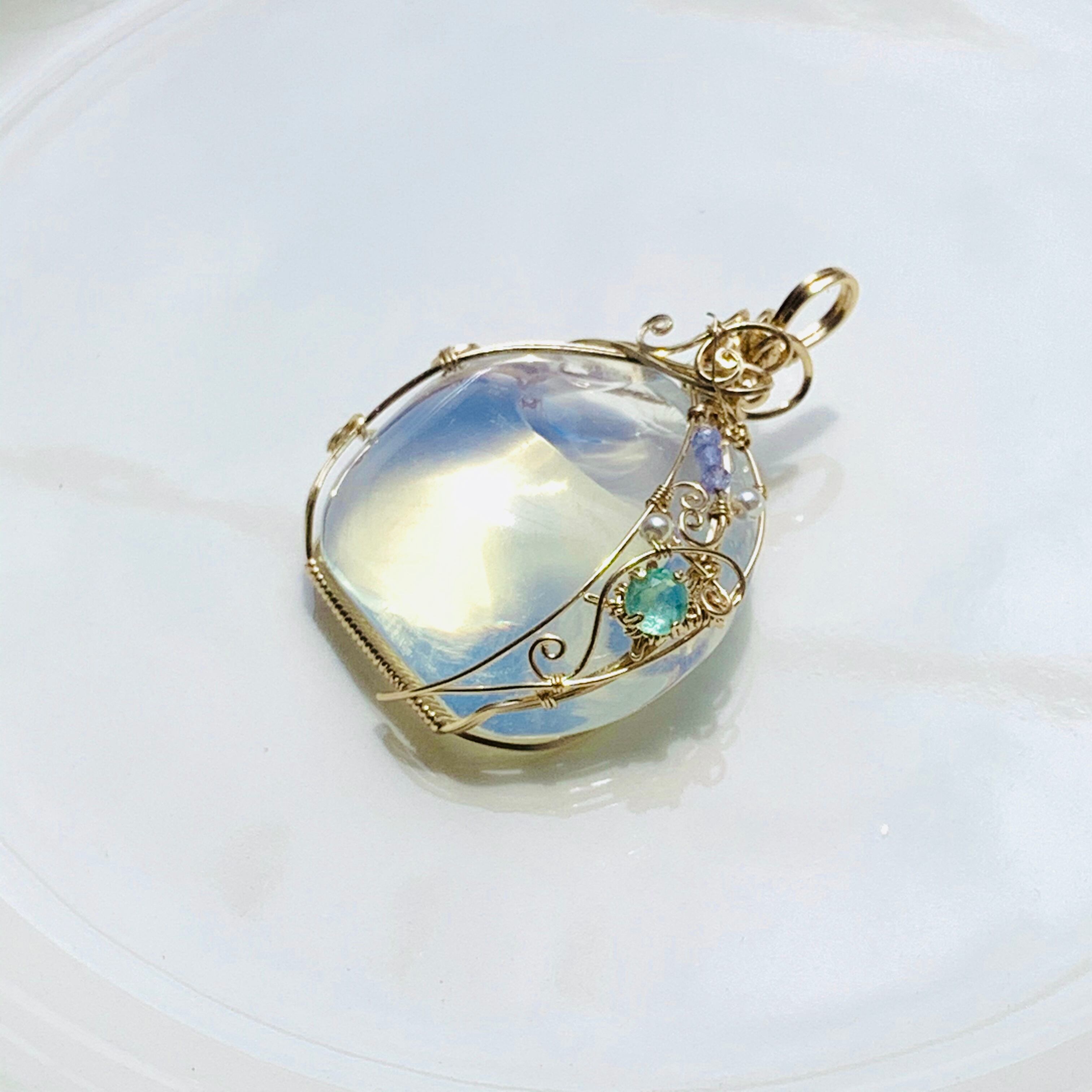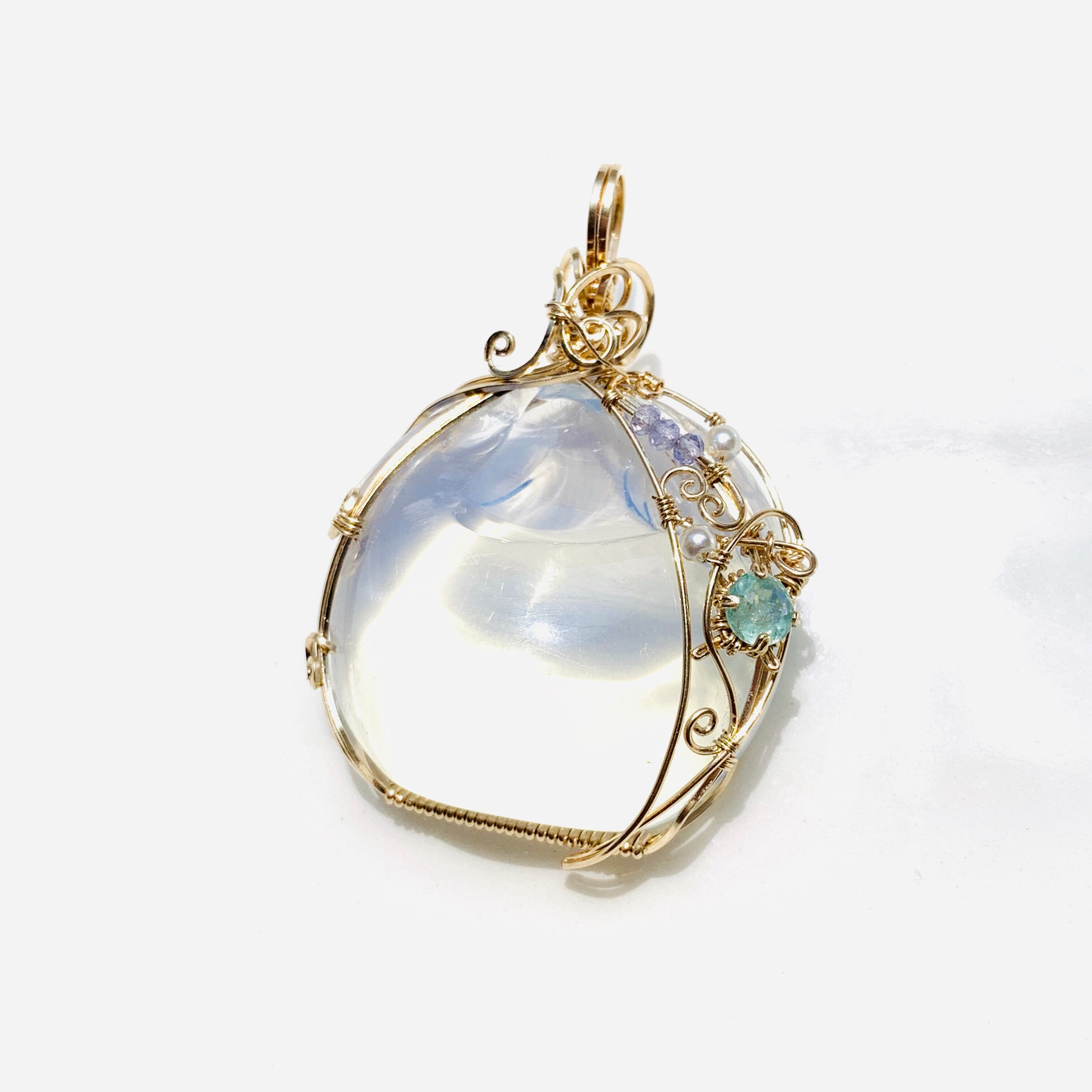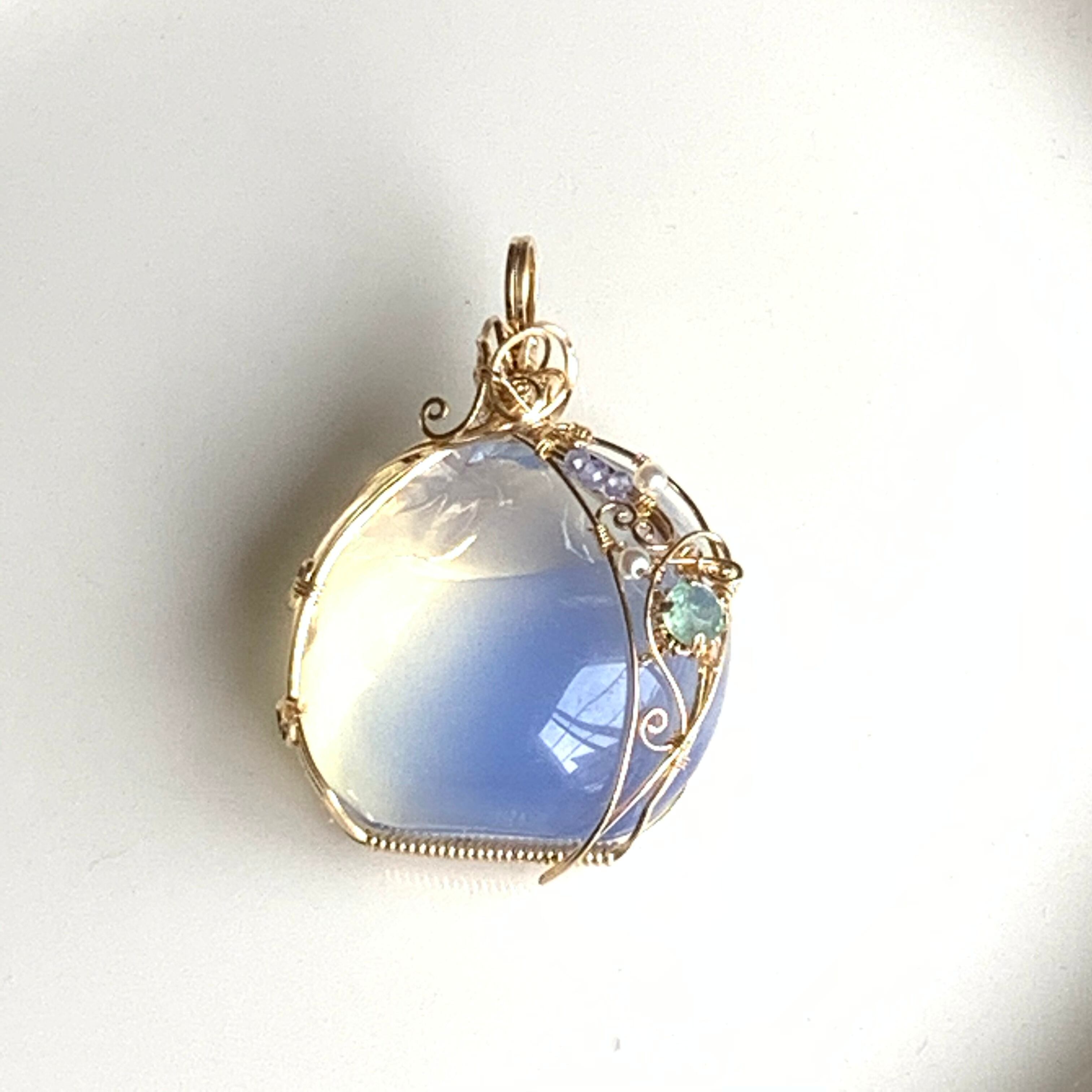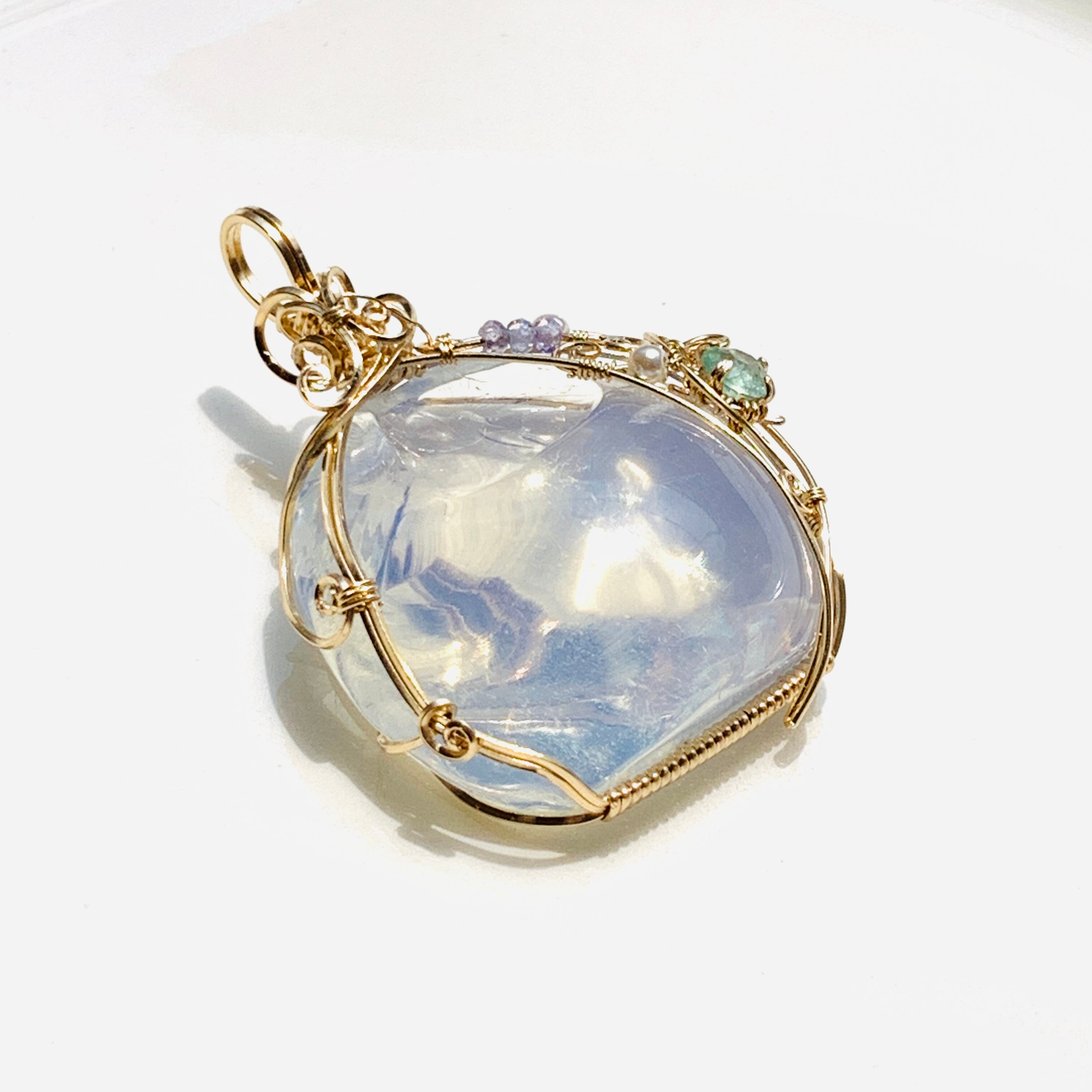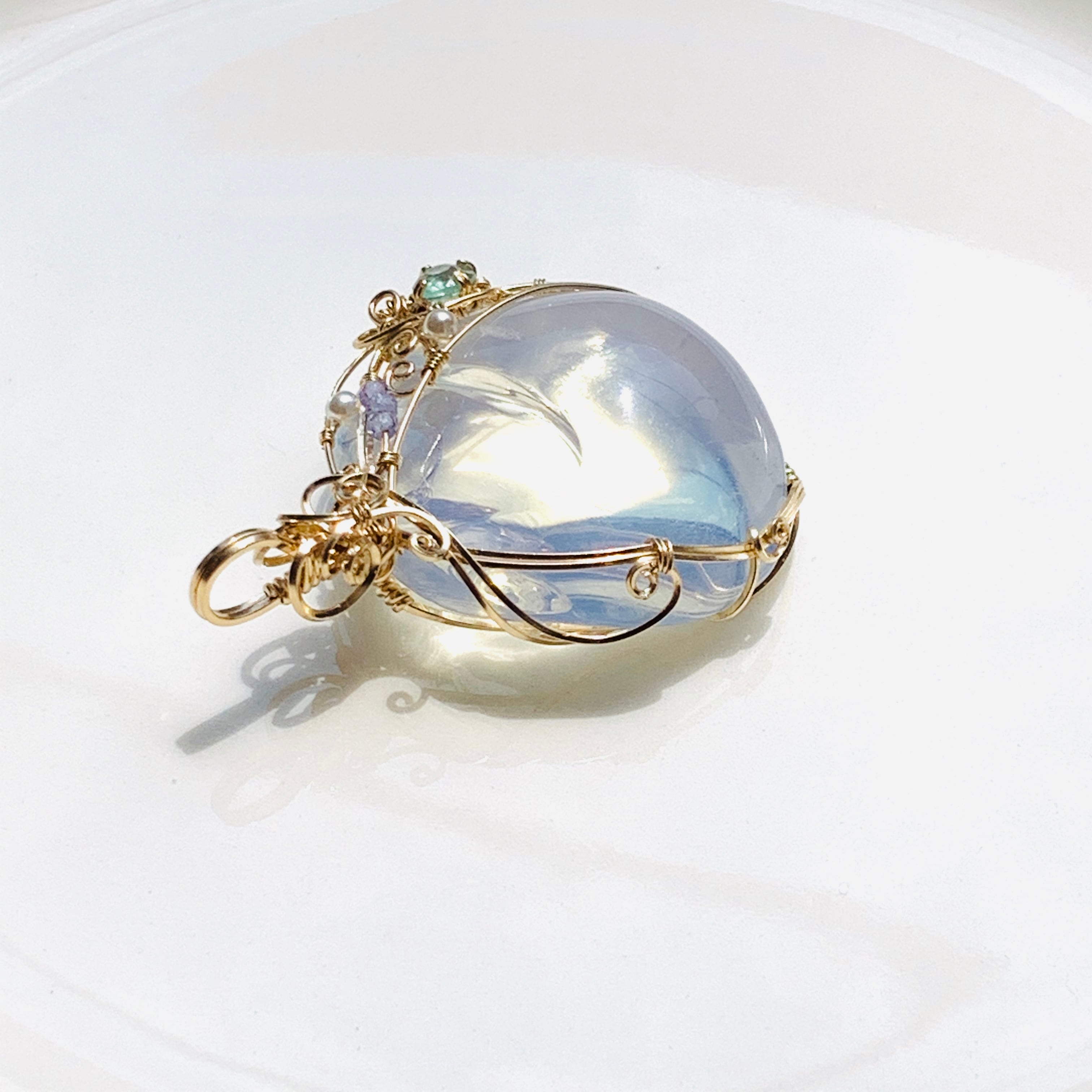 遊色効果のあるこのアンダラクリスタルは、オパールのようにブルー、イエロー、バイオレット、ミルキーとその表情を変えていきます