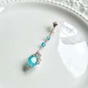 シーブルーカルセドニーと透明感のあるアパタイトのラフロックビーズを用いて、ロングピアスを♡