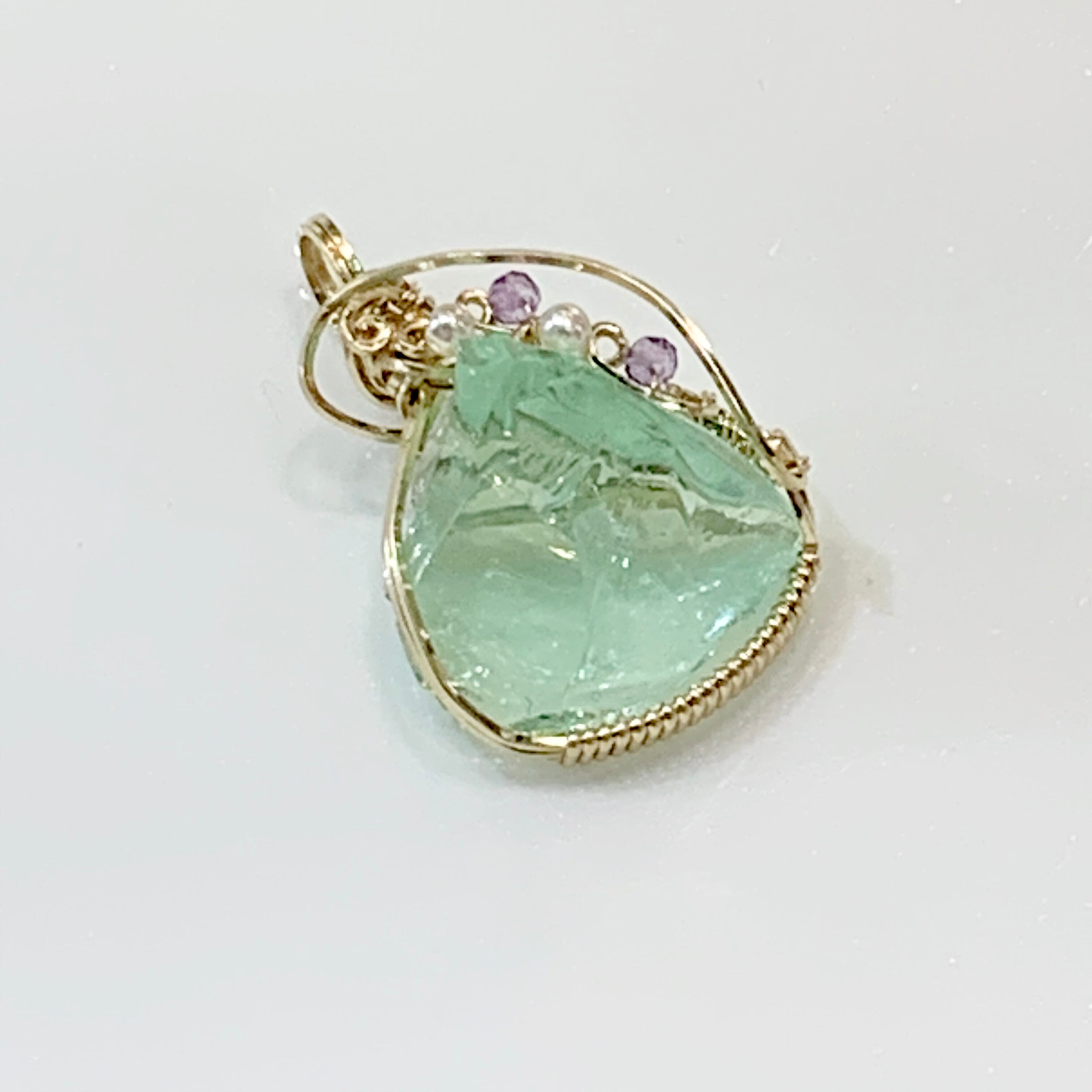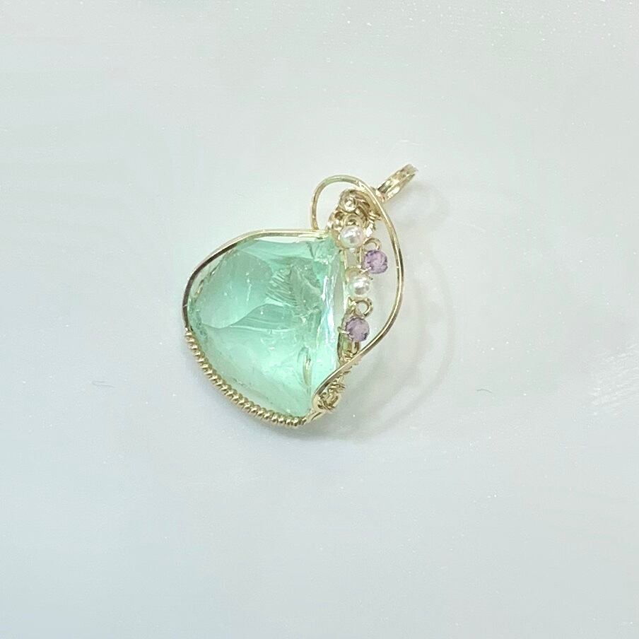 専用ページ♡:miniペンダントトップ エーテルミント&フィガロチェーン 14kgf