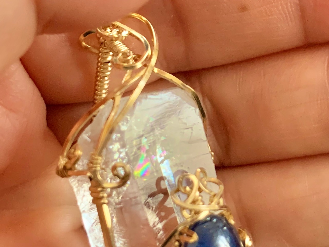 ポイント上部に虹をもつ水晶ポイントです