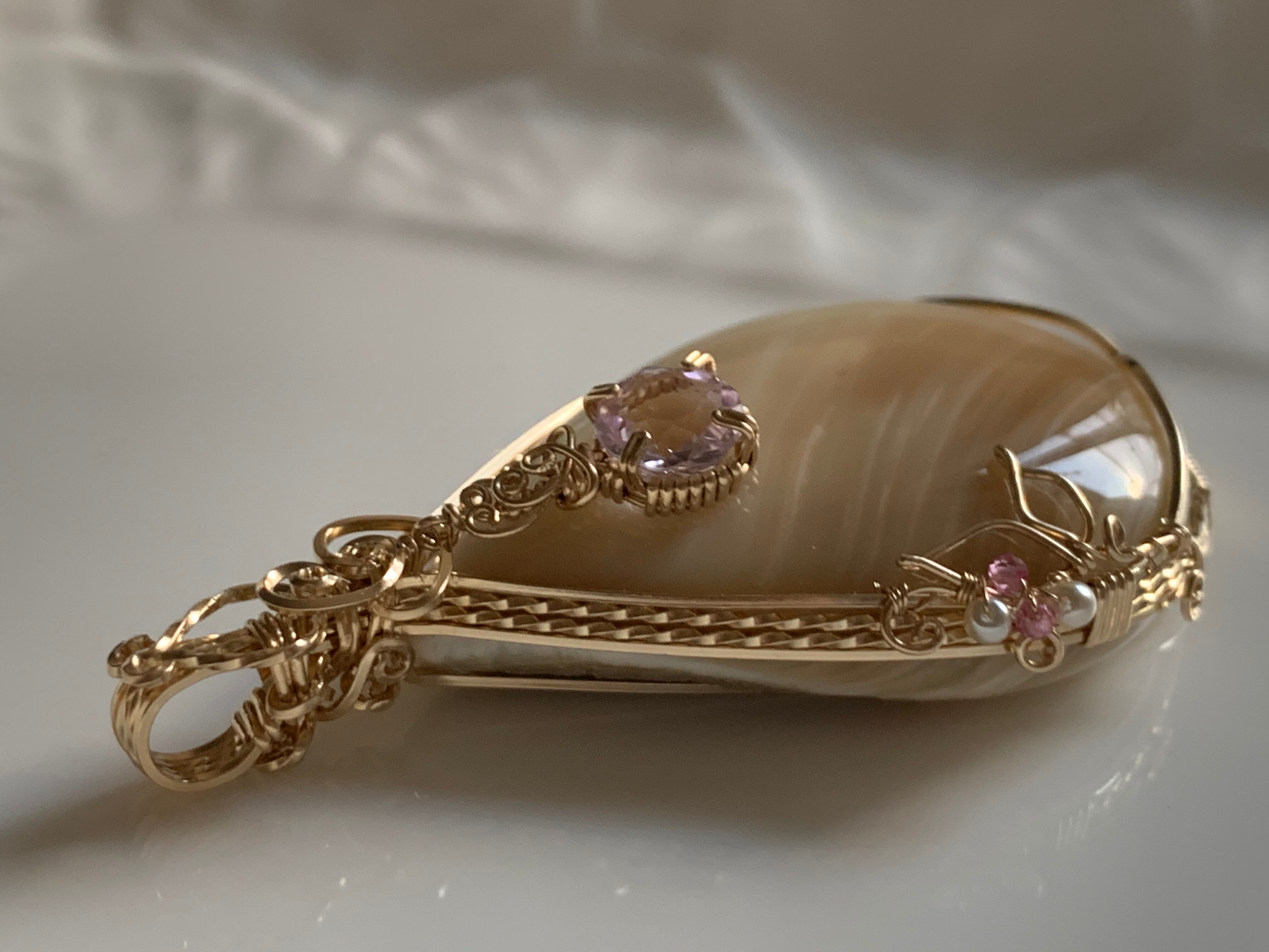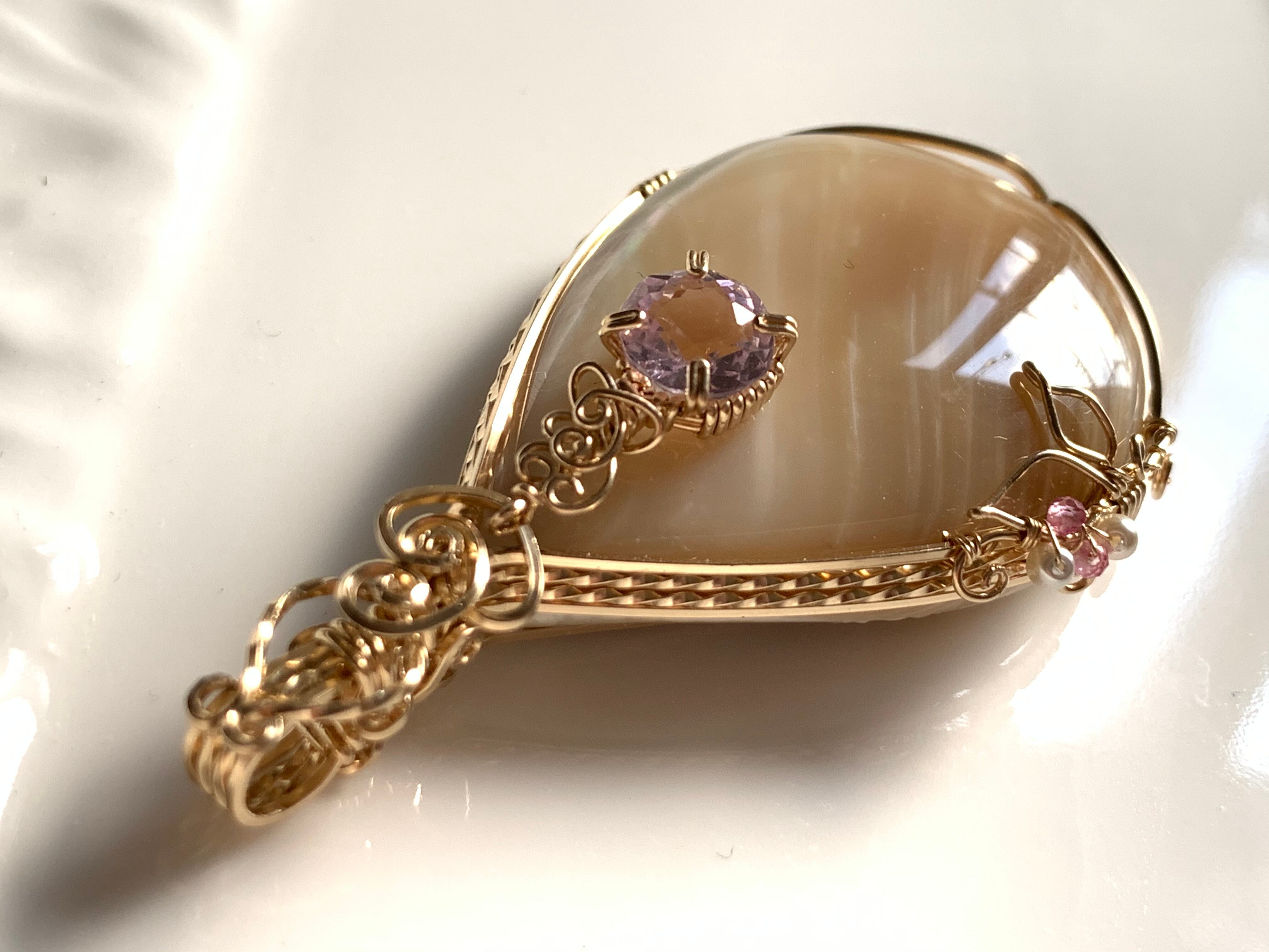 飴色に柔らかいピンクのクンツァイトが、上品でまた凛とした美しさを醸し出しています