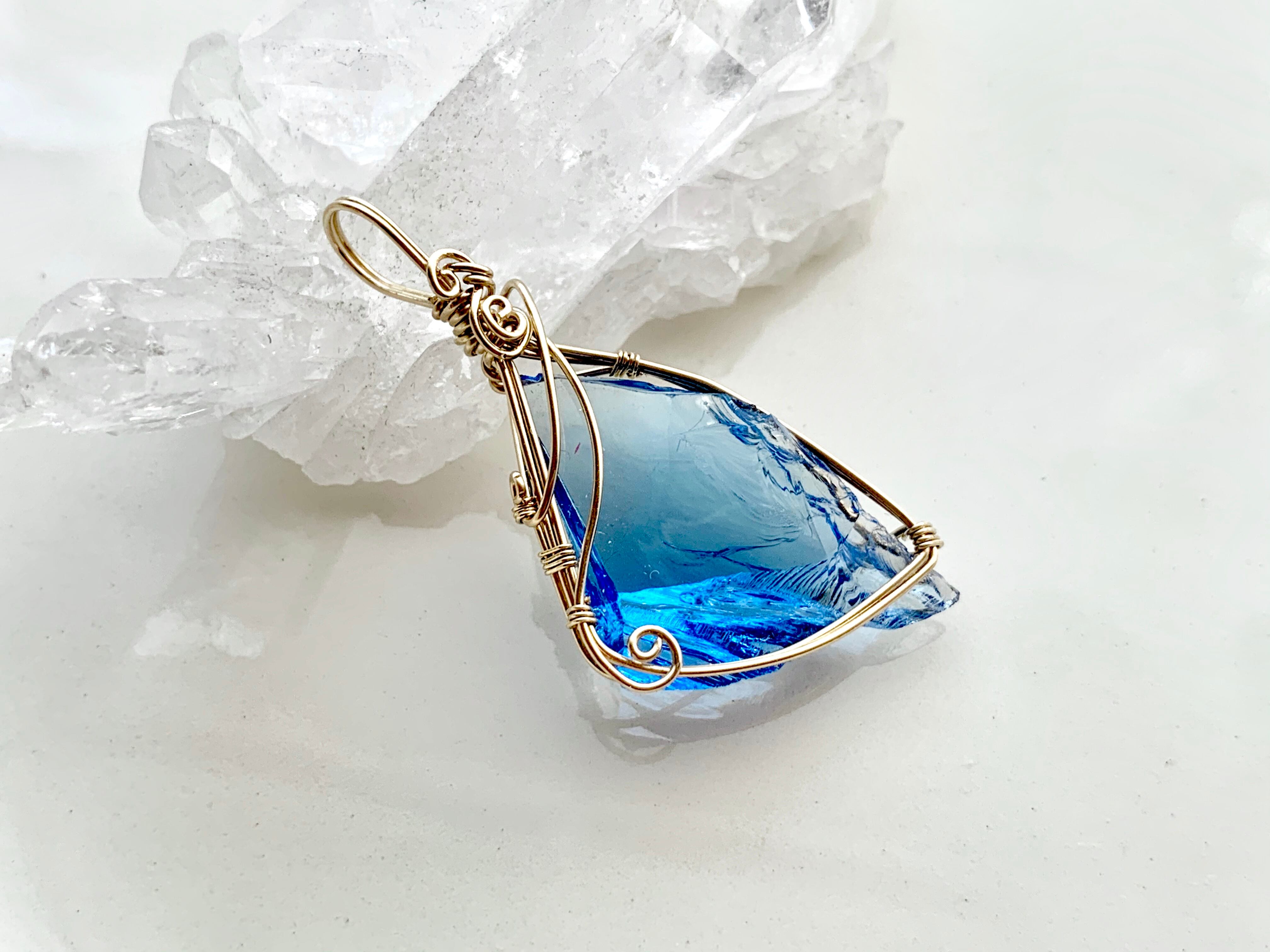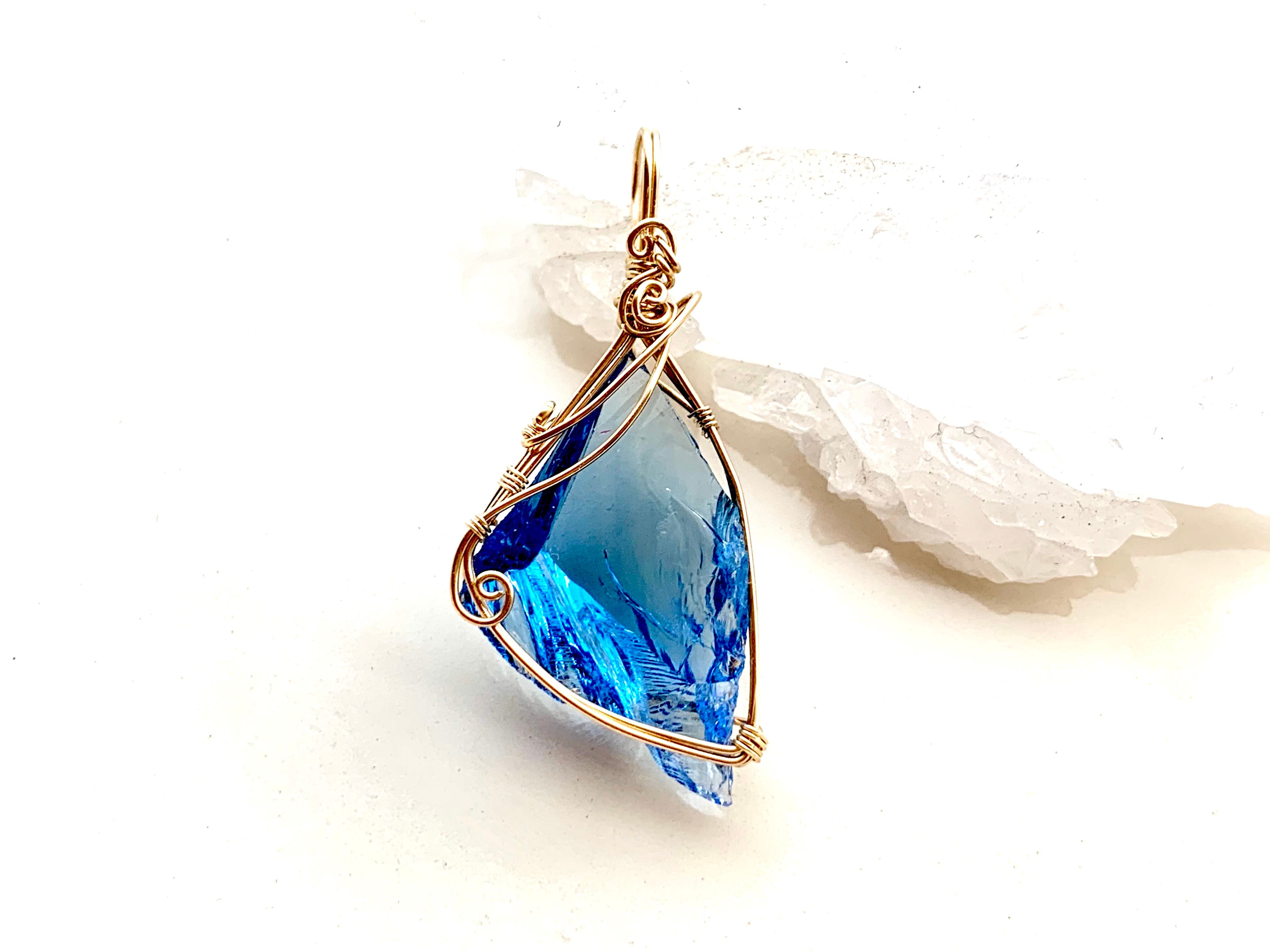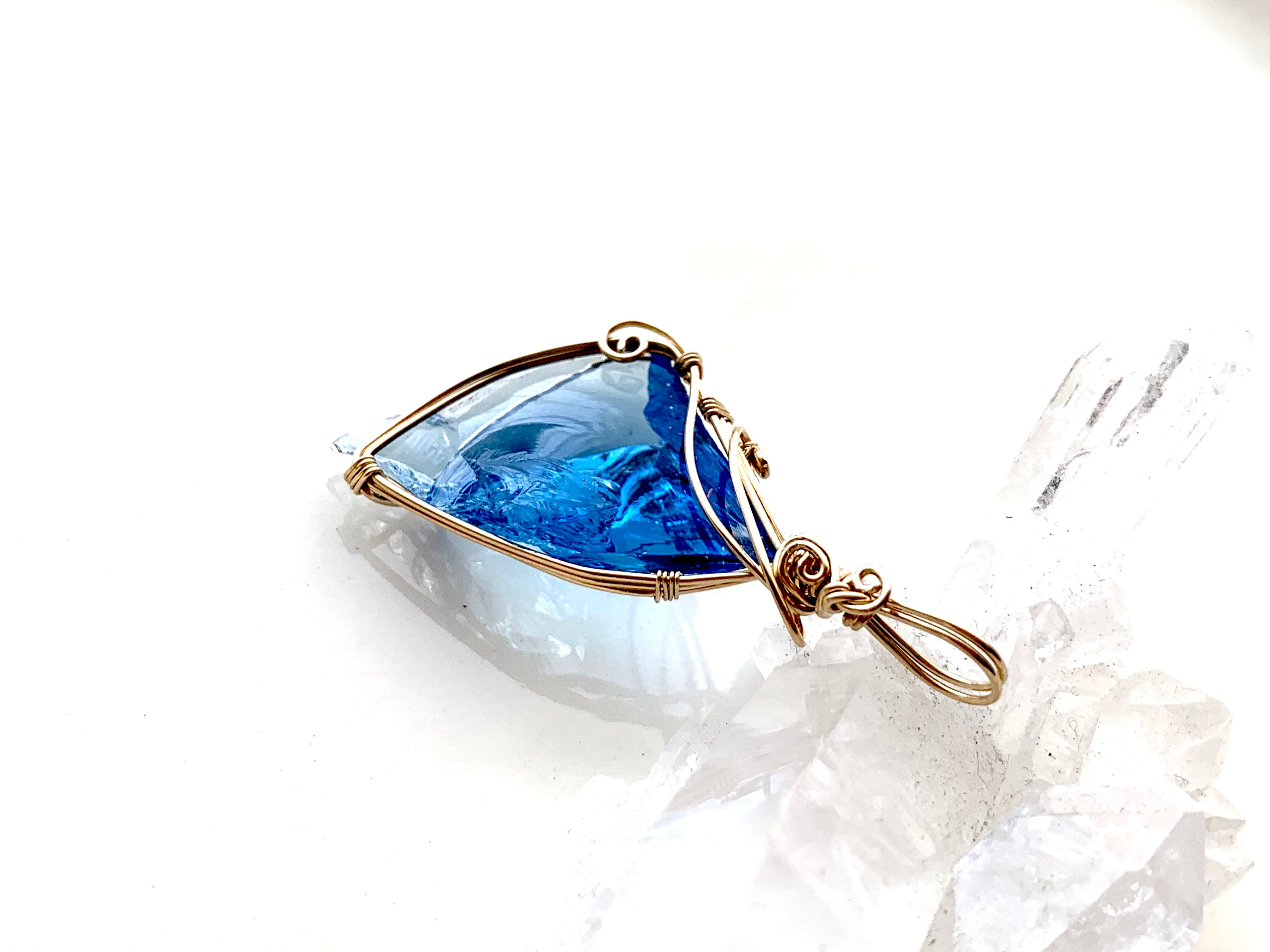 下の方に厚みのあるクリスタルなので、上から順に増す蒼いグラデーションを楽しんで頂けます