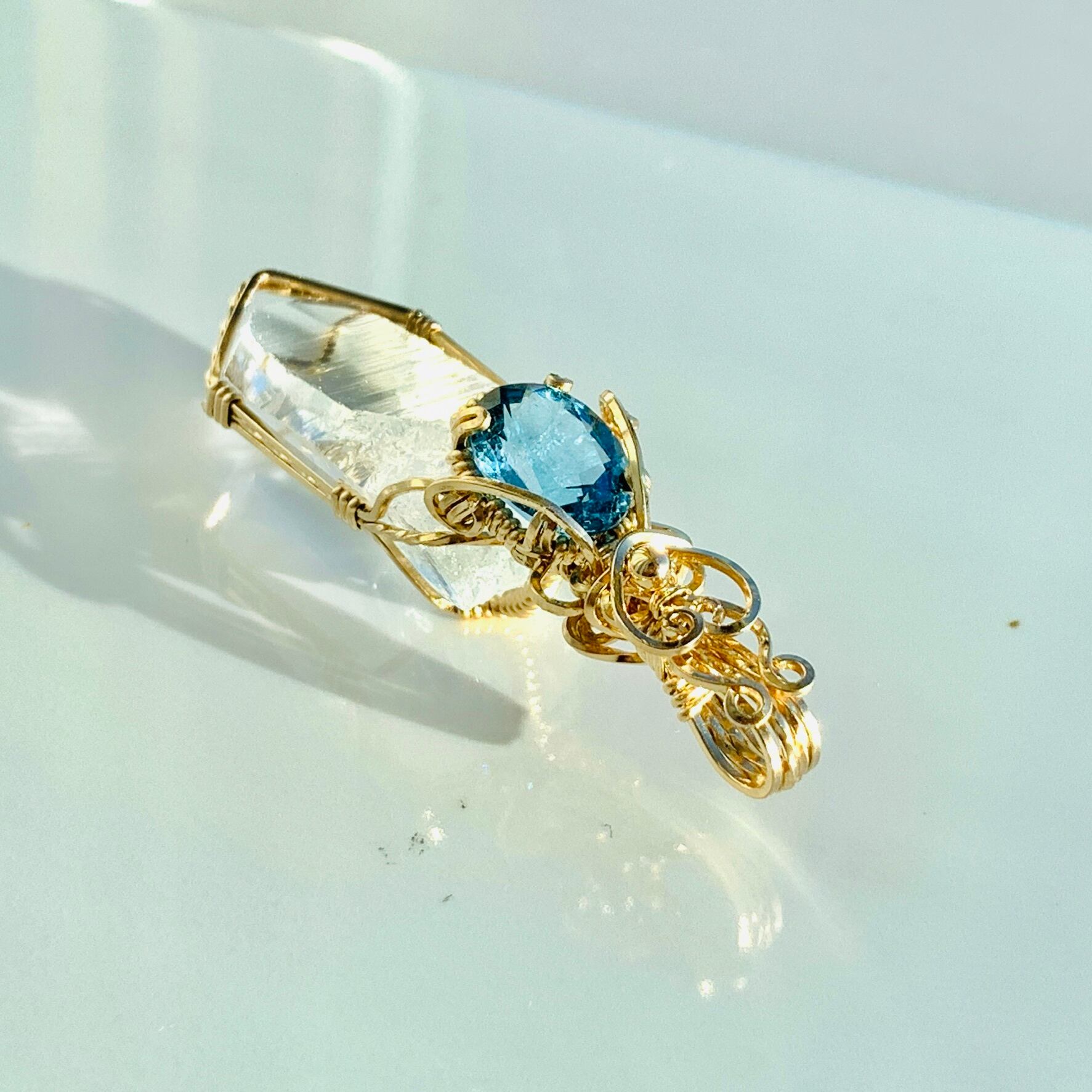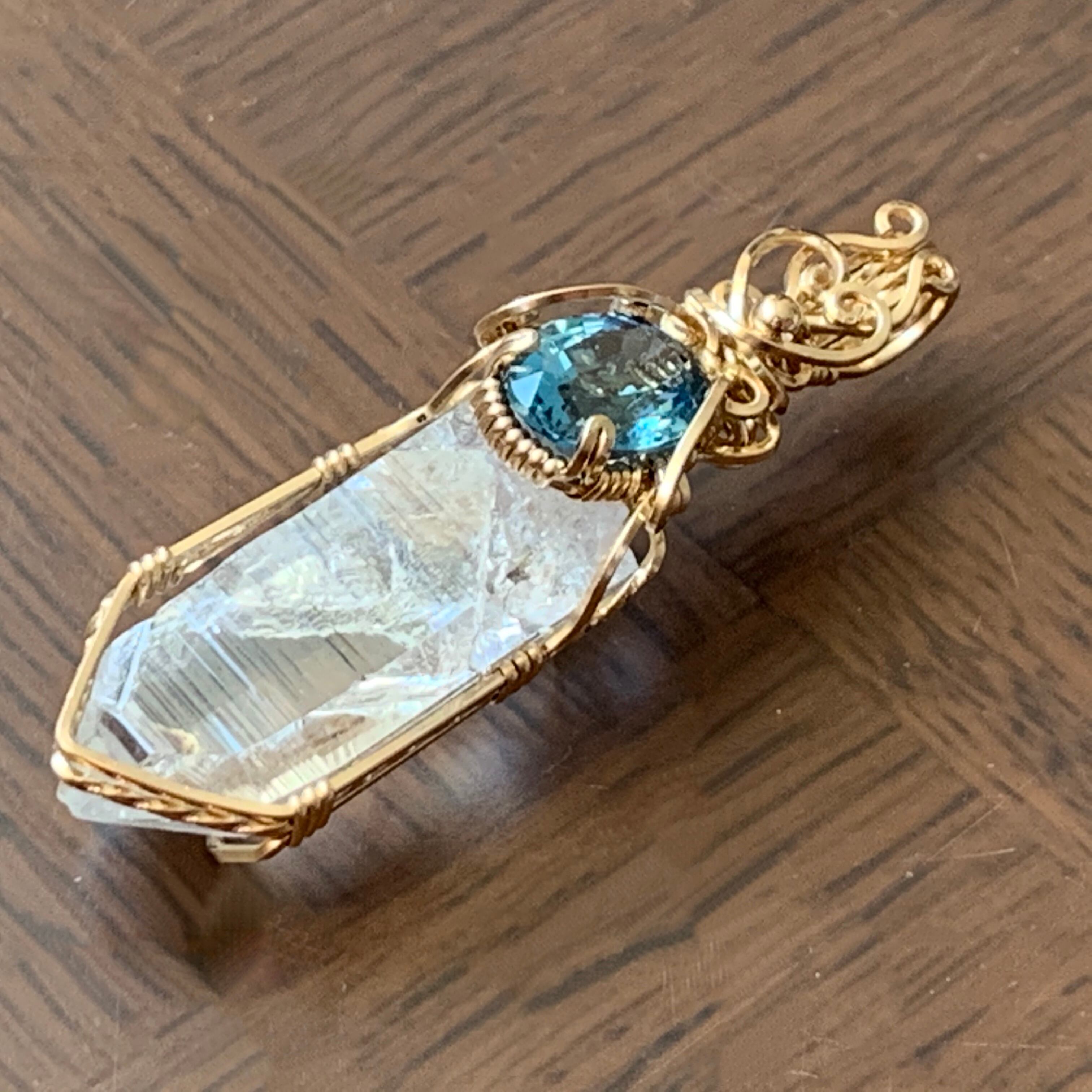 鏡面の美しいレムリアンシードクリスタルの、クリアなブルーのフラーライトをサポートストーンに♡