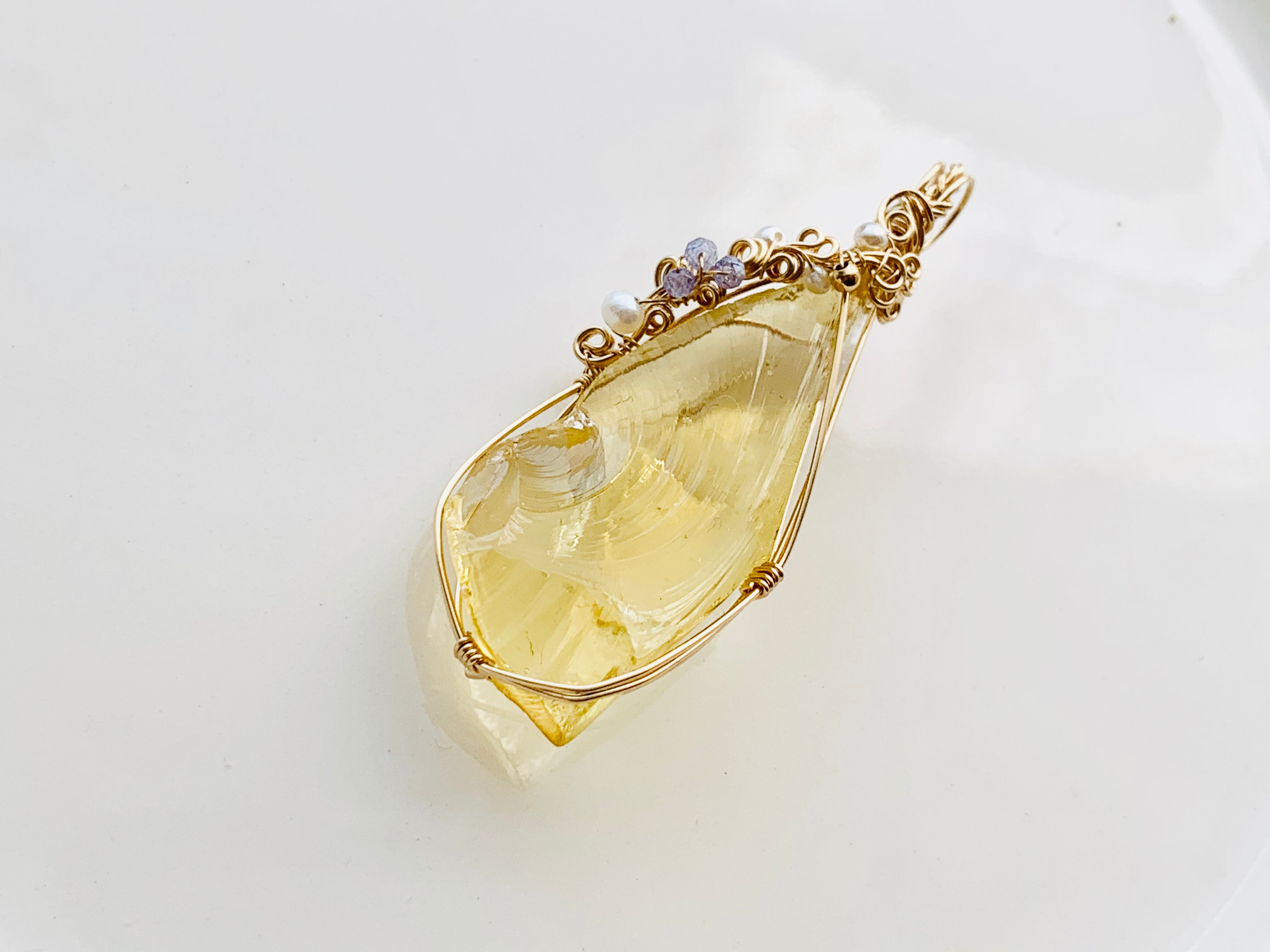 鮮やかな黄緑色からサフランゴールドいろに輝くこのアンダラクリスタルは、スピリチュアルな暖かさを放ち、神聖な生命力、意志を高めます