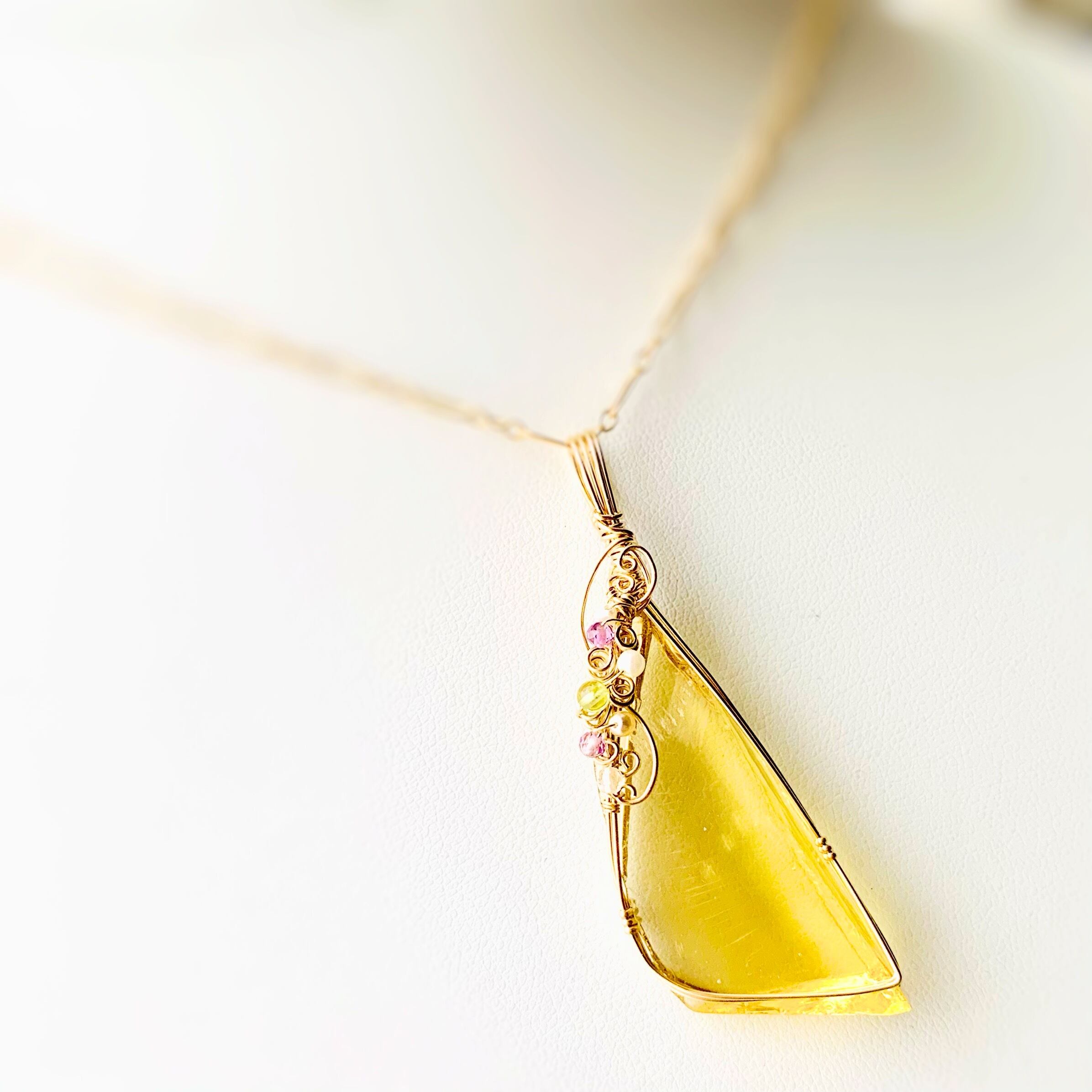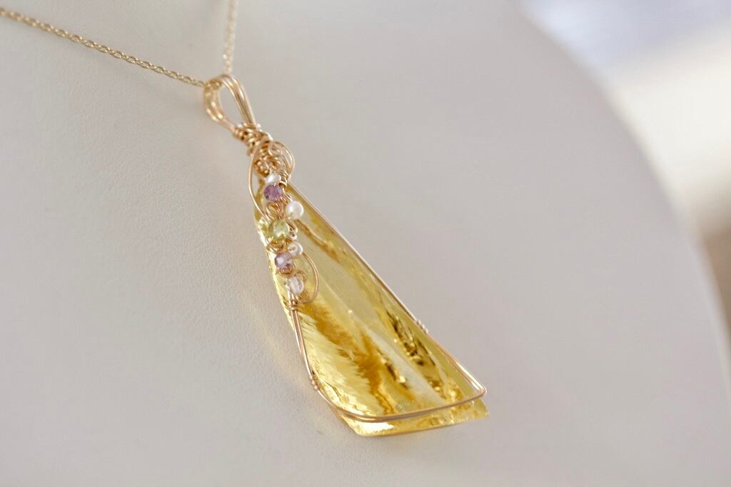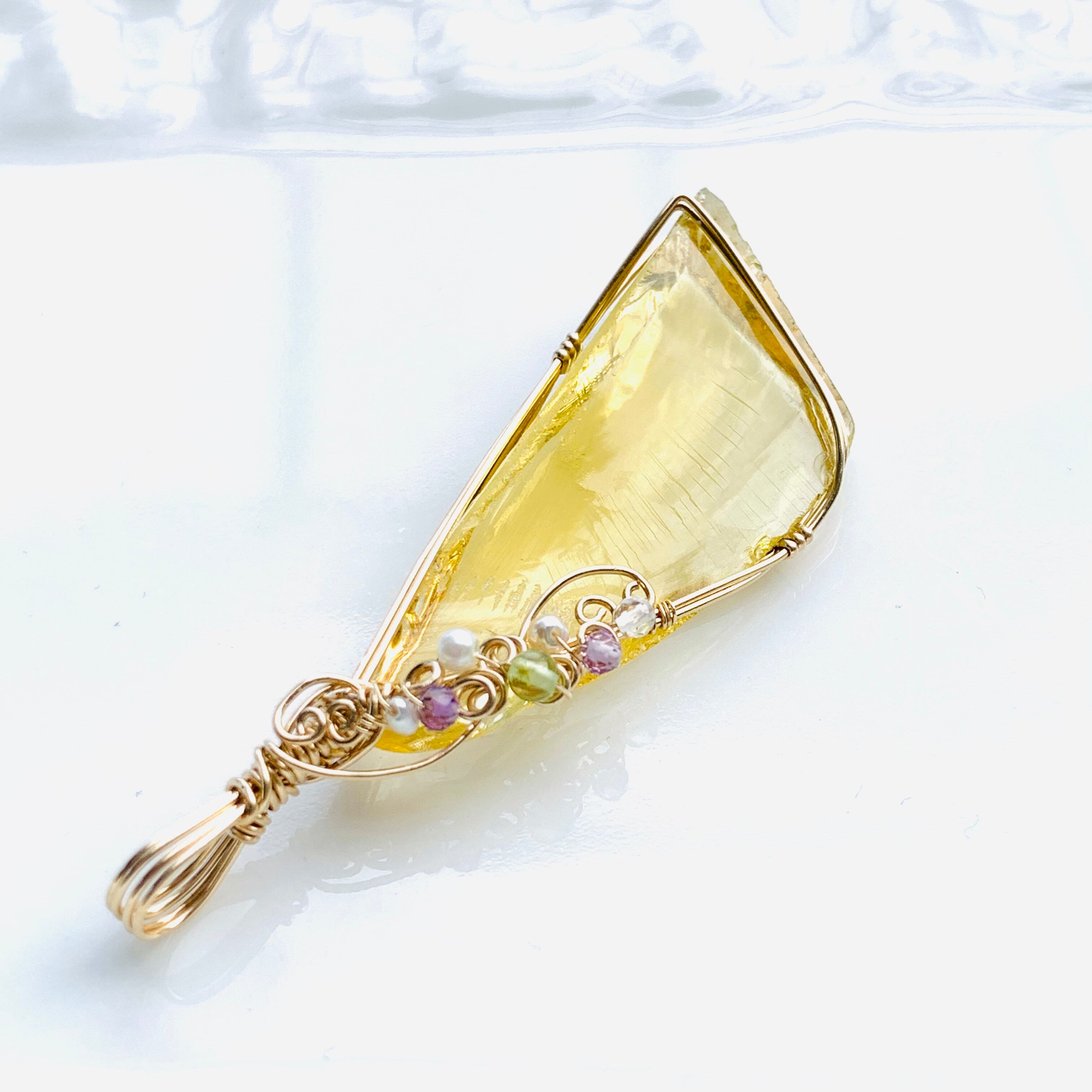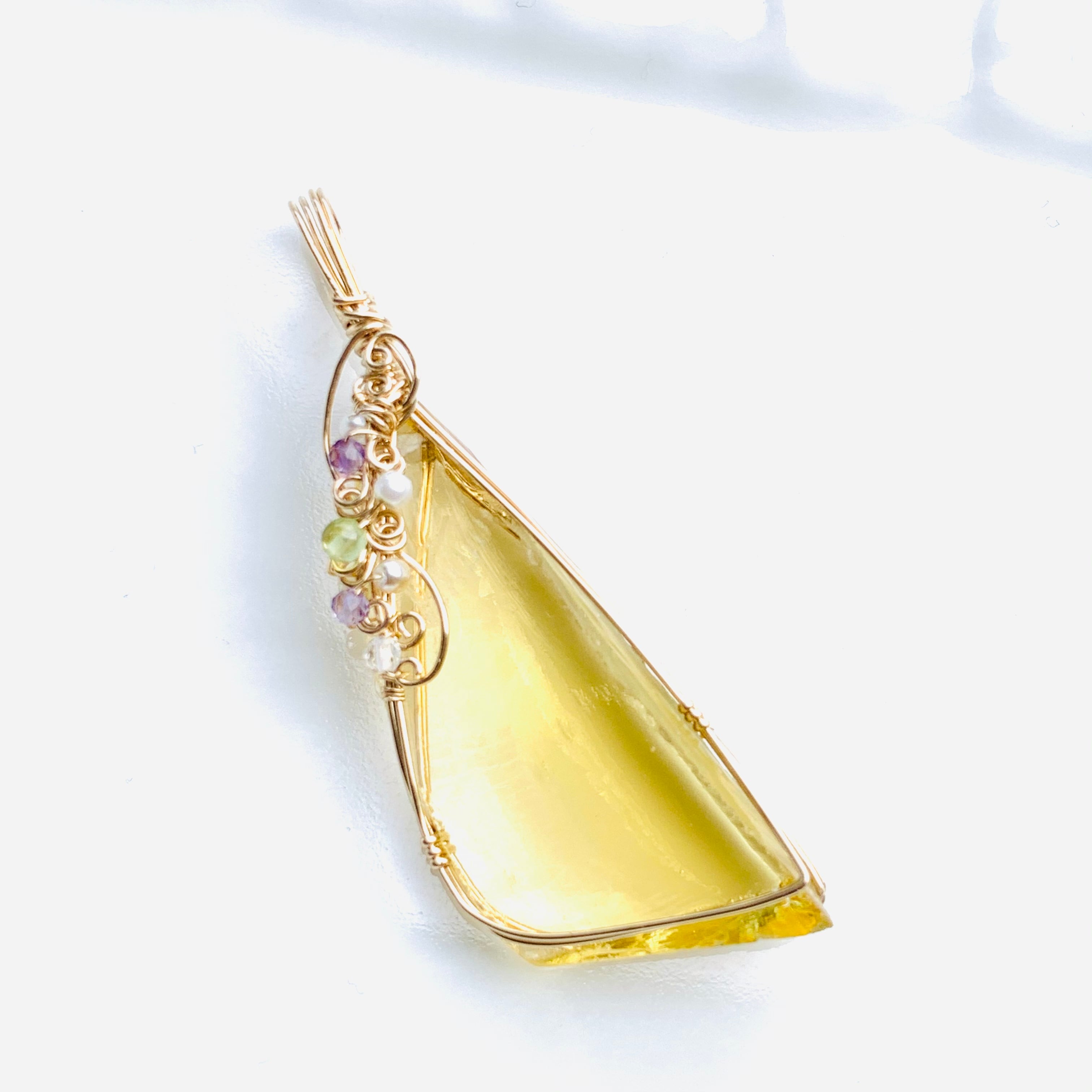 装飾にはピンクアメジスト、ホワイトトパーズ、ペリドット、アメジスト、ガラスパール、淡水パールを使用しています⭐︎