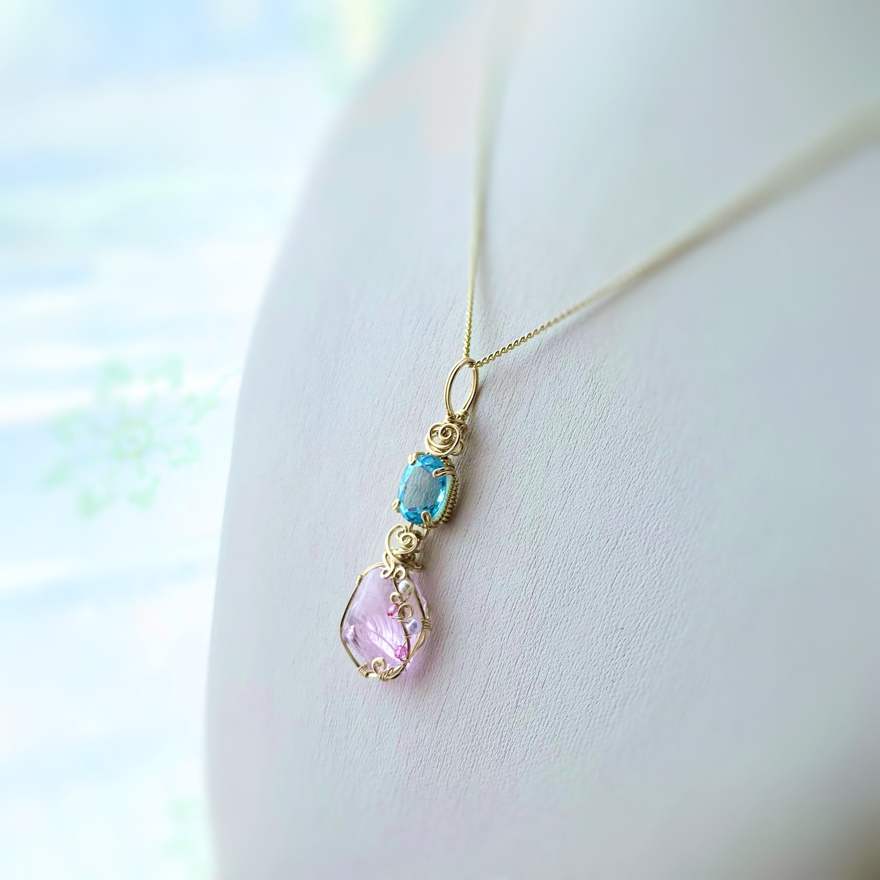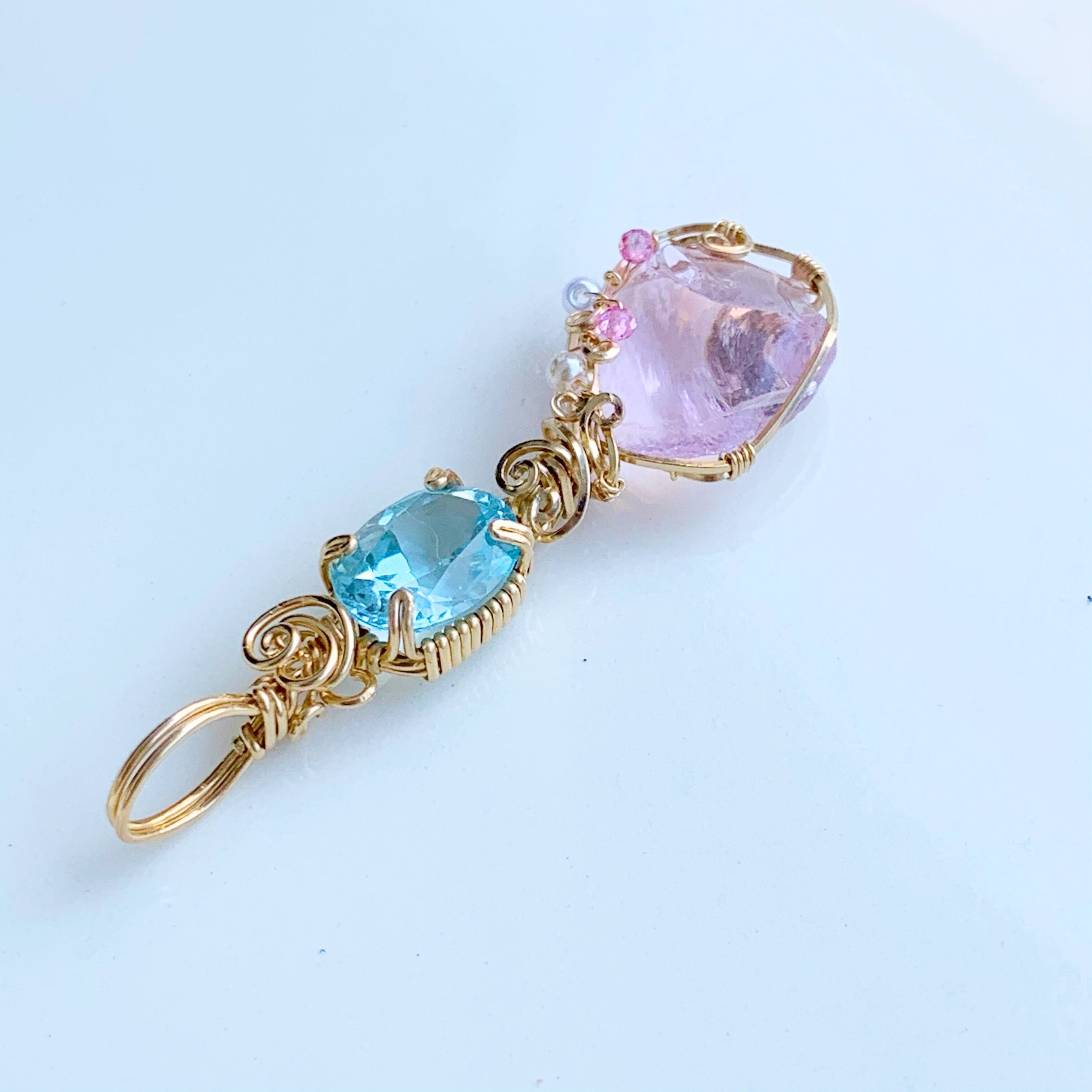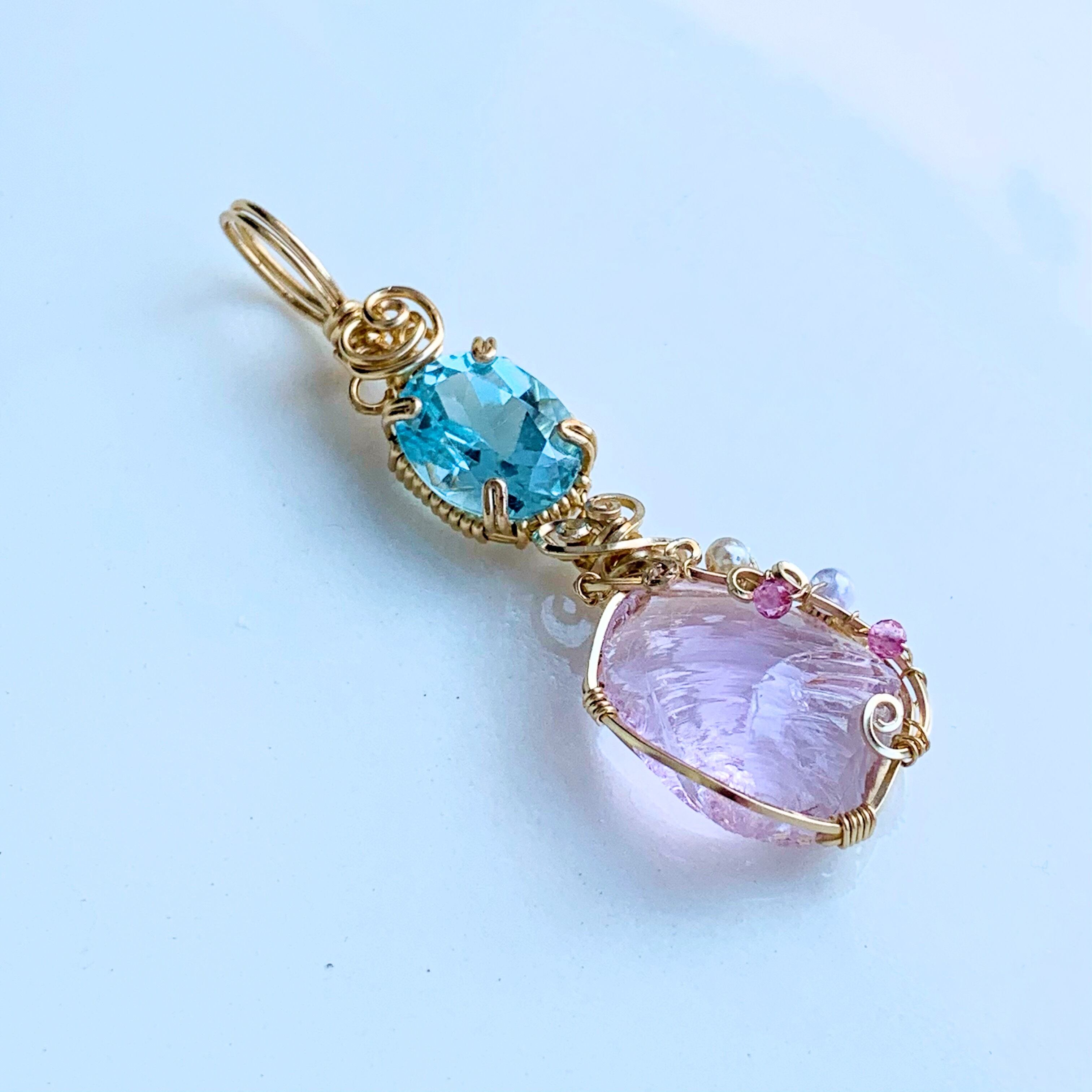 天然石&アンダラクリスタル ブルートパーズ&ハートオブゴットウィズインピンク 14kgf