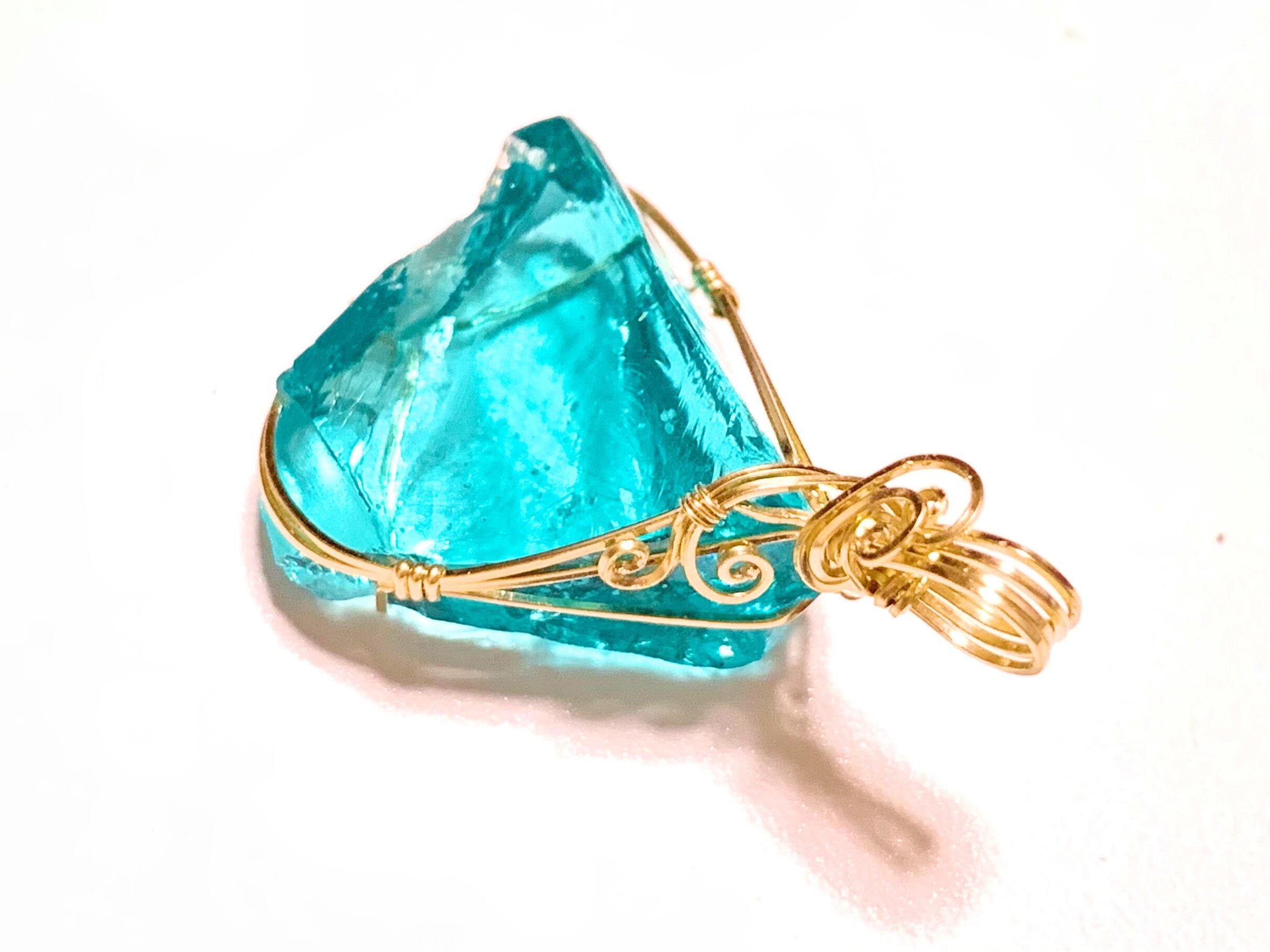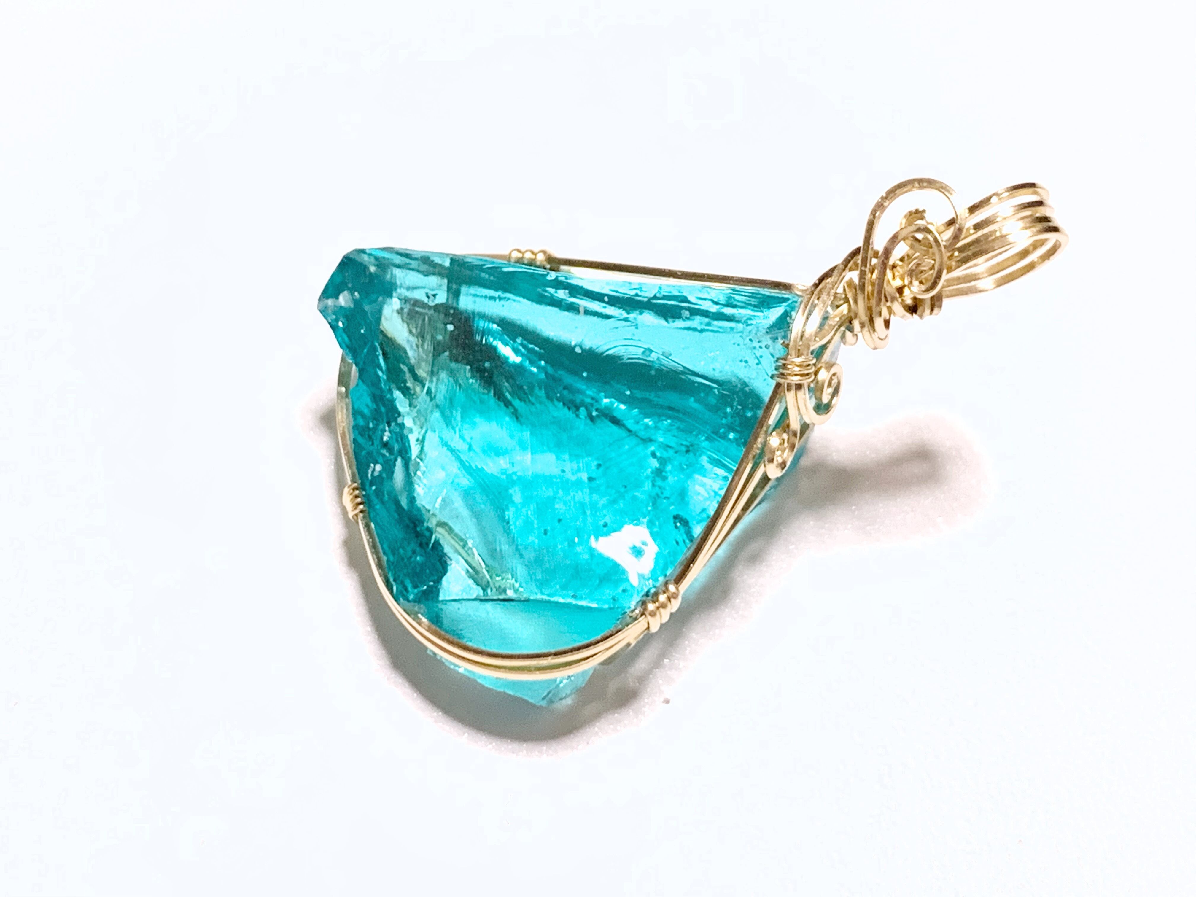 クリスタルの縁をギリギリにワイヤーをお掛けして、エレクトリックブルーを楽しんで頂けるよう、創作致しました