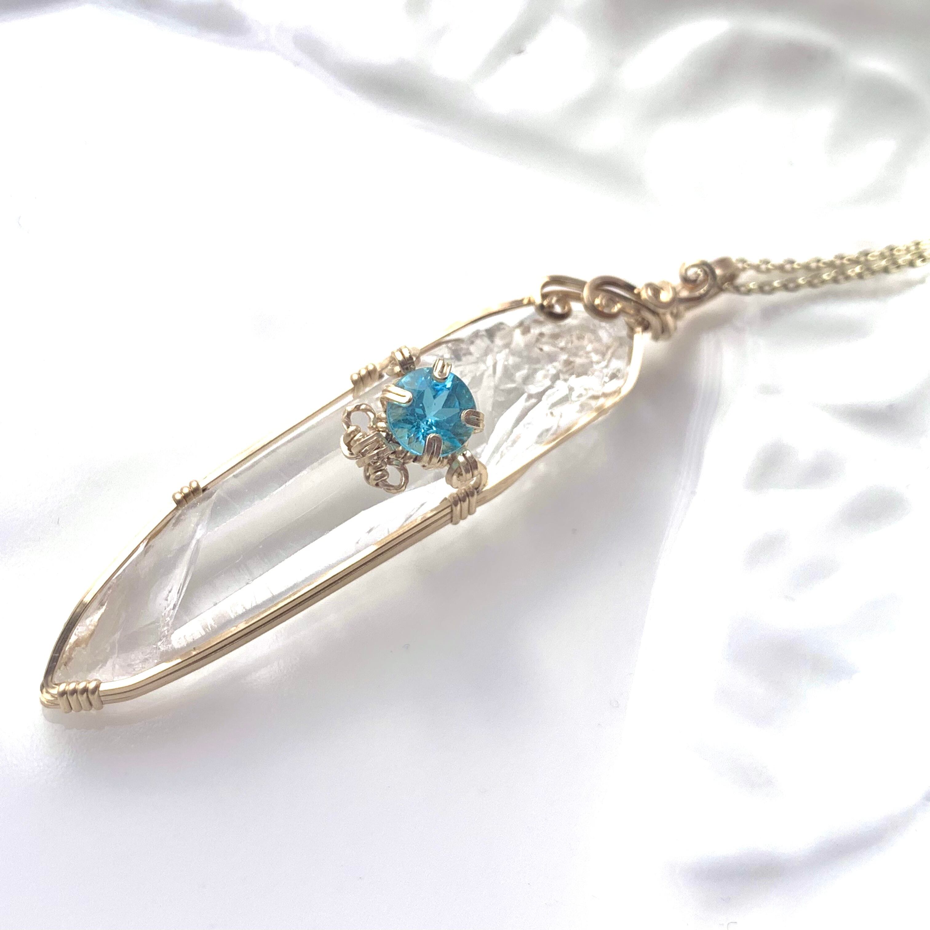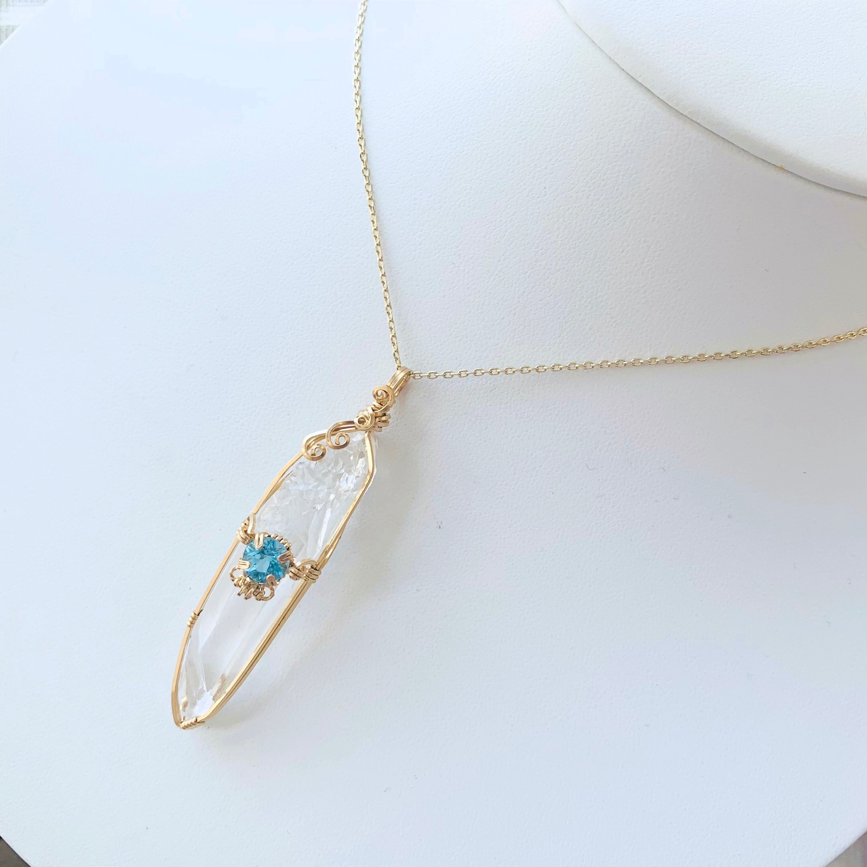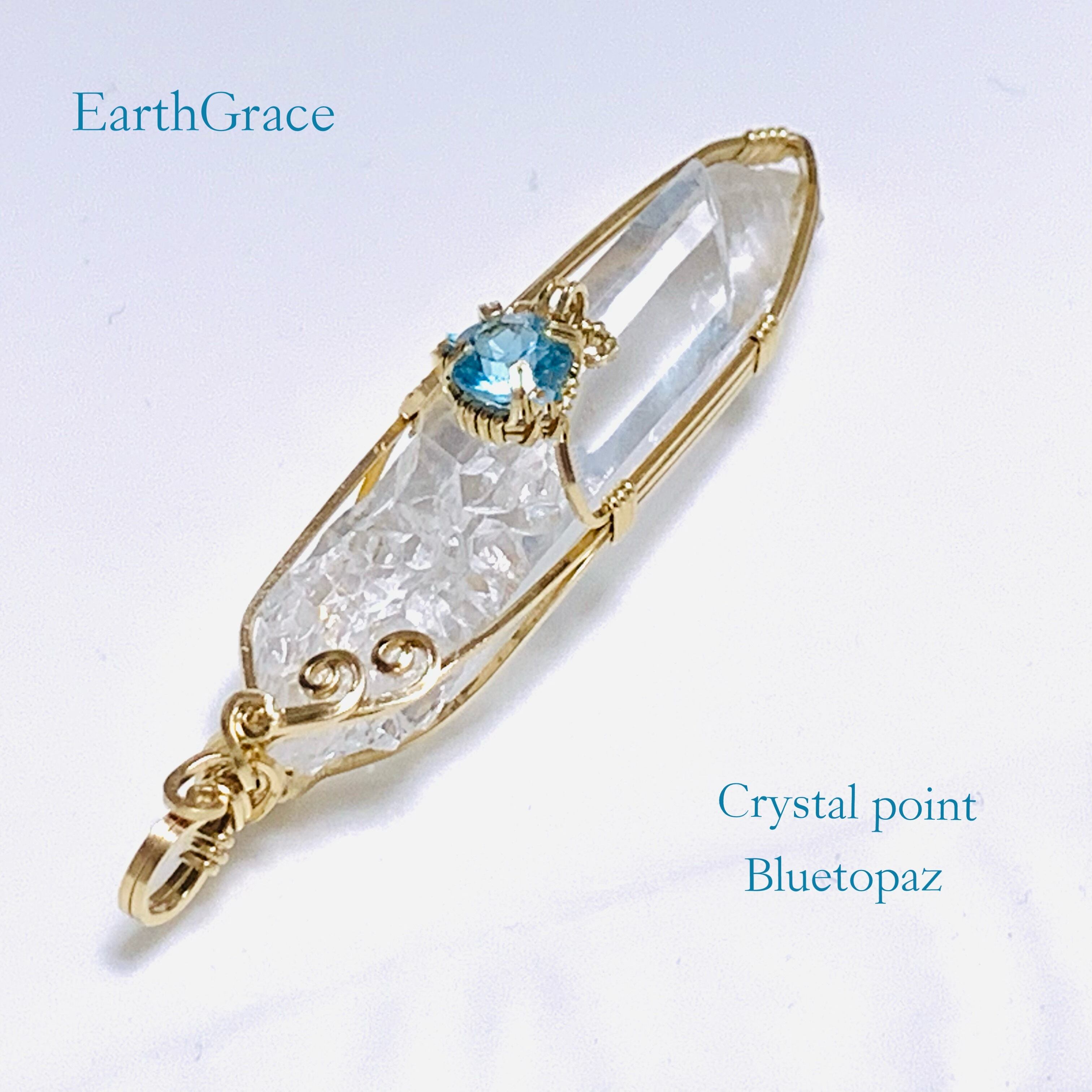 透明度の高い鏡面するようなクリスタルポイントを、鮮やかなブルーの美しいスイスブルートパーズをサポートストーンに、創作致しました♡