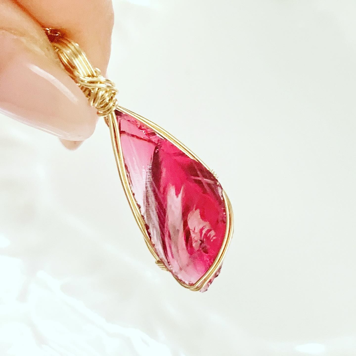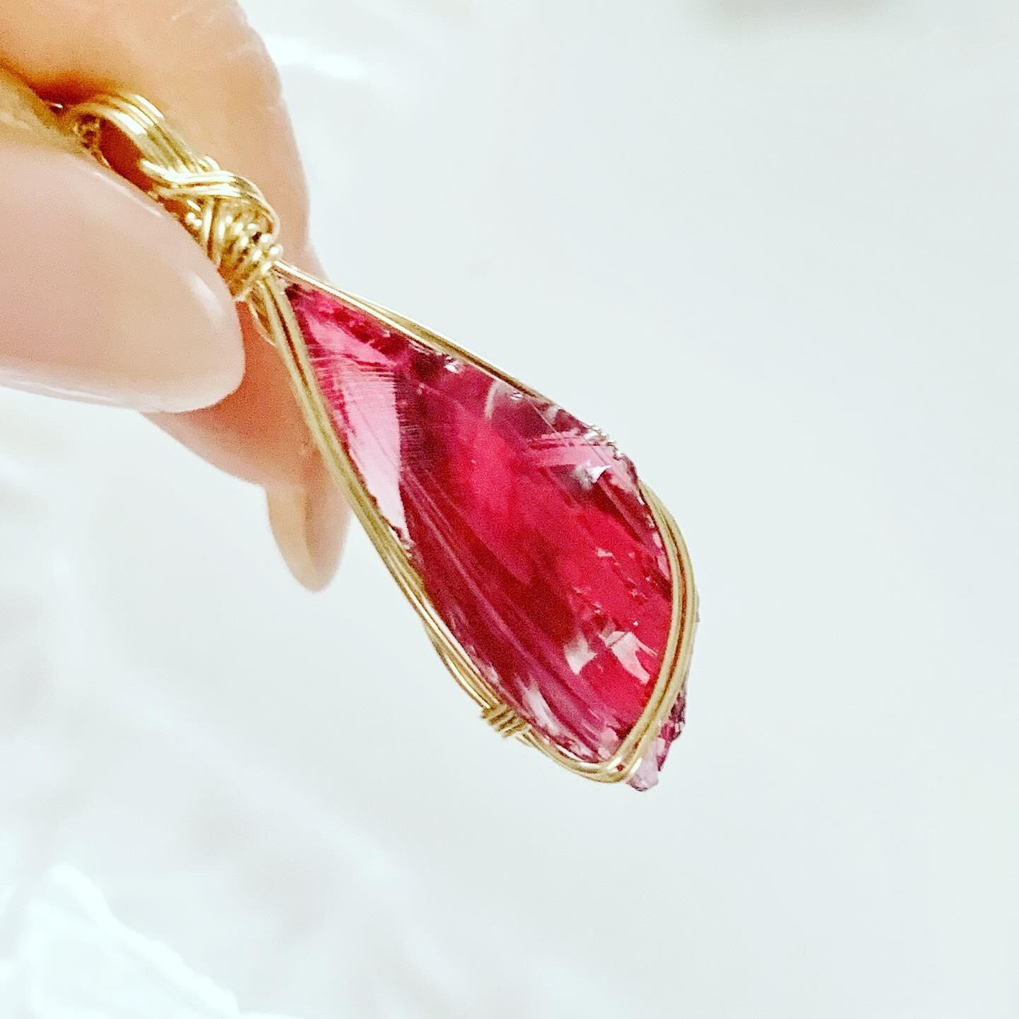 ラズベリーは光に透かすとまた少し違った色合いにも見え、クリスタルのお色味や波紋・照りなどうふっ♡っと楽しんで頂けると思います⭐︎