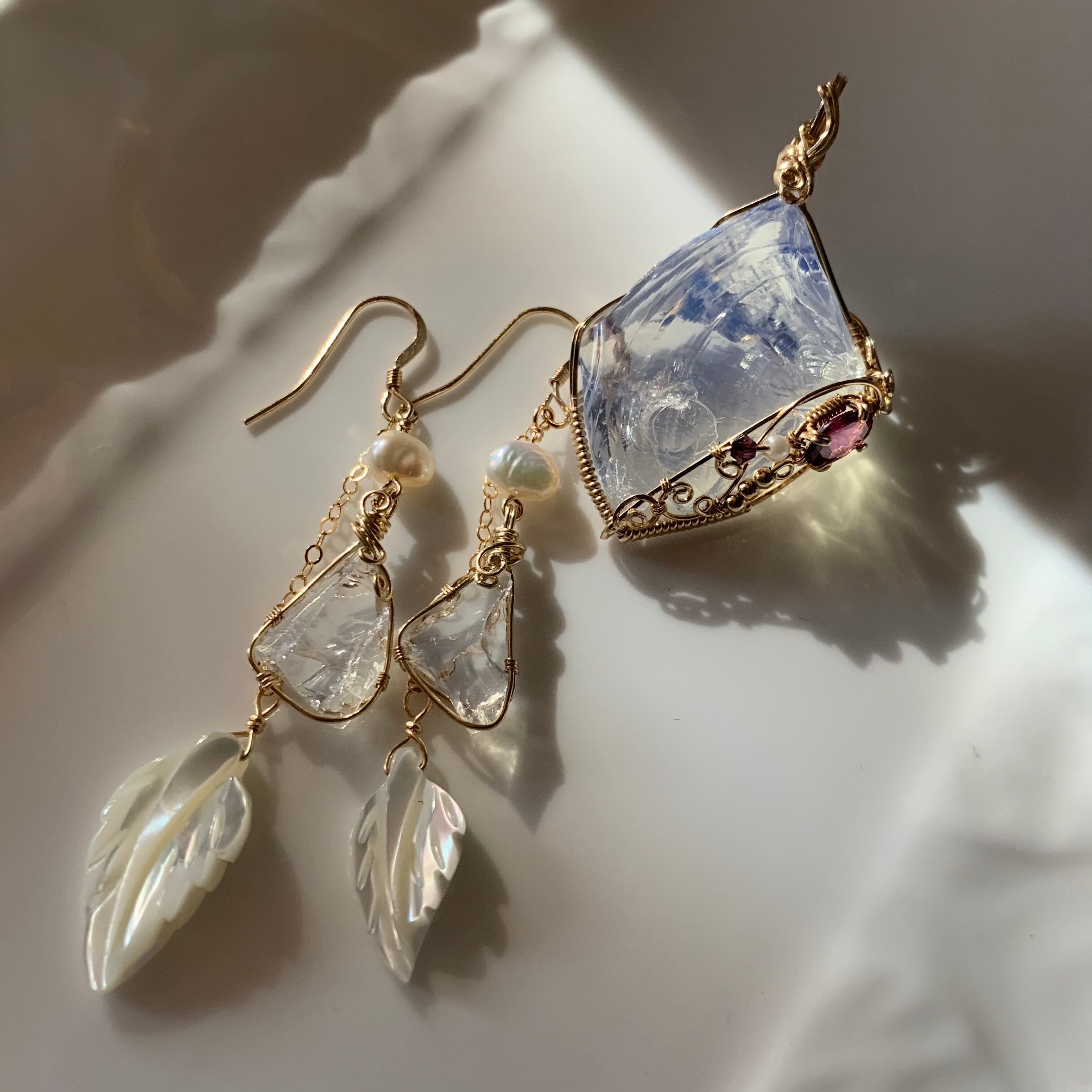 ペンダントトップとお揃いのエンジェルオーラコズミックアイスでピアスをお創りいたしました