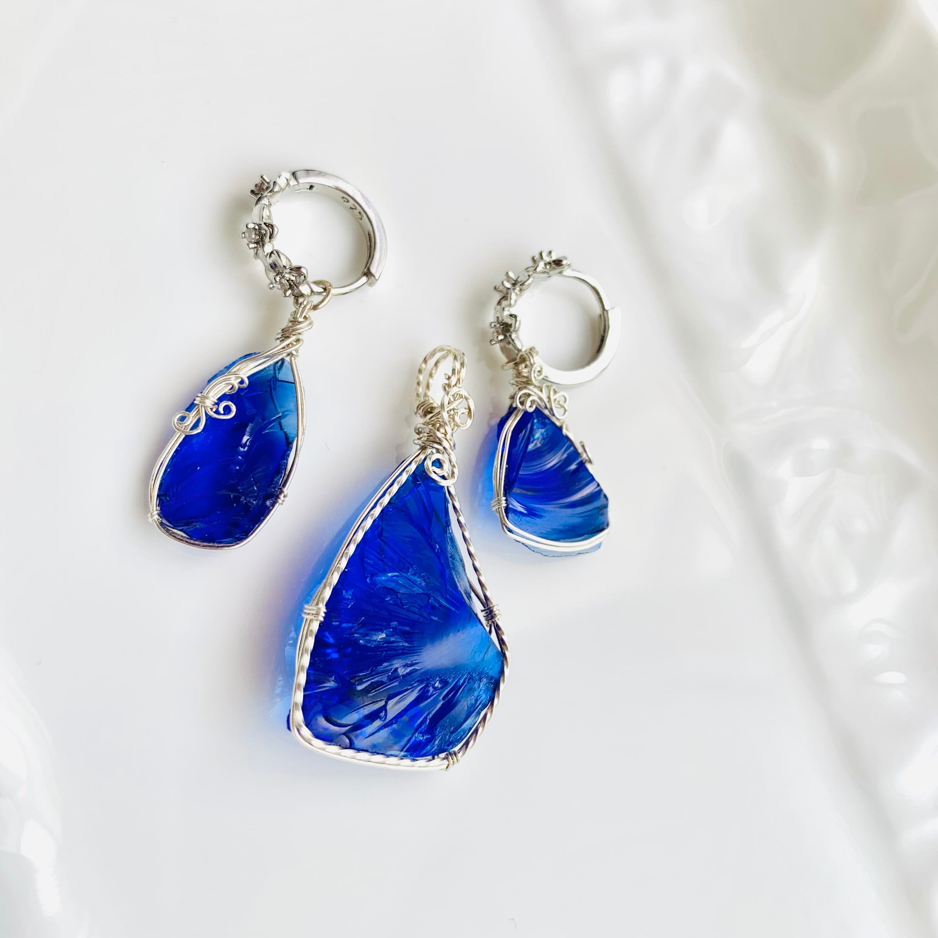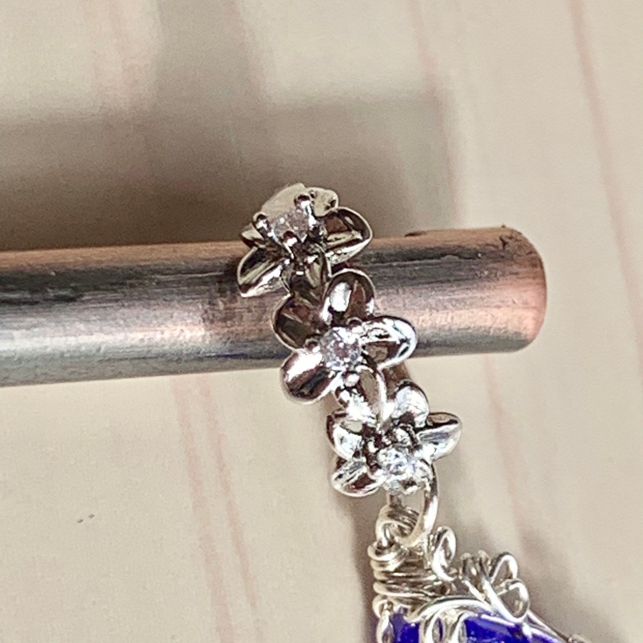 silver925のフラワーのフックを使用して、鮮やかなブルーのひと雫♡