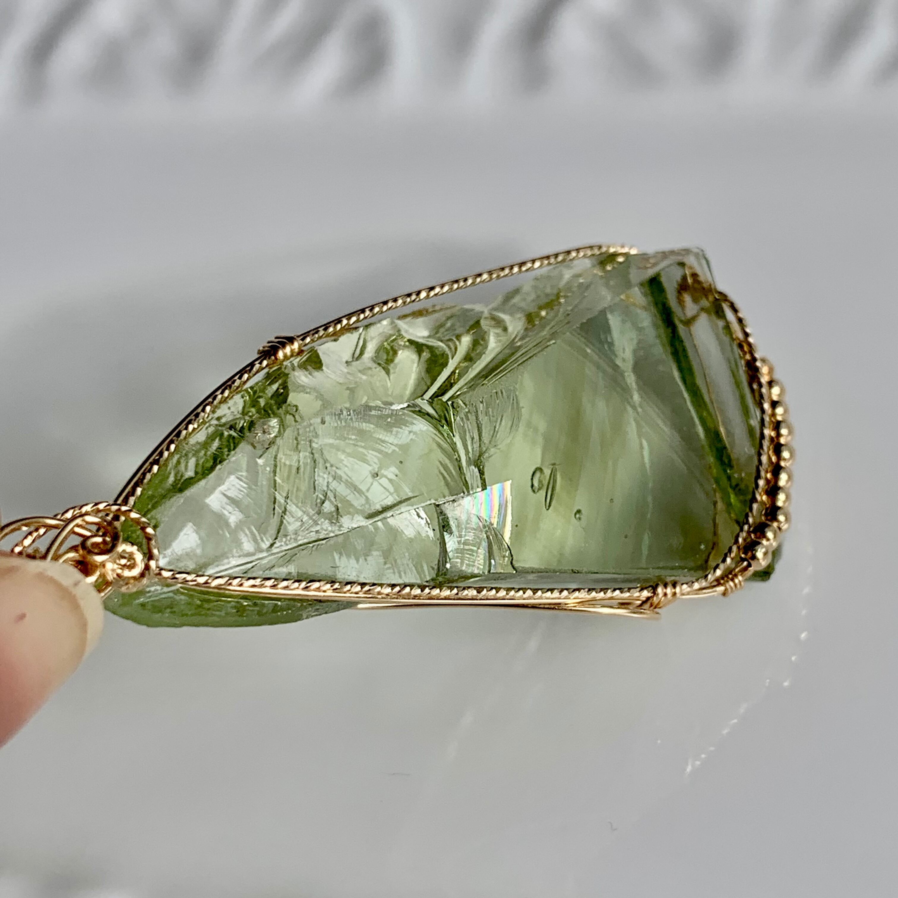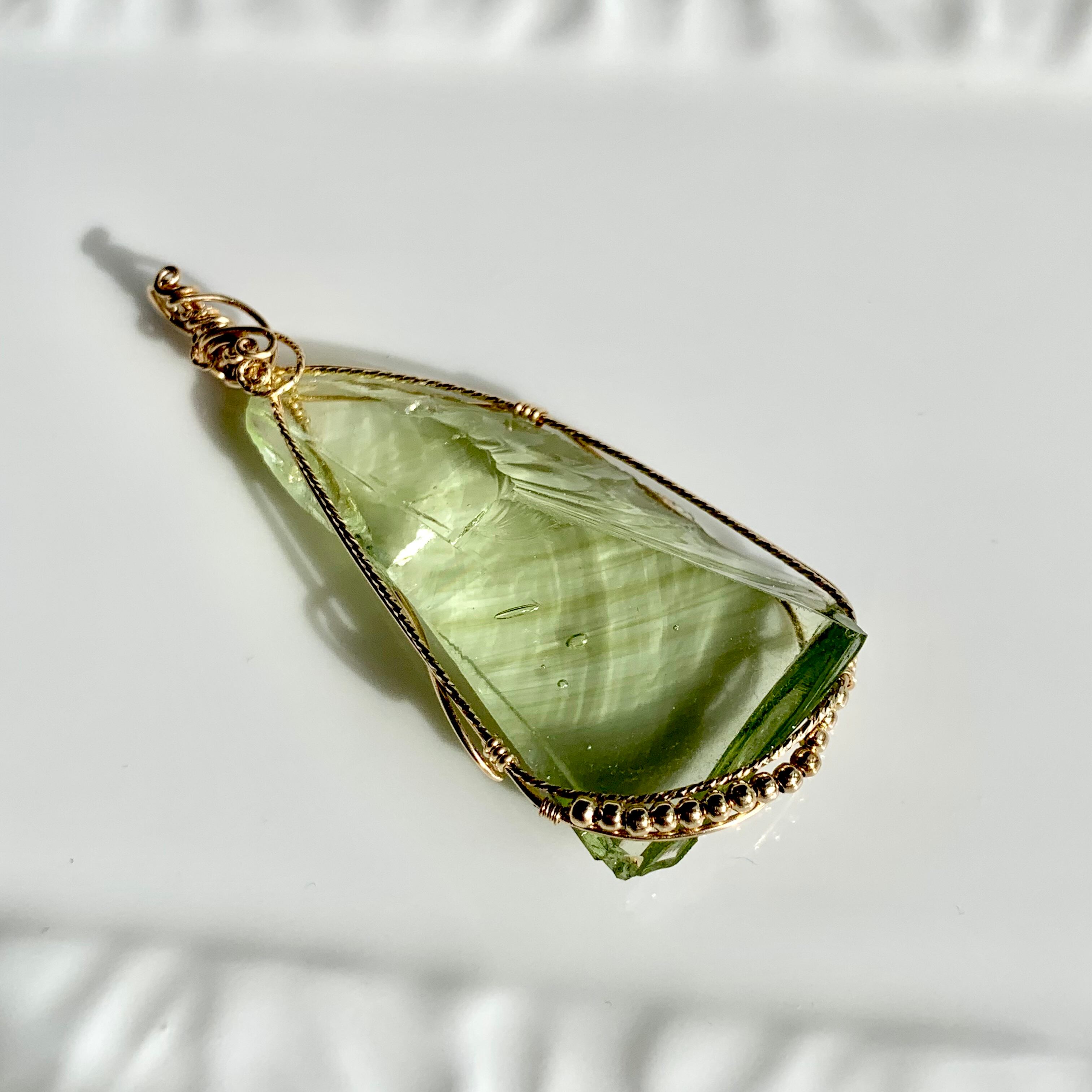ゴールドのような煌めきとグリーンの光を両方もち、縞模様の入ったレアなアンダラクリスタルが入荷いたしました⭐︎