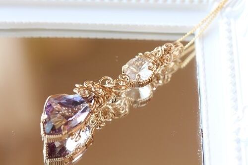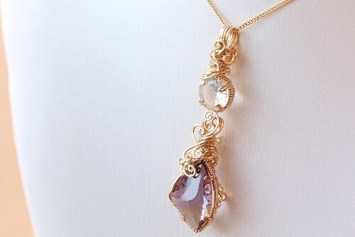宝石質のカットアメトリンと、こちらも宝石質のコンケープカットの水晶です