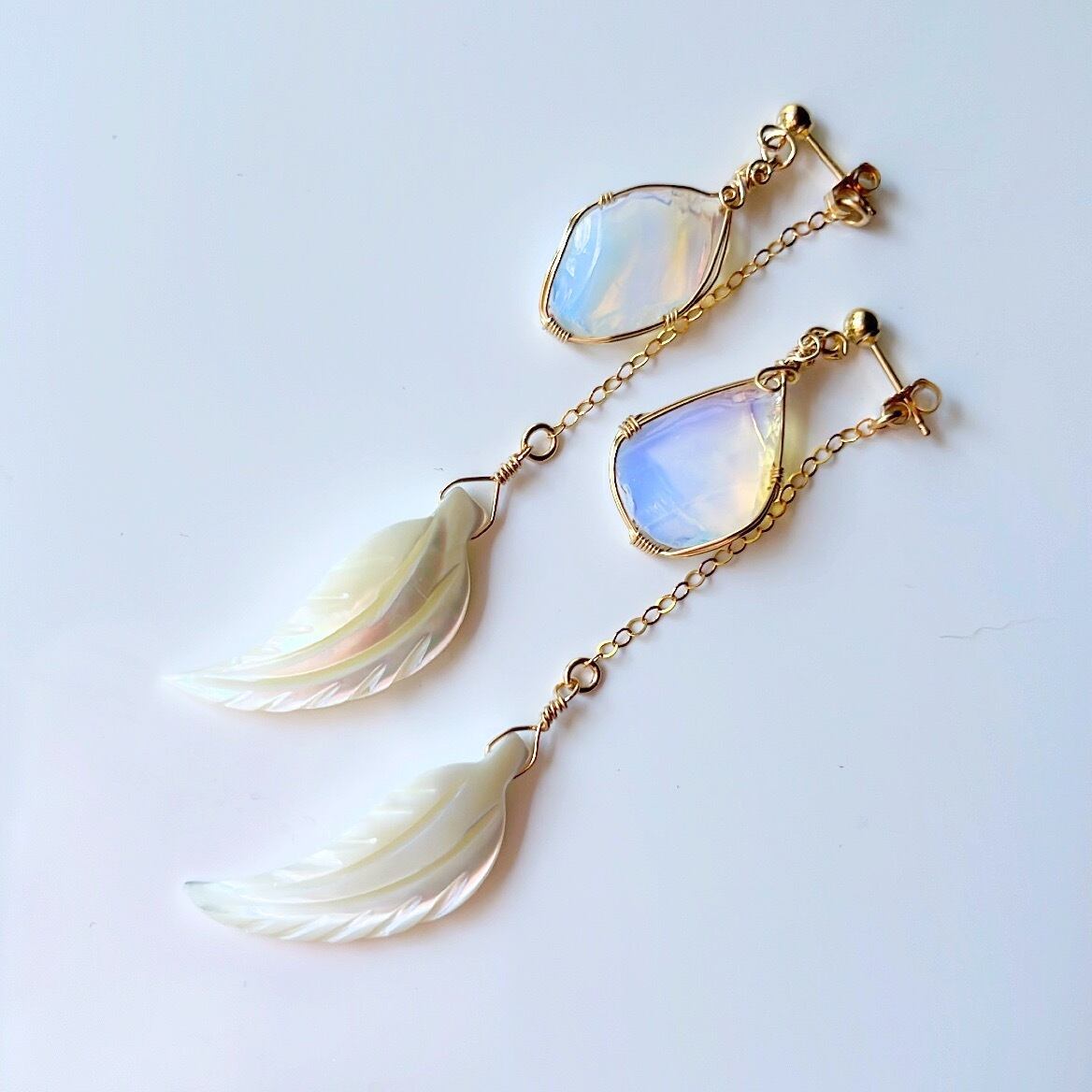ピアスはキャッチにホワイトシェルフェザーをおつけしました♪