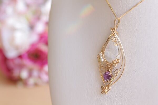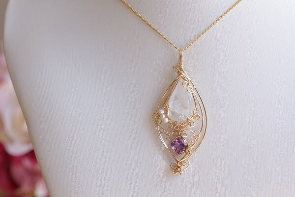 レインボームーンストーン&宝石質カットアメジスト 14Kgf