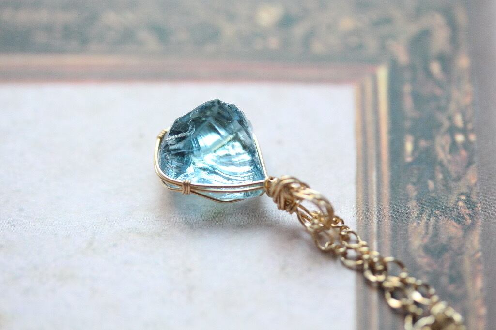アズールエリュシォンのペンダントトップは、厚みもありラフロック特有の凸凹も、色々な角度に傾けてみると、光をとらえて美しいんです(*≧∀≦*)