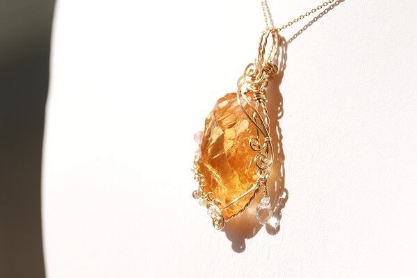 芳醇な果実を思わせるようなお色味の濃いラフロック原石のシトリンです