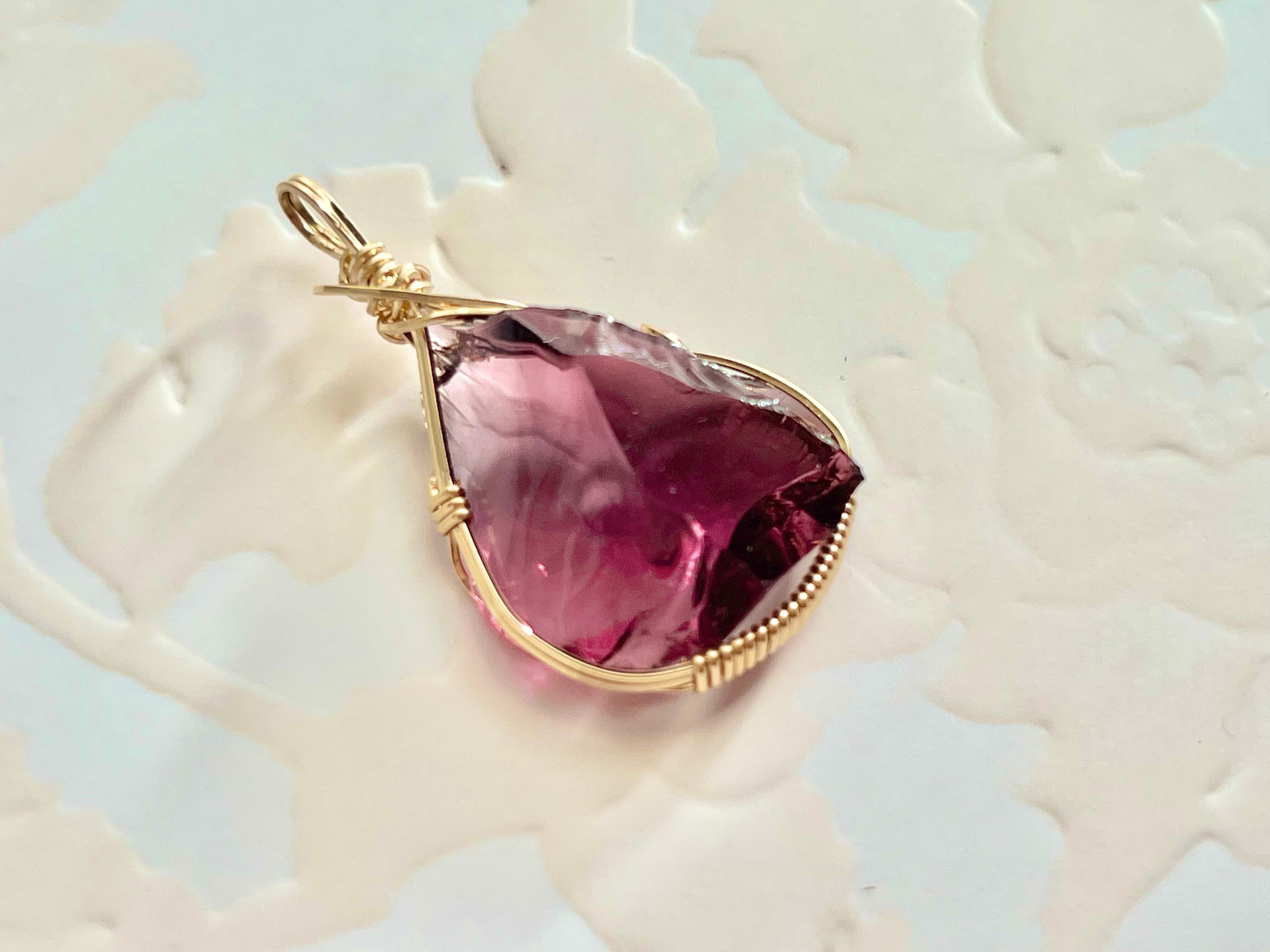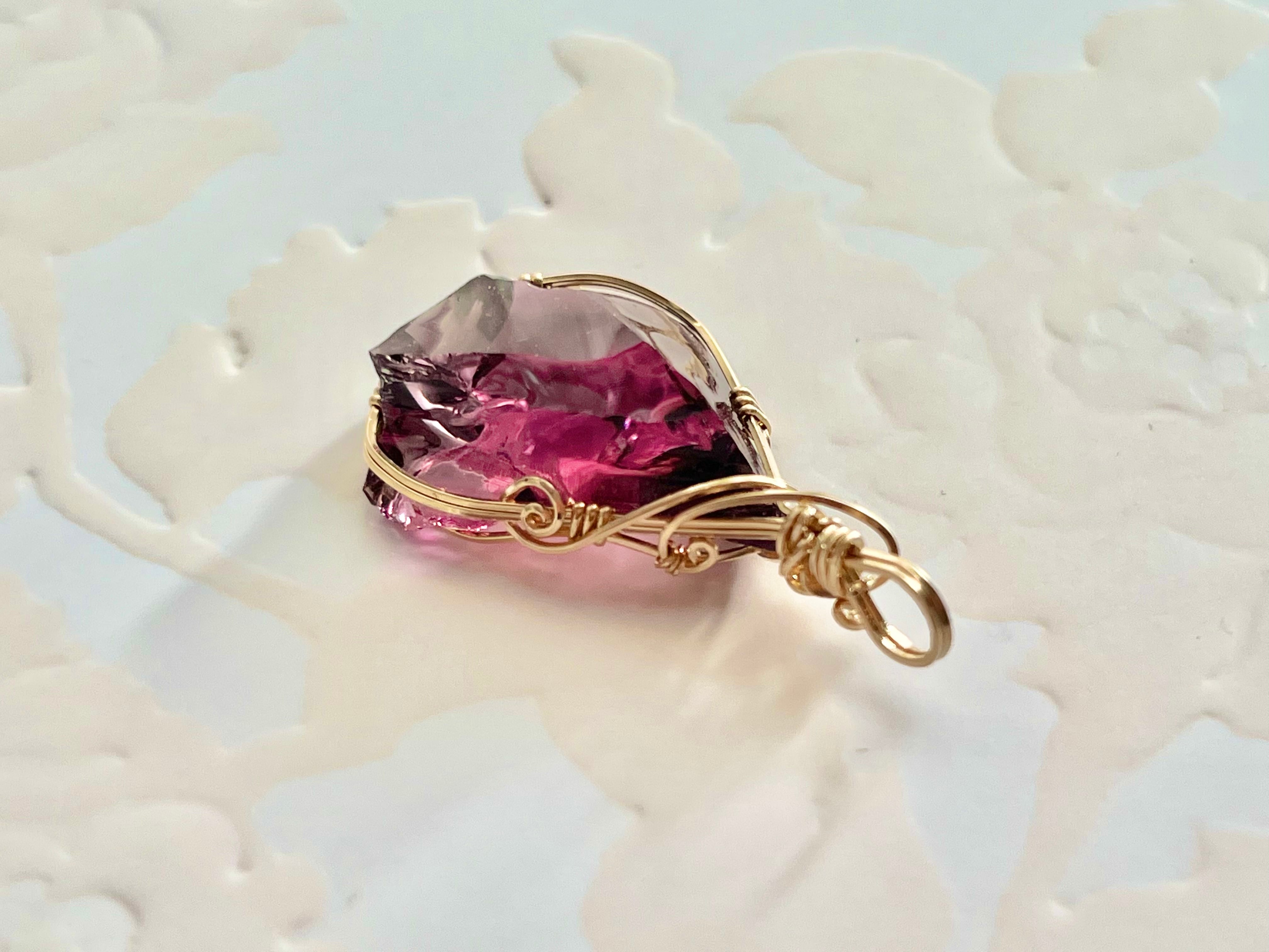 地球のカケラのこのクリスタルに、蔦が息吹を放つようなワイヤー装飾いたしました