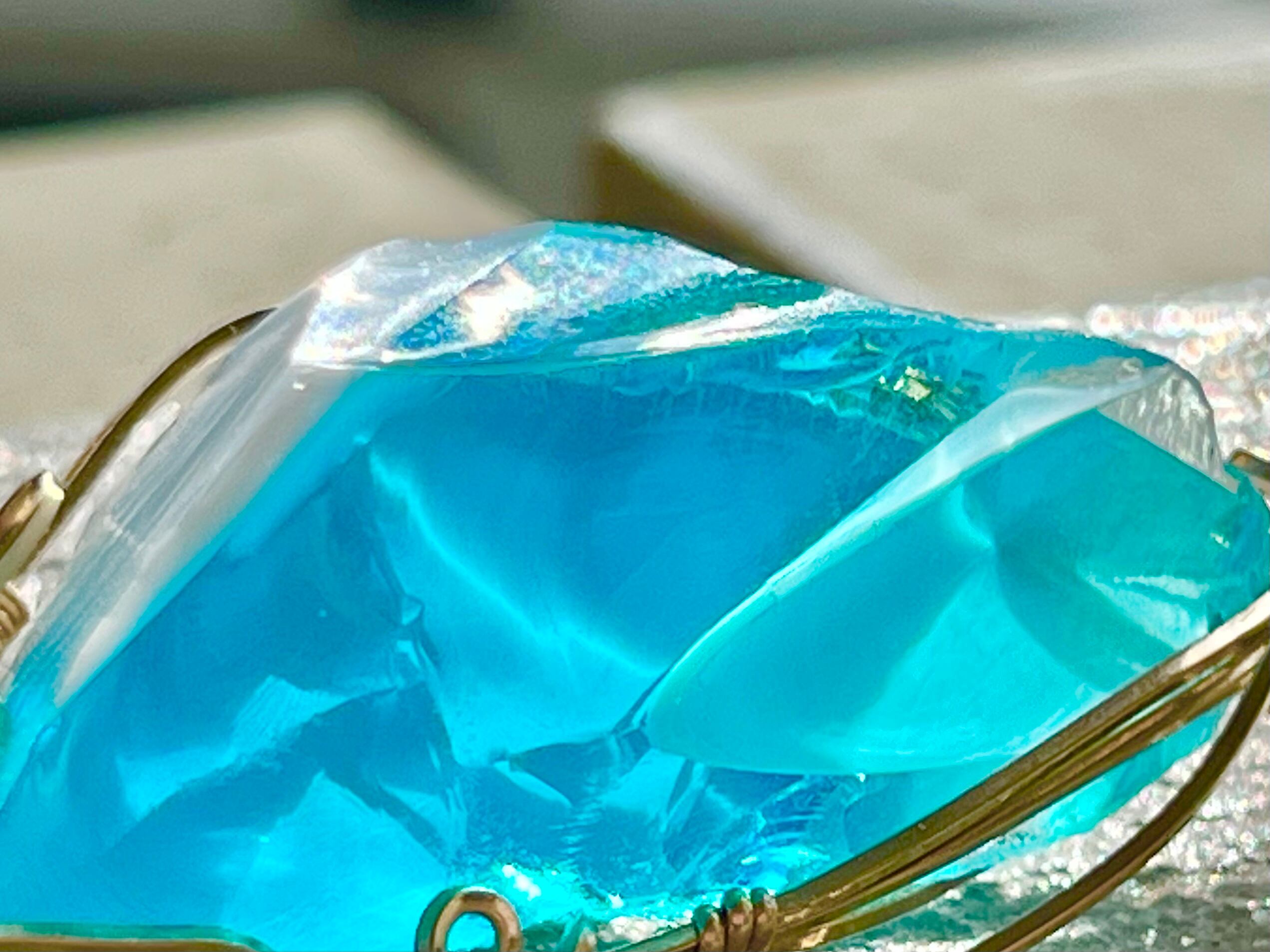 アンダラクリスタル:レア♡エンジェルオーラパステル&エレクトリックブルーペンダントトップ 14kgf