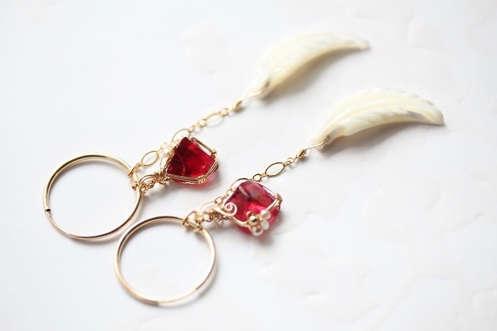 アンダラクリスタル:レアカラー♡エンジェルオーララズベリーピアス 14kgf