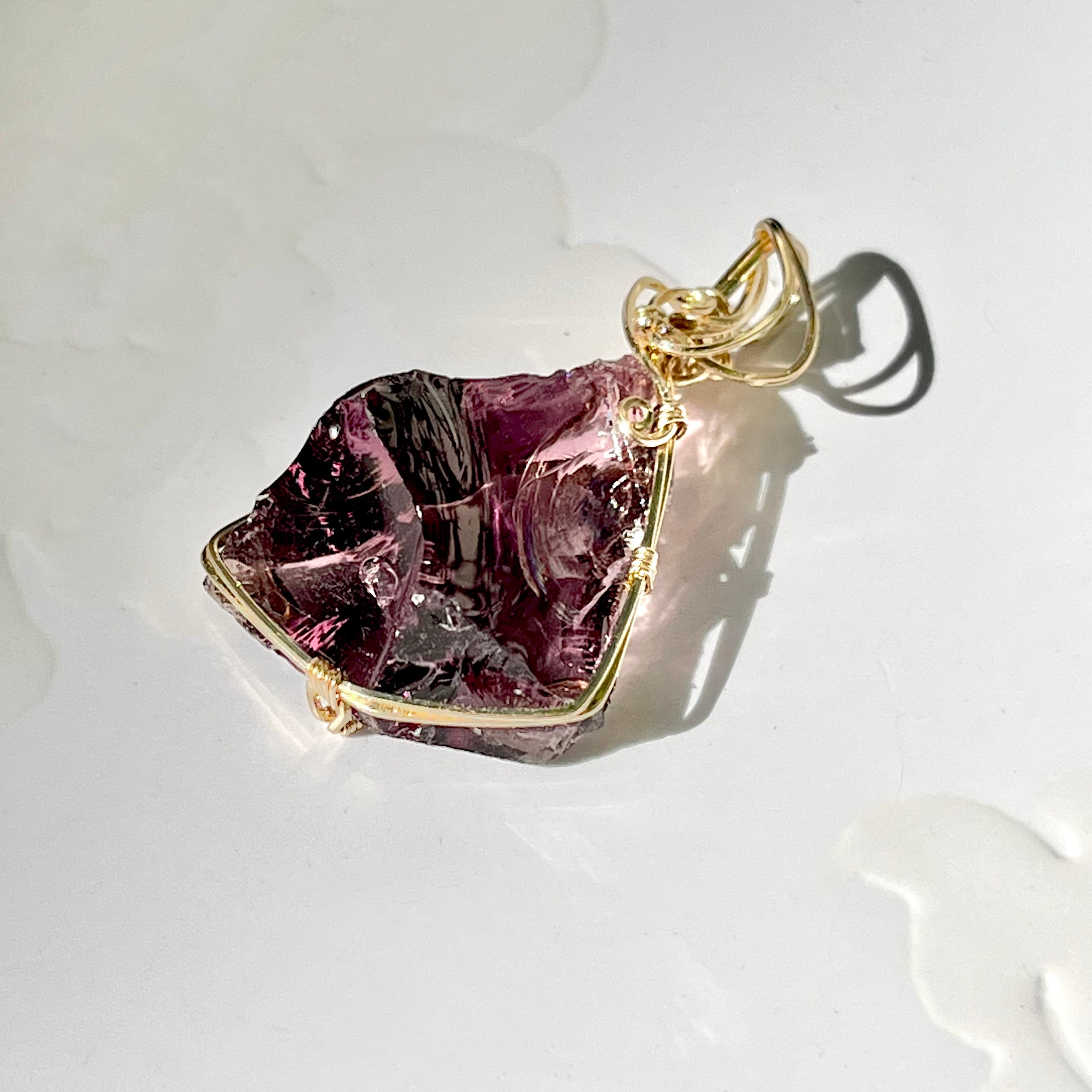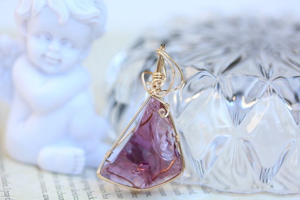 アンダラクリスタル:虹入バイオレットゾブリンアメジストペンダントトップ 14kgf