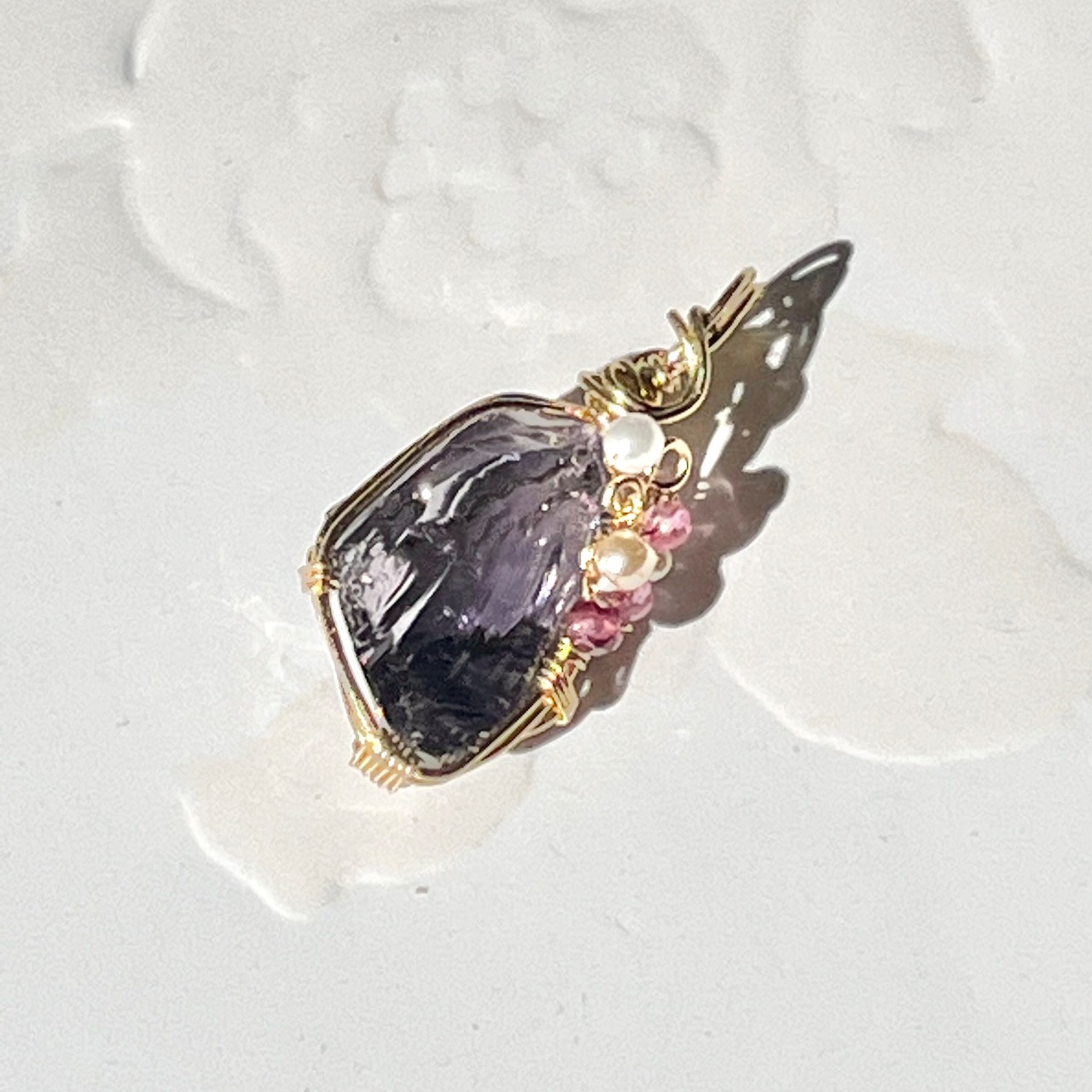 ビーズ装飾には、ピンクトルマリン、パール、ロードライトガーネットをあしらいました♡