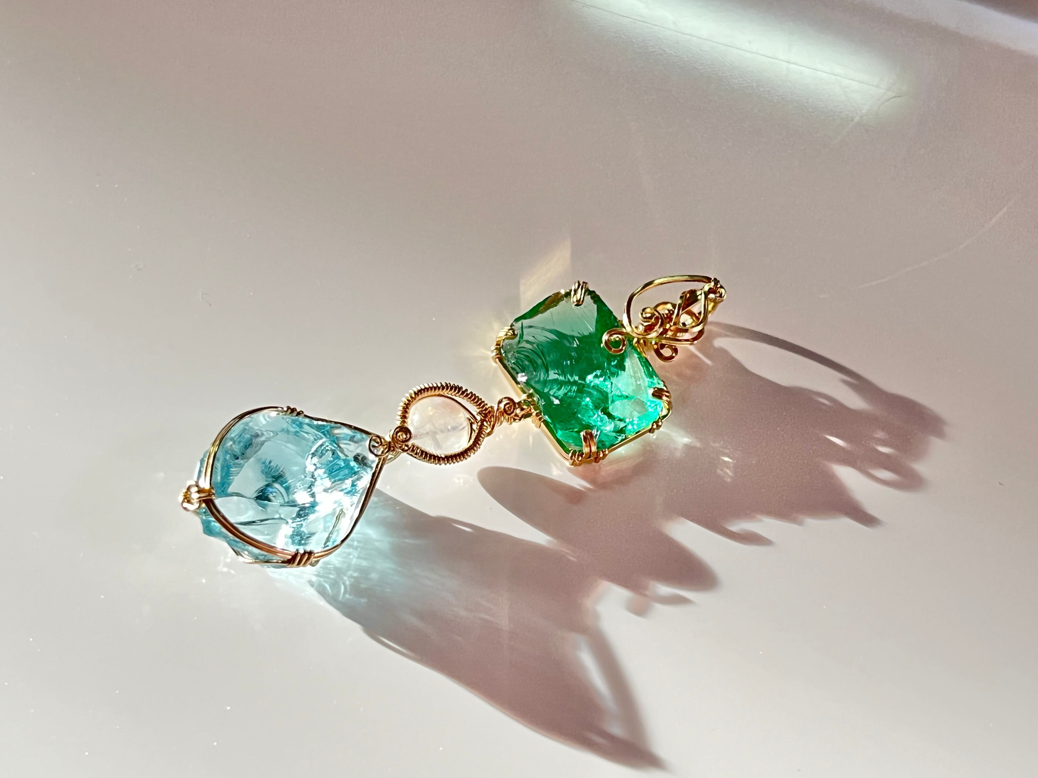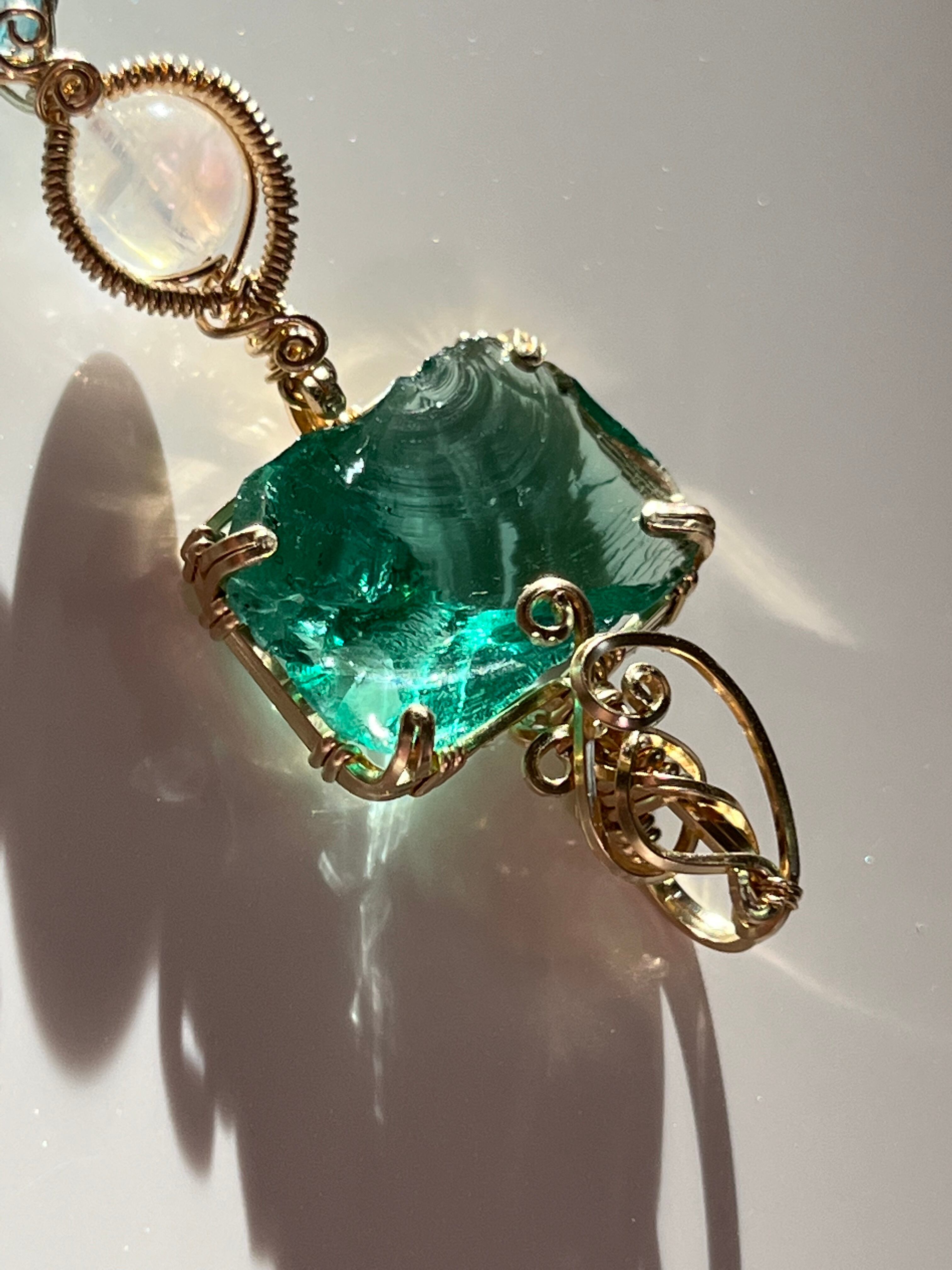アンダラクリスタル:エメラルドシフト.アズールエリュシォン.レインボームーンストーンペンダントトップ 14kgf