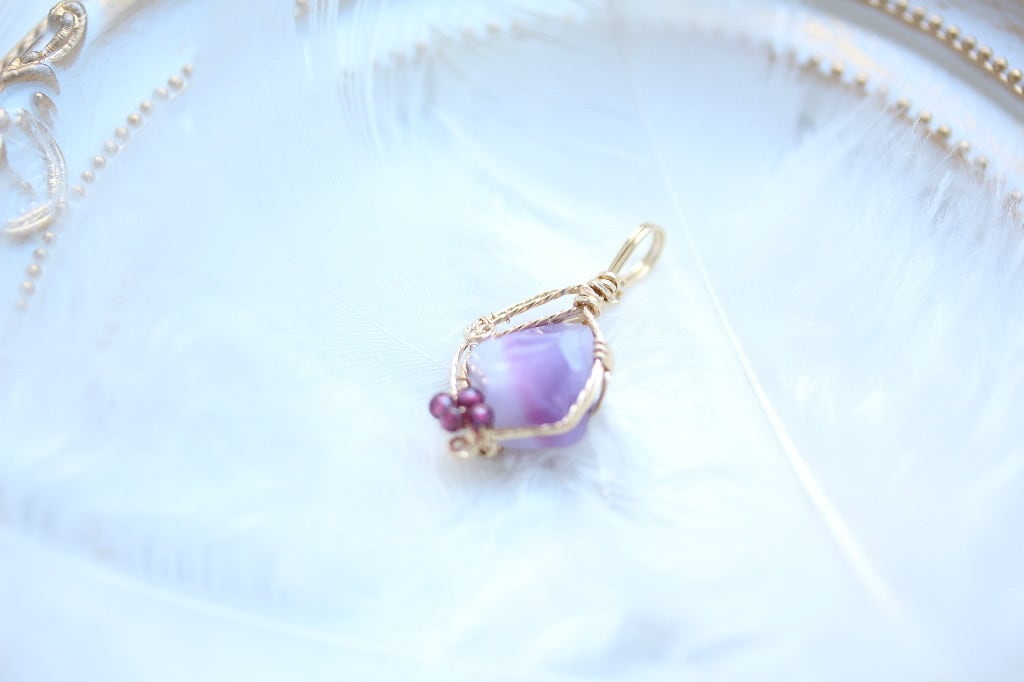ミニマムブーケのようで、ロードライトガーネットでリボンのようにちょこっと装飾♡