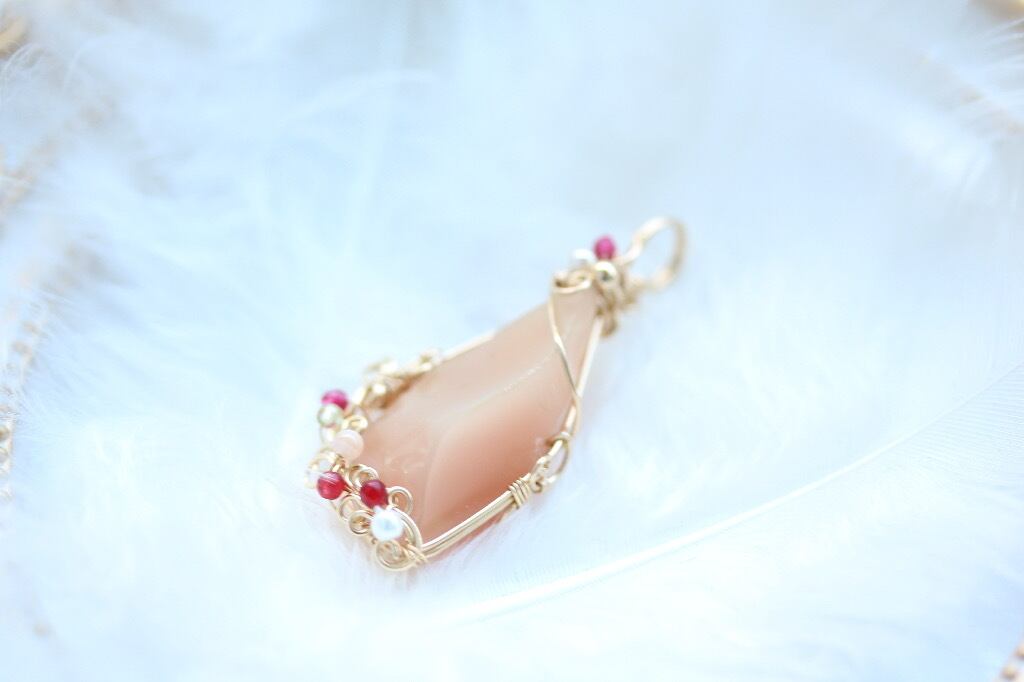 アンダラクリスタル:超レア♡パステルセレスチャルハートピンク ペンダントトップ 14kgf