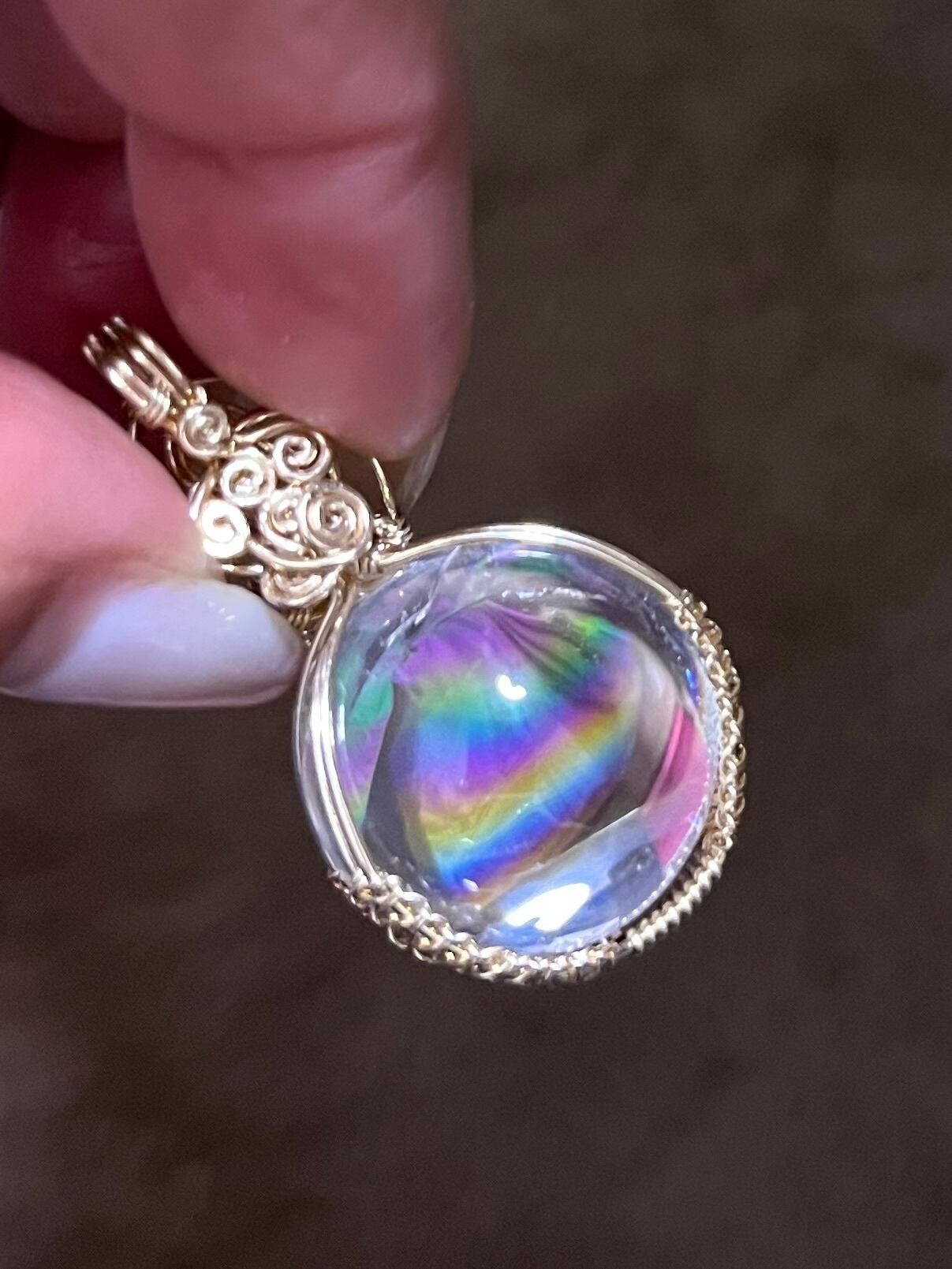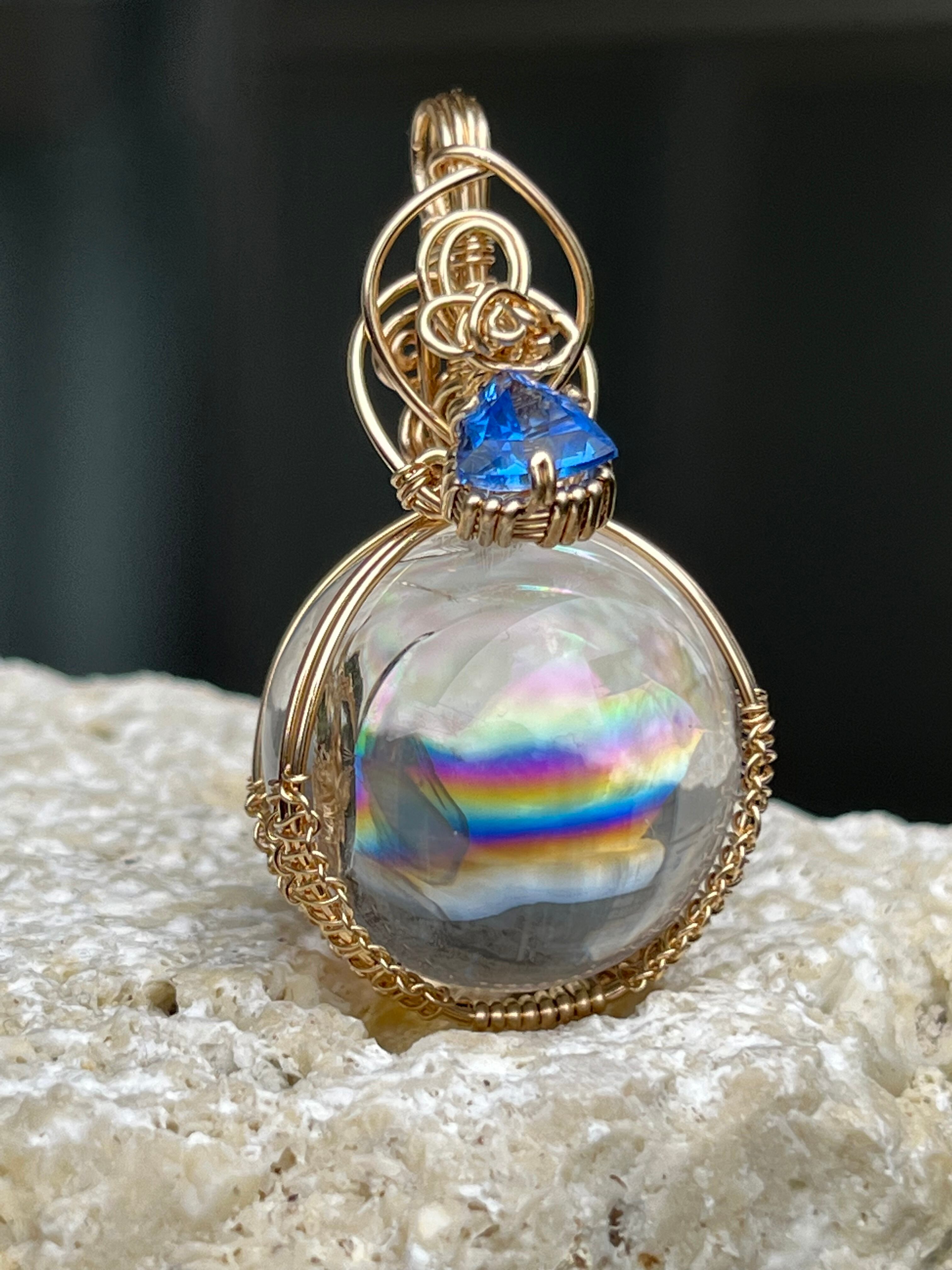 アイリススフィアとシベリアンブルークォーツの融合が生み出したこのペンダントトップは、まるで虹を眺めているかのような不思議な感覚を見ている方にもたらします。